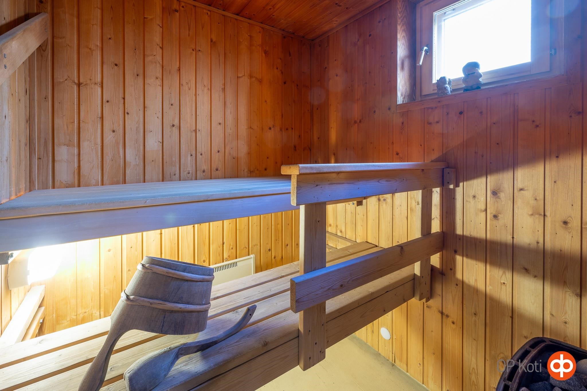 - Sauna, sähkökiuas, kylpyhuone, suihku, pesukoneliitäntä, kiinteät valaisimet.