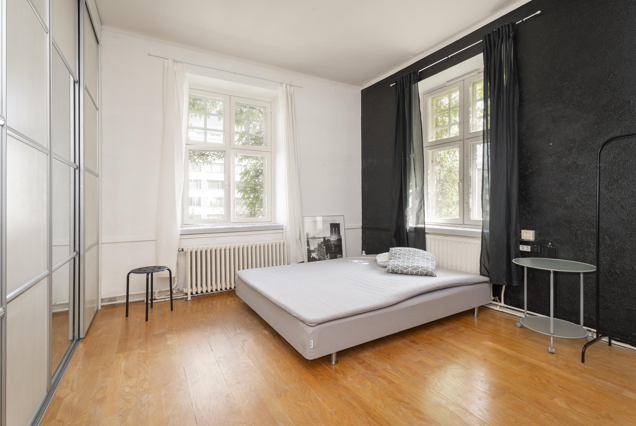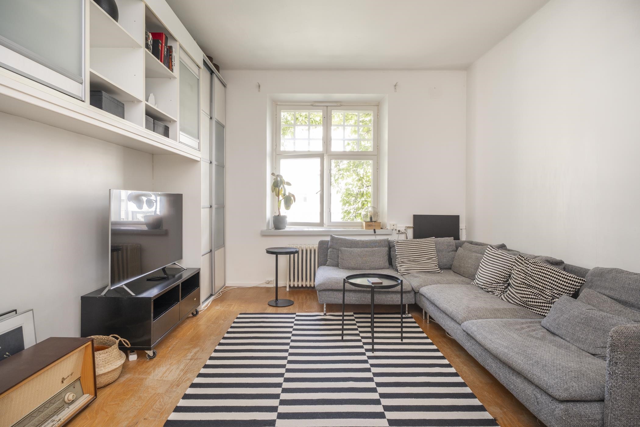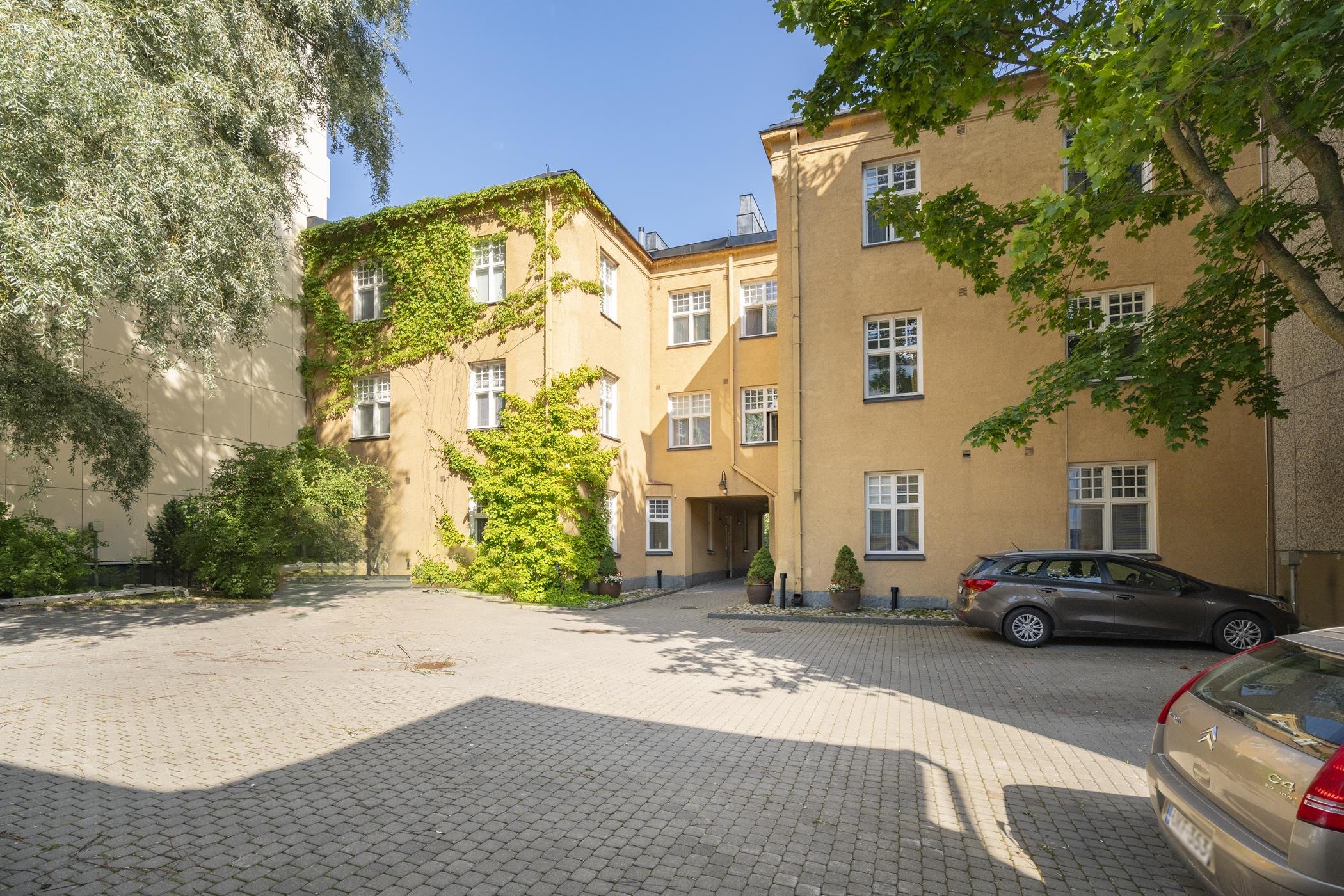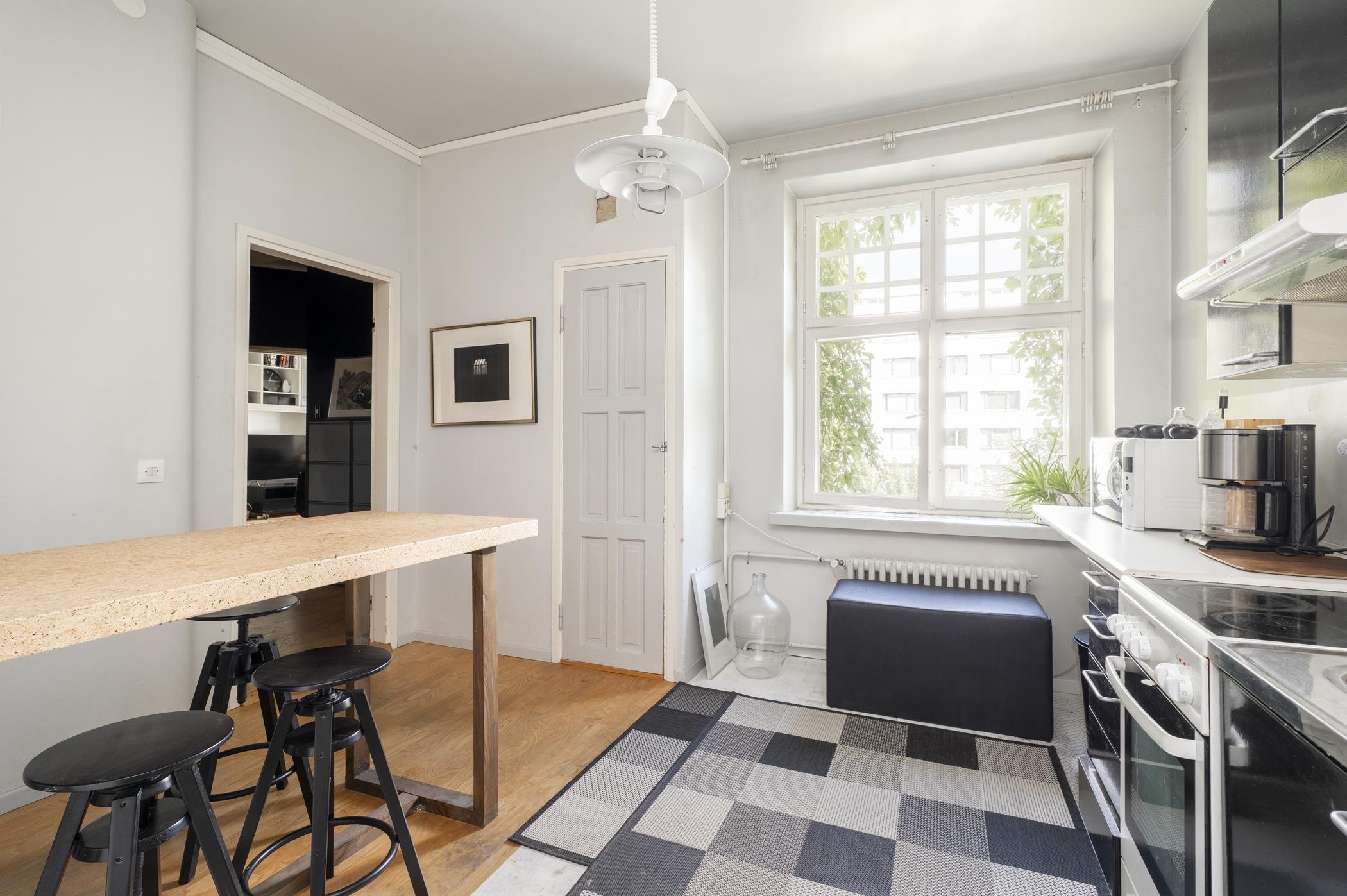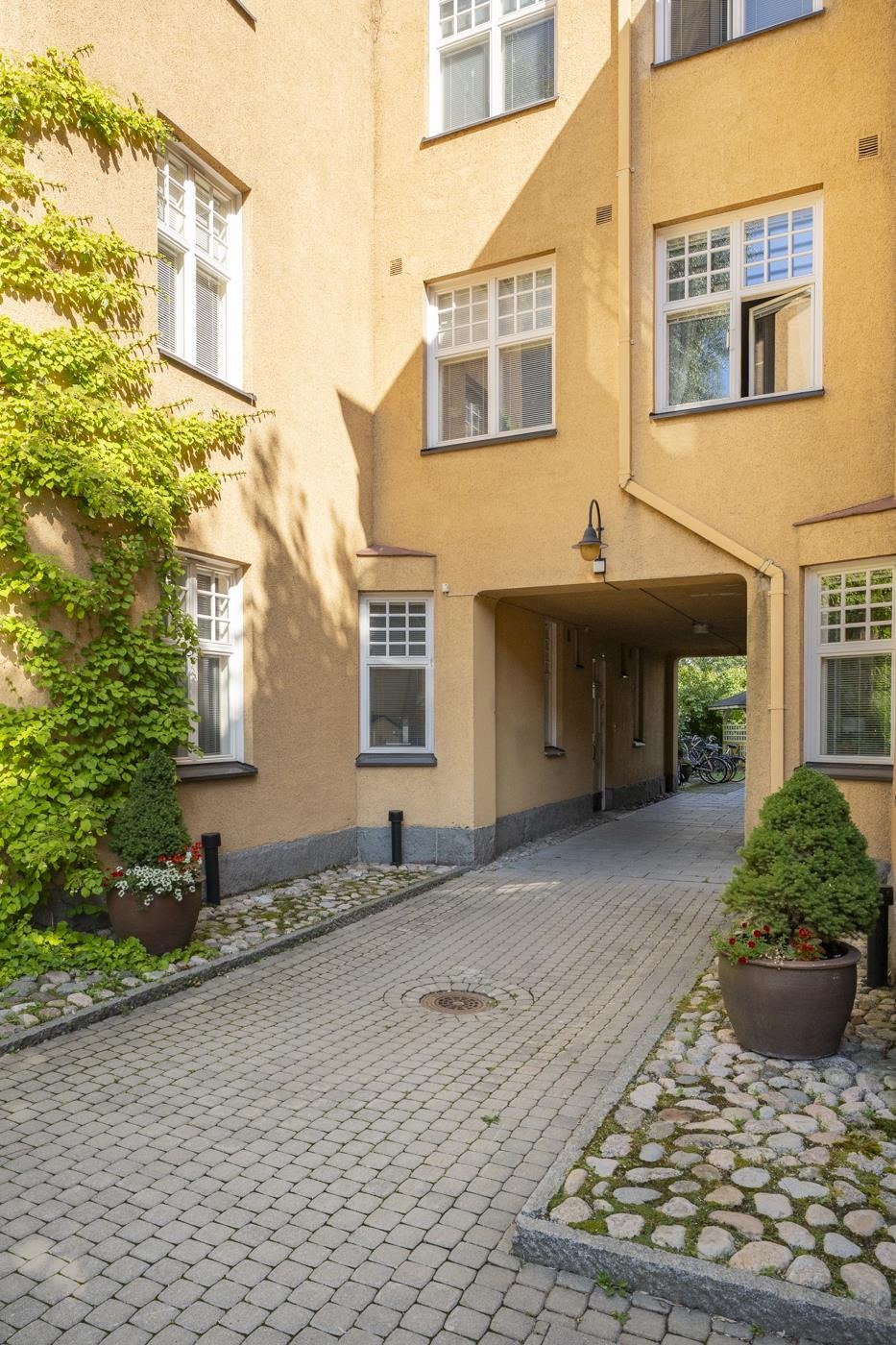 Asunnossa on tilavat huoneet, joissa on kauniit puulattiat ja korkeat huoneet, jotka luovat avaran ja valoisan tunnelman. Keittiössä on runsaasti kaappitilaa ja tilaa ruokapöydälle. Olohuoneessa on runsaasti tilaa oleskelulle, ja alkovi tuo lisätilaa esimerkiksi työhuoneelle tai vierashuoneelle. Kylpyhuone ja erillinen wc tuovat käytännöllisyyttä asumiseen. Asunnossa on myös kellari- ja vinttikomero, jotka tarjoavat runsaasti säilytystilaa.