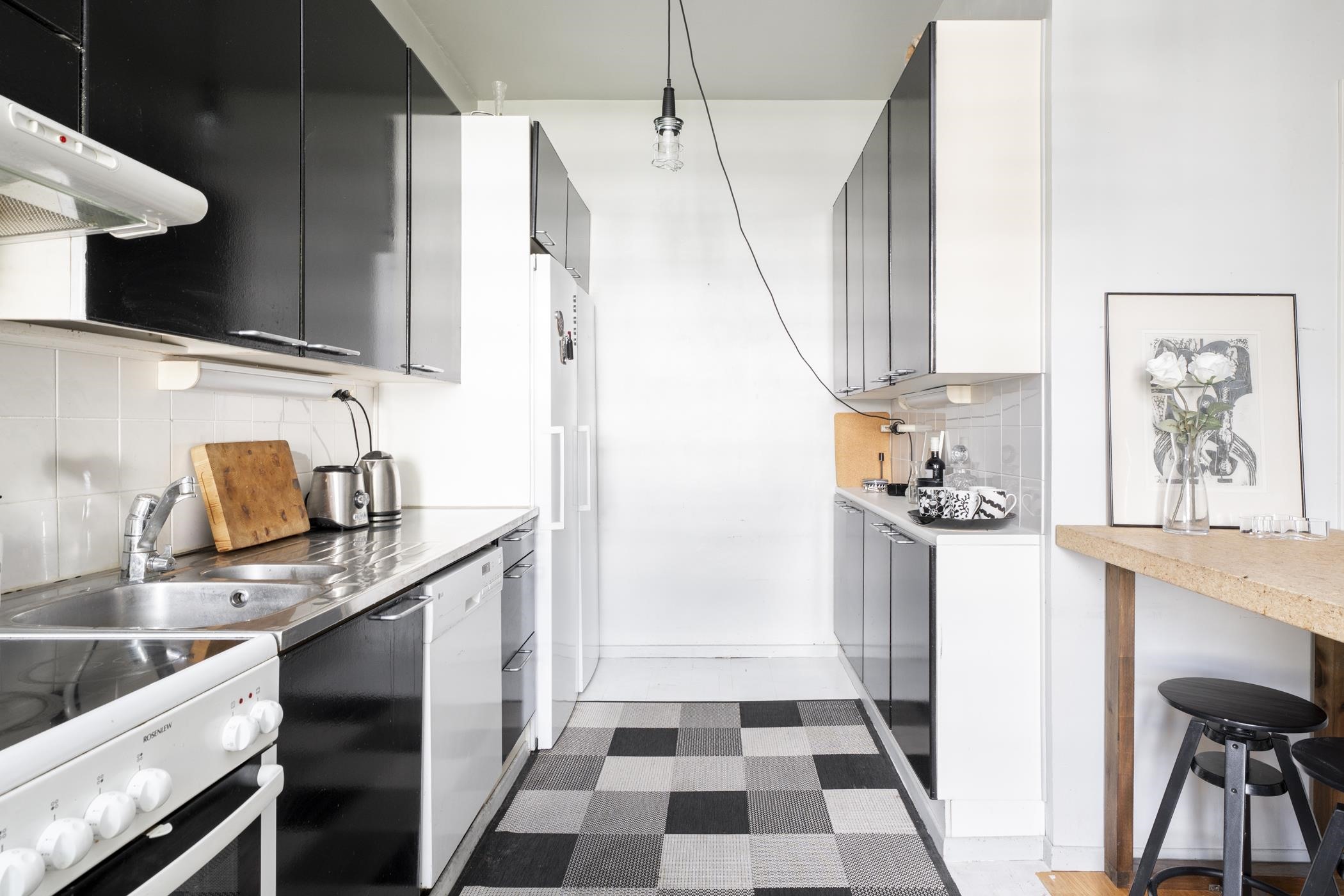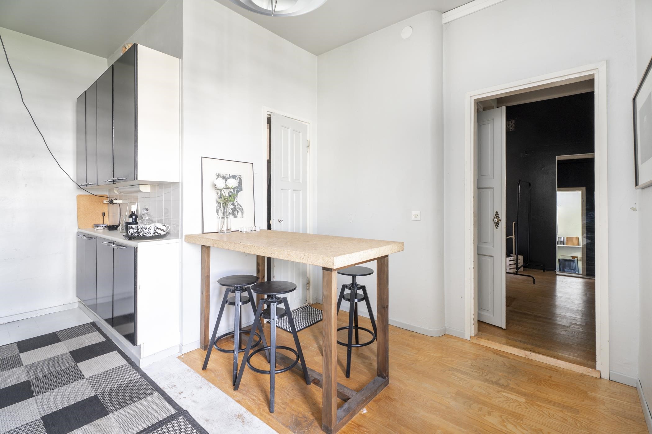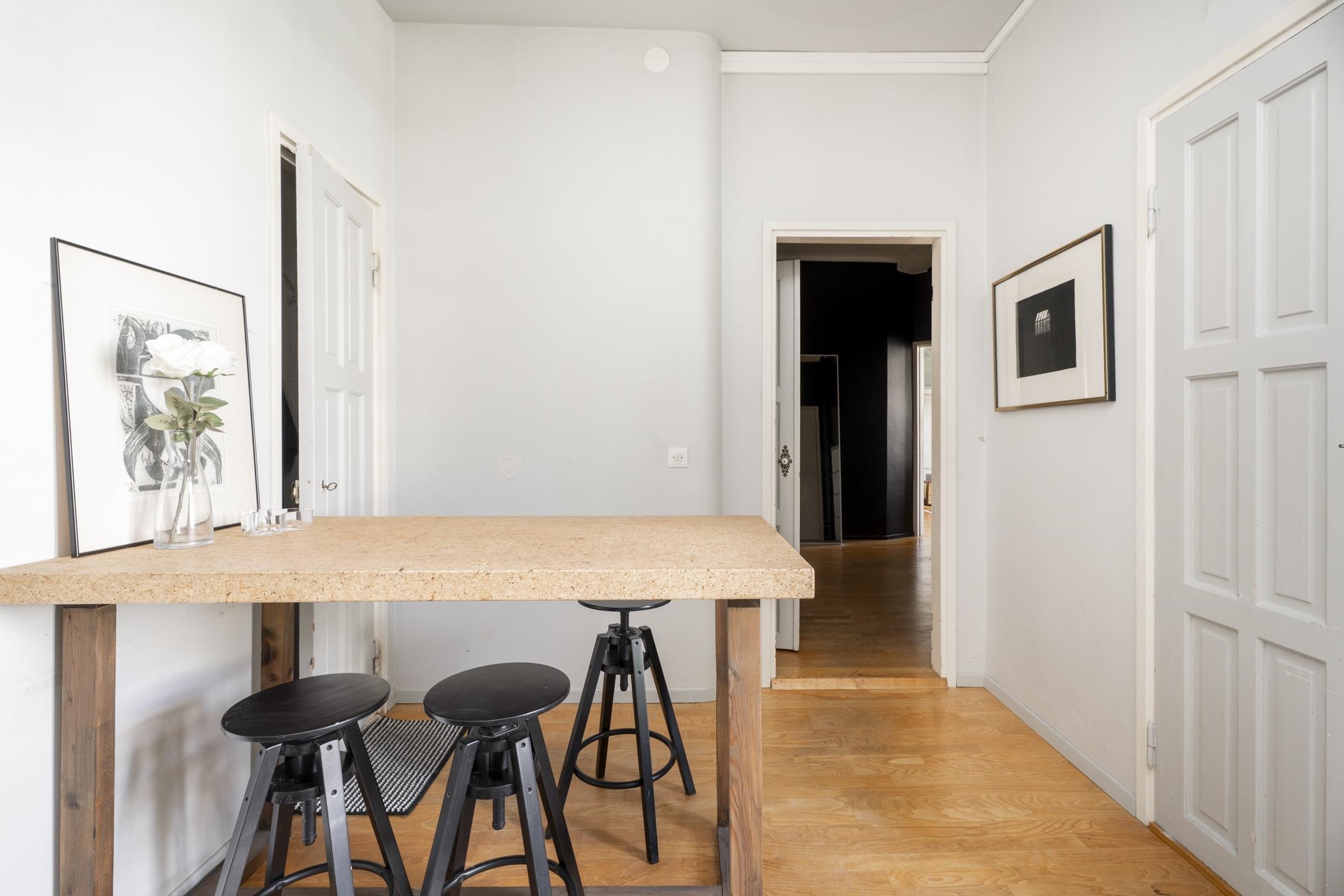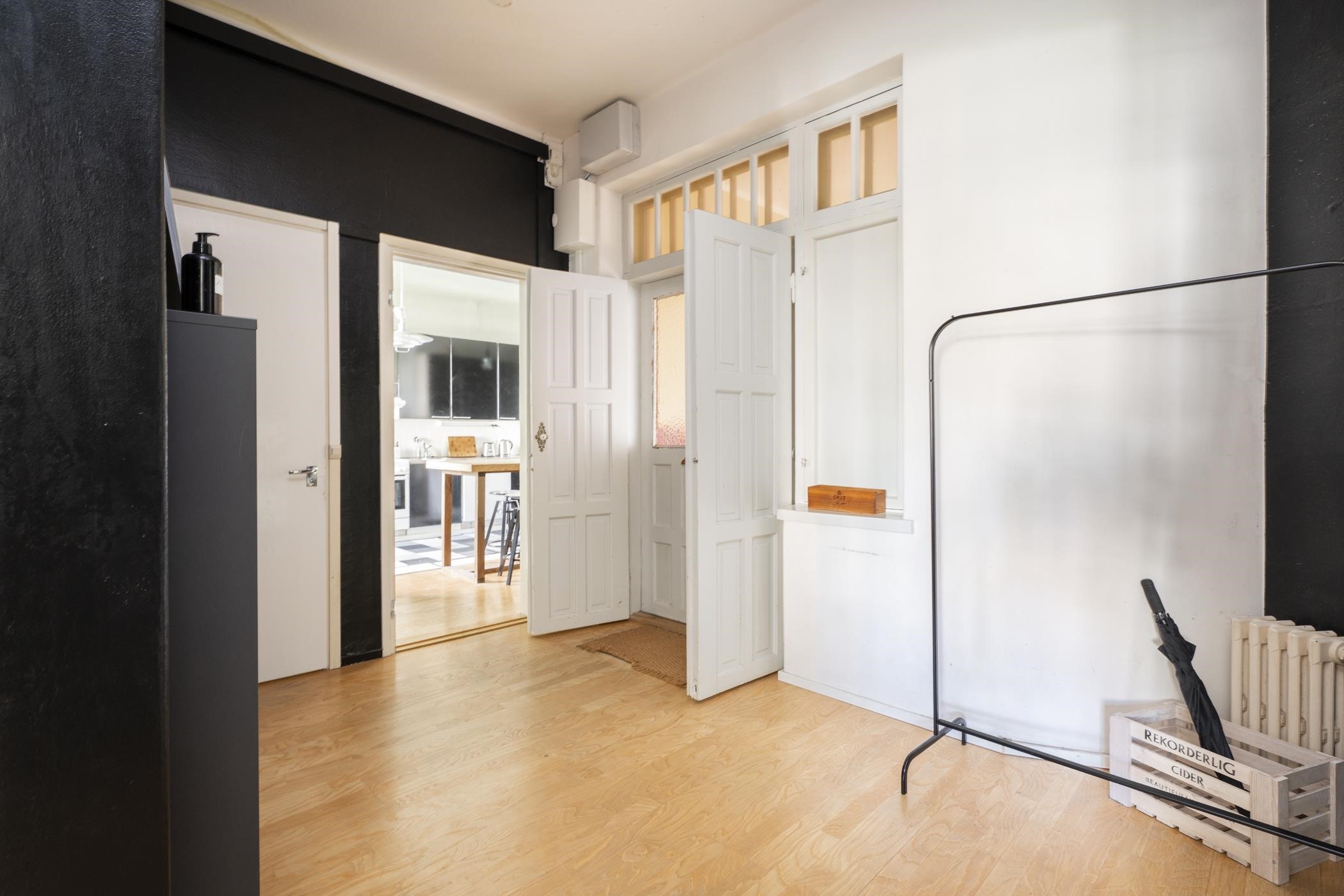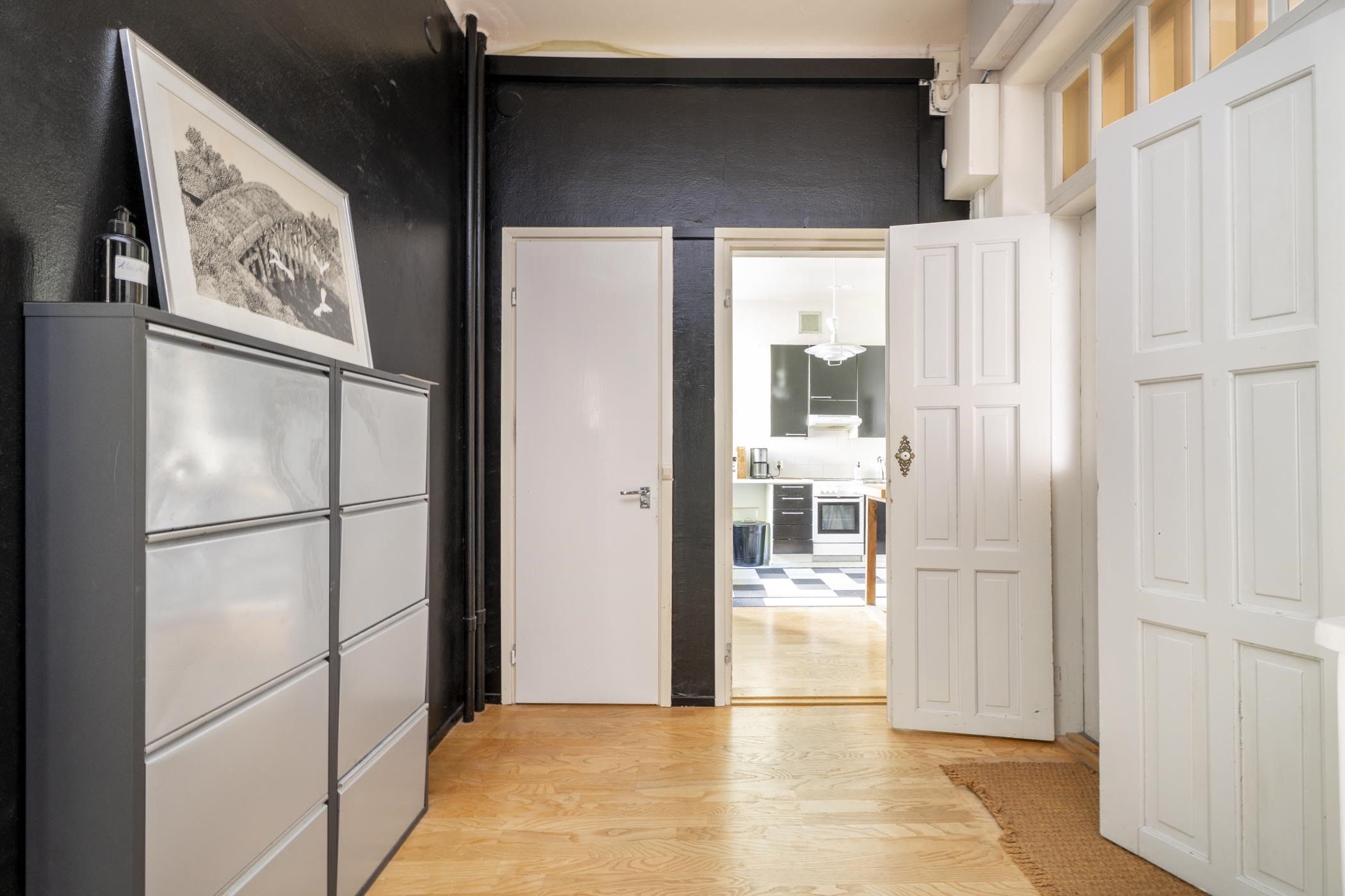Asunnossa on tilavat huoneet, joissa on kauniit puulattiat ja korkeat huoneet, jotka luovat avaran ja valoisan tunnelman. Keittiössä on runsaasti kaappitilaa ja tilaa ruokapöydälle. Olohuoneessa on runsaasti tilaa oleskelulle, ja alkovi tuo lisätilaa esimerkiksi työhuoneelle tai vierashuoneelle. Kylpyhuone ja erillinen wc tuovat käytännöllisyyttä asumiseen. Asunnossa on myös kellari- ja vinttikomero, jotka tarjoavat runsaasti säilytystilaa.