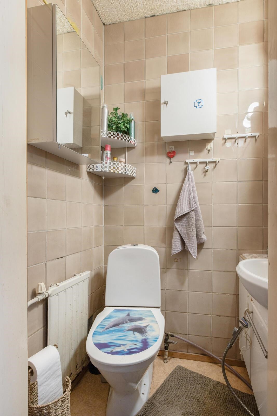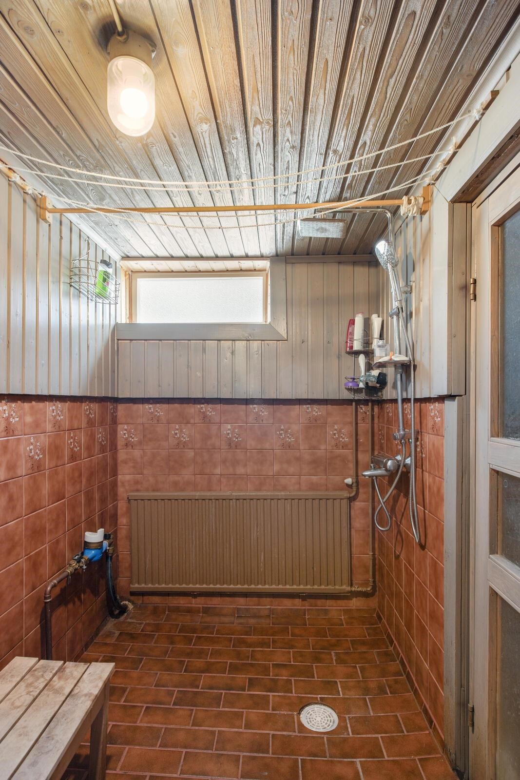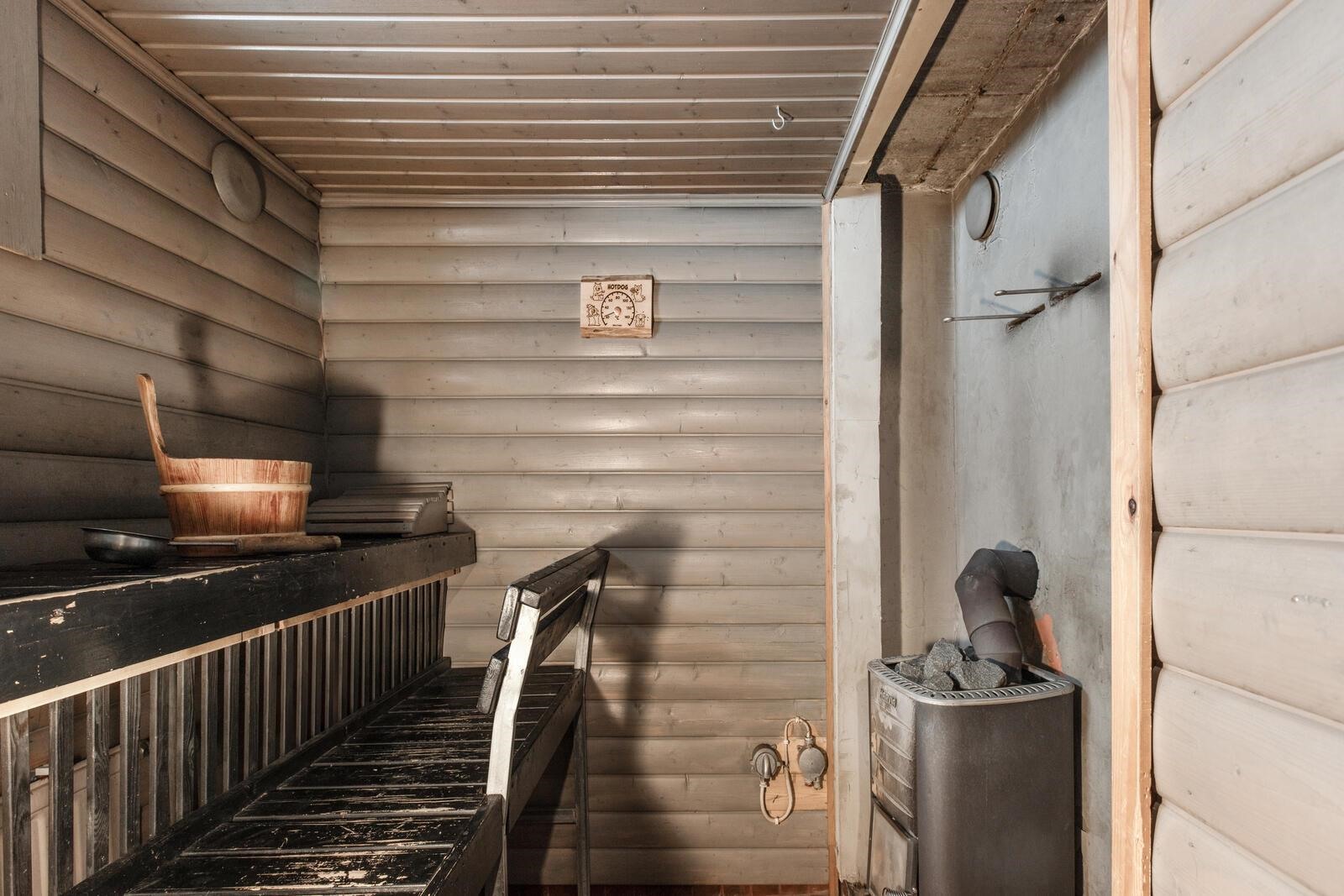 - Sauna, puukiuas varaus sähkökiukaalle, kylpyhuone, erillinen wc, suihku, peilikaappi, pesukoneliitäntä kylpyhuoneessa.
