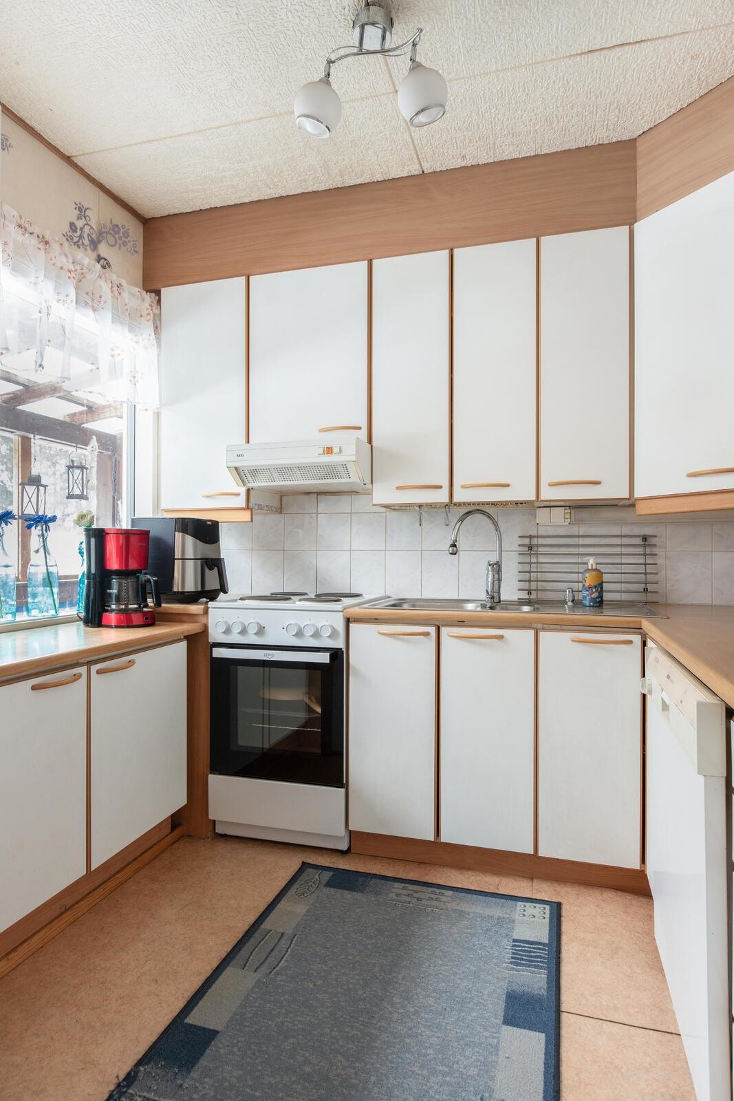 - Jääkaappi, sähköliesi v. 2024, liesituuletin, leivinuuni kellarikerroksessa, astianpesukone, kaapistot.