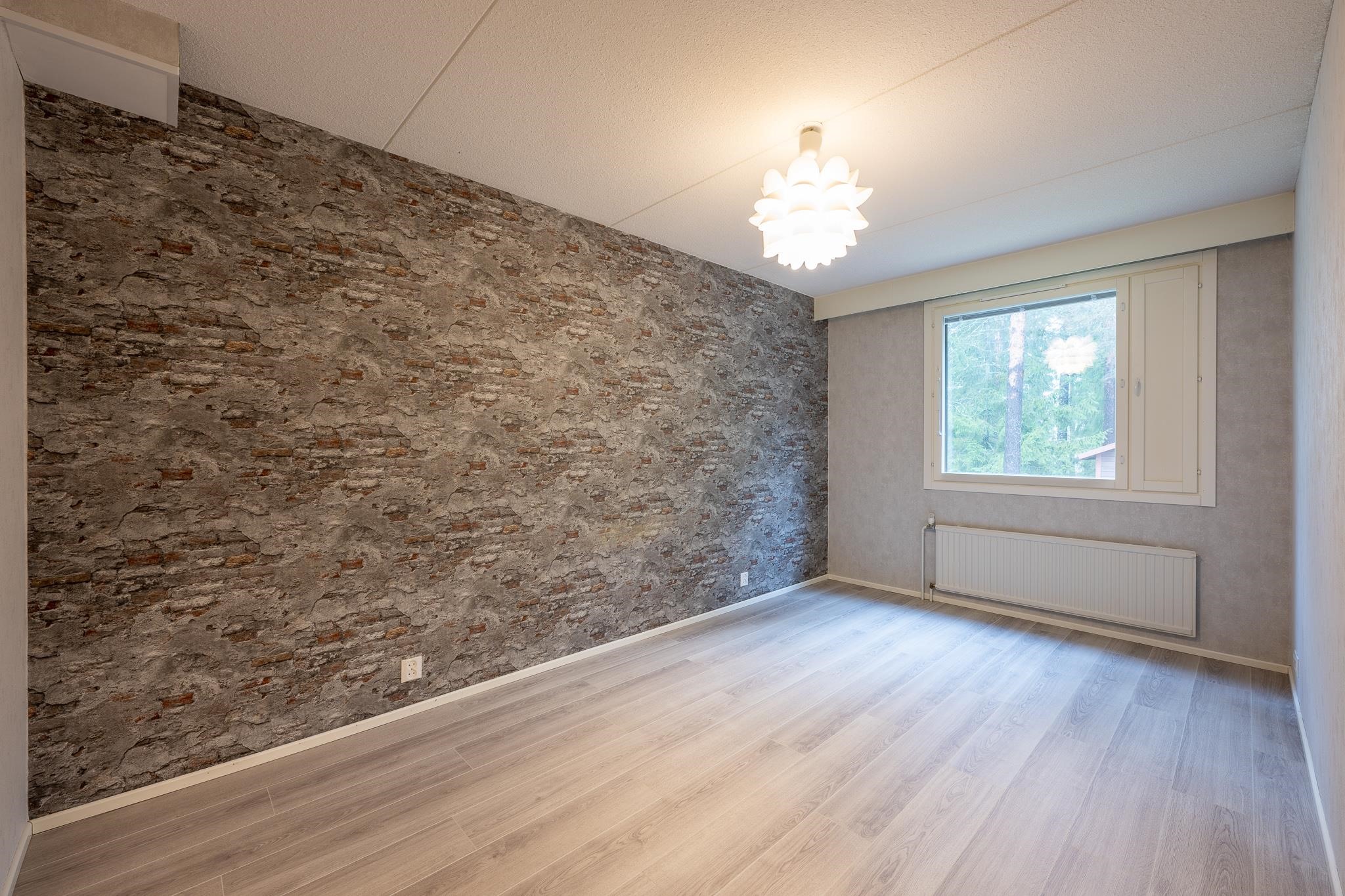 Keittiö: tapetti/välitilalevy, laminaatti. Olohuone: tapetti, parketti (hiottu 2019). Makuuhuone 1: tapetti, laminaatti. Sauna: paneeli, laatta. Kylpyhuone: laatta, laatta (maalatut). Wc: laatta, laatta (lattia maalattu).