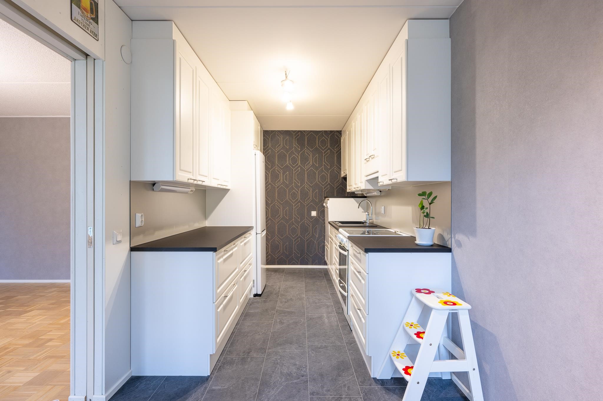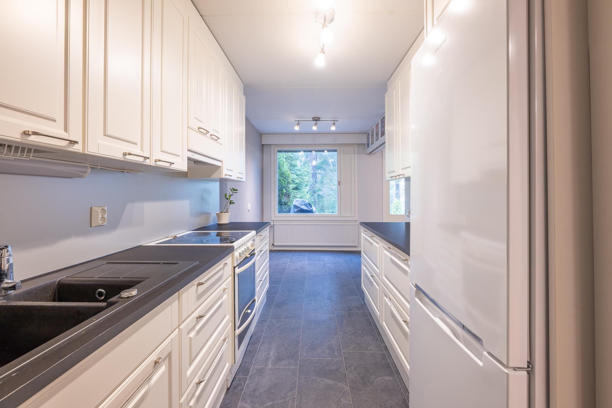 Huoneisto on siistissä kunnossa ja muuttovalmis. Kaksio sisältää käytännöllisen pohjaratkaisun: tilavan olohuoneen, remontoidun keittiön sekä oman saunan, joka tuo arkeen ripauksen luksusta. Keittiö on remontoitu ajattomaksi ja tyylikkääksi. Suojaisa takapiha ja iso terassi tarjoavat ihanteellisen paikan rentoutua ja viettää aikaa perheen ja ystävien kanssa.
