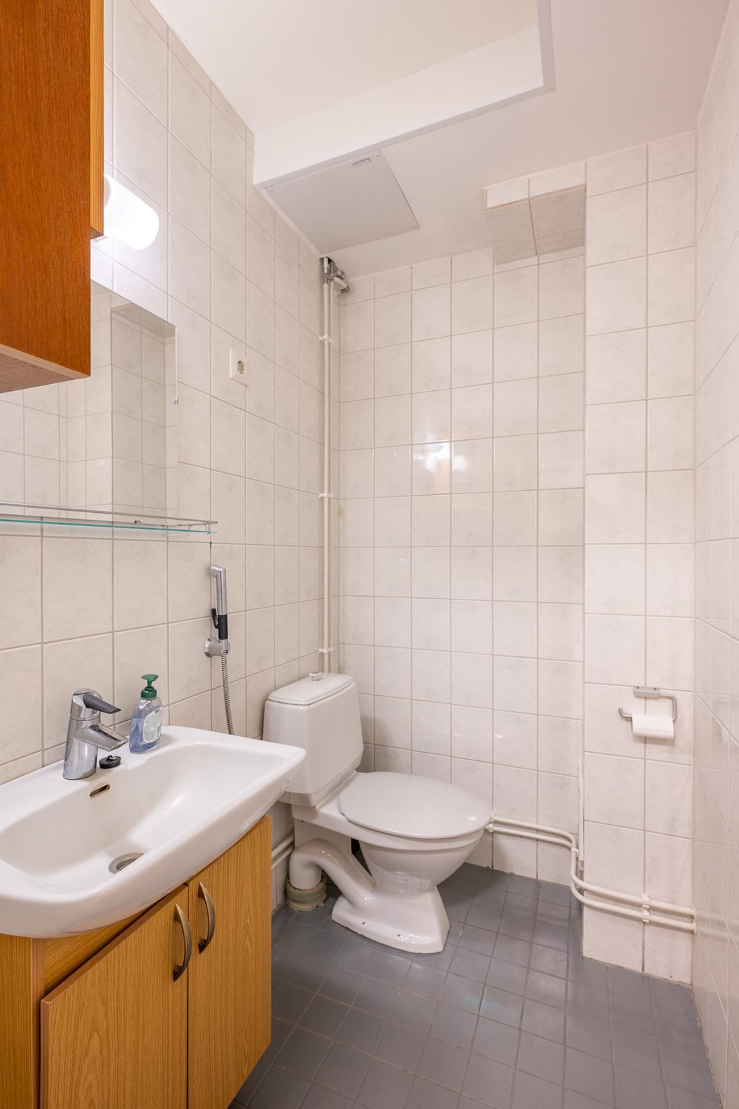 - Sauna, sähkökiuas, kylpyhuone, erillinen wc, suihku, suihkuseinä, peilit, allaskaappi, pesukoneliitäntä kph, lattialämmitys kph, kiinteät valaisimet.