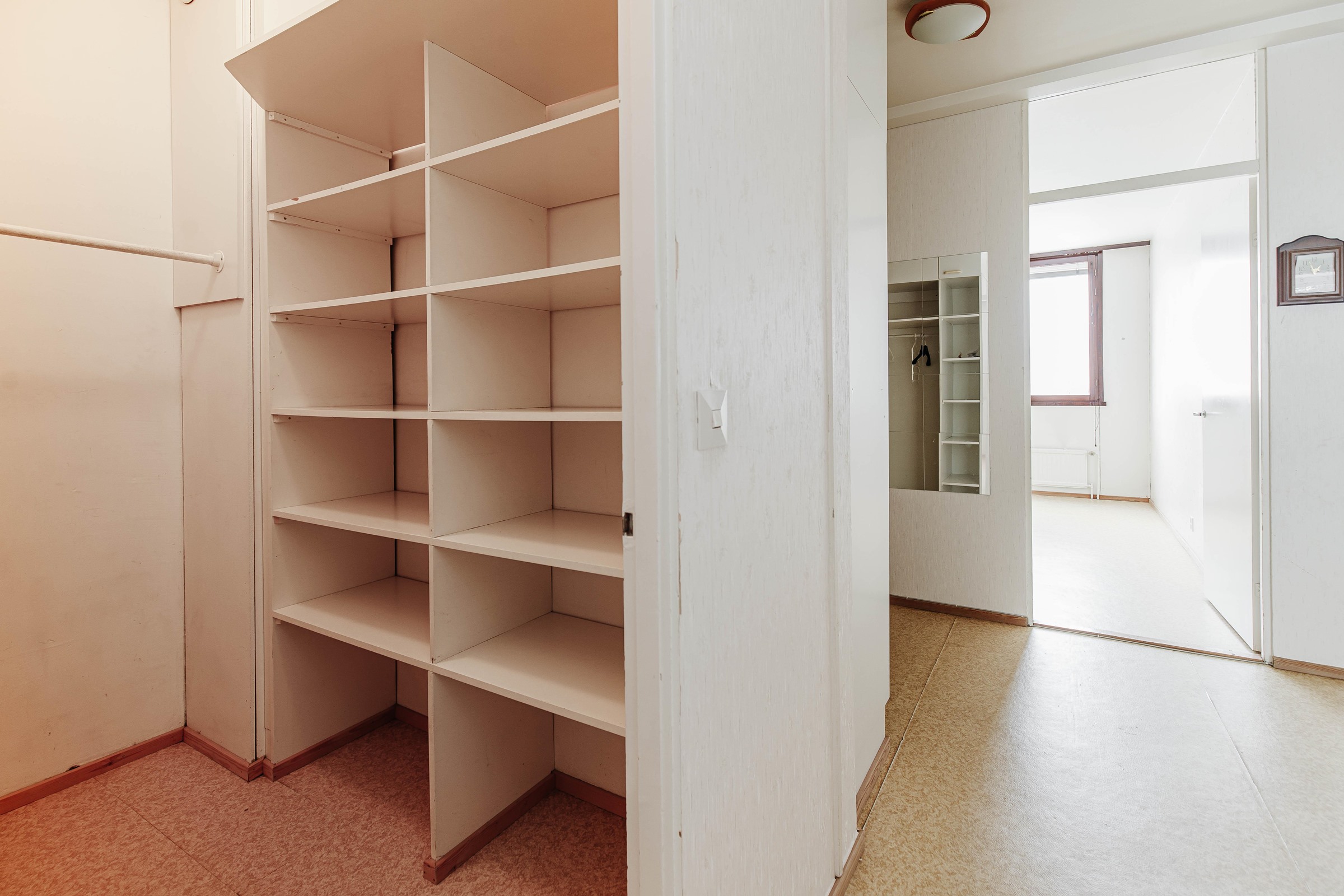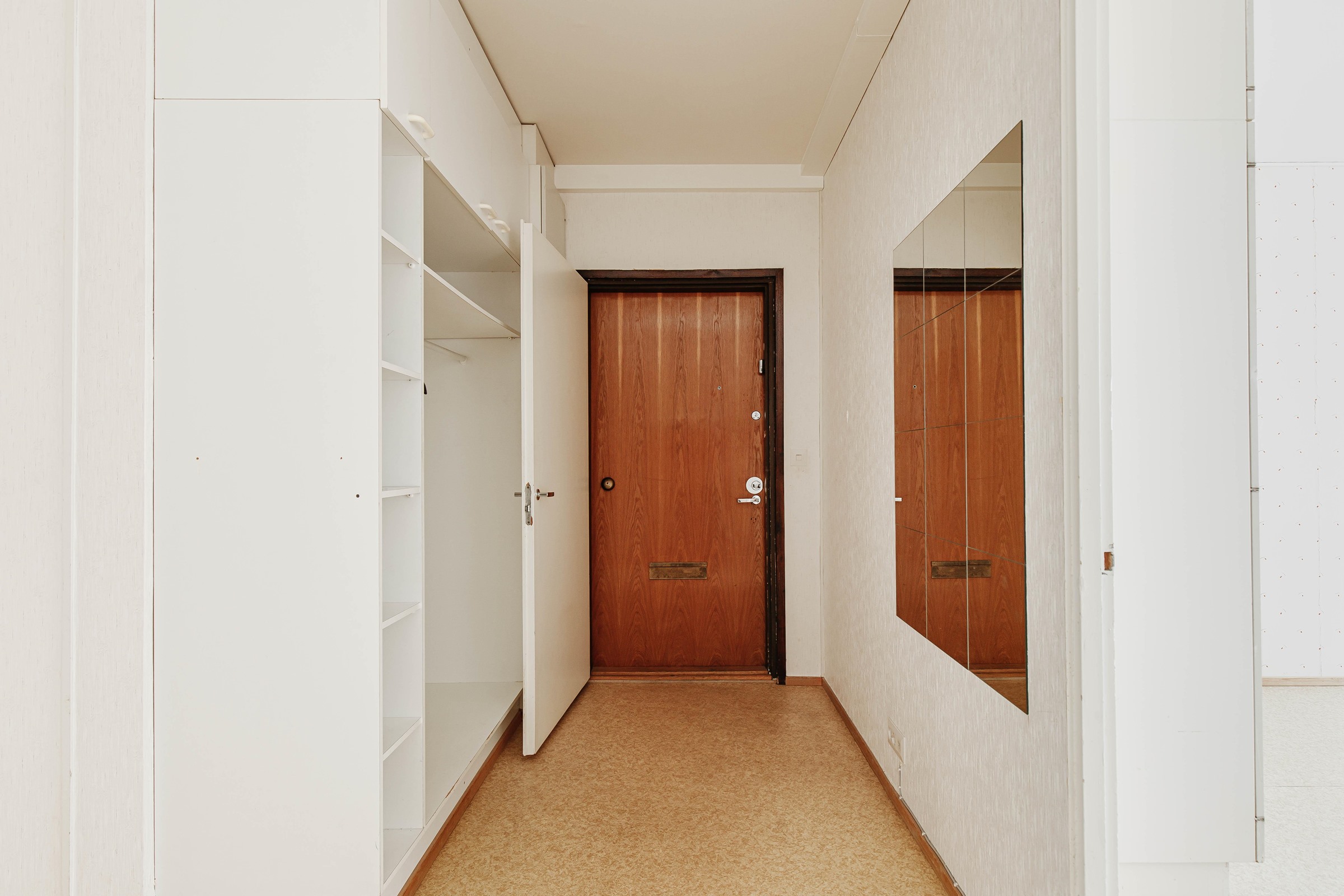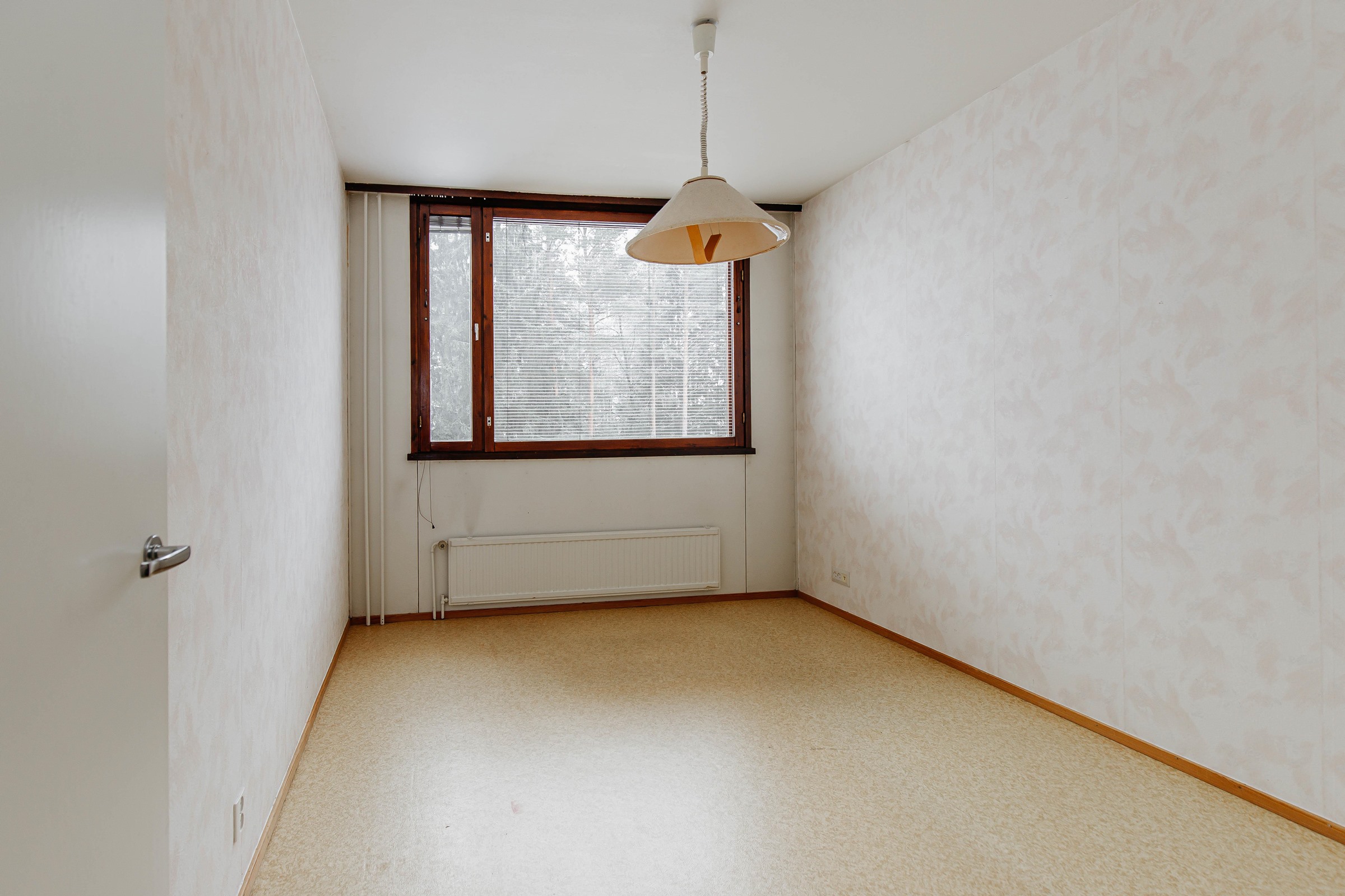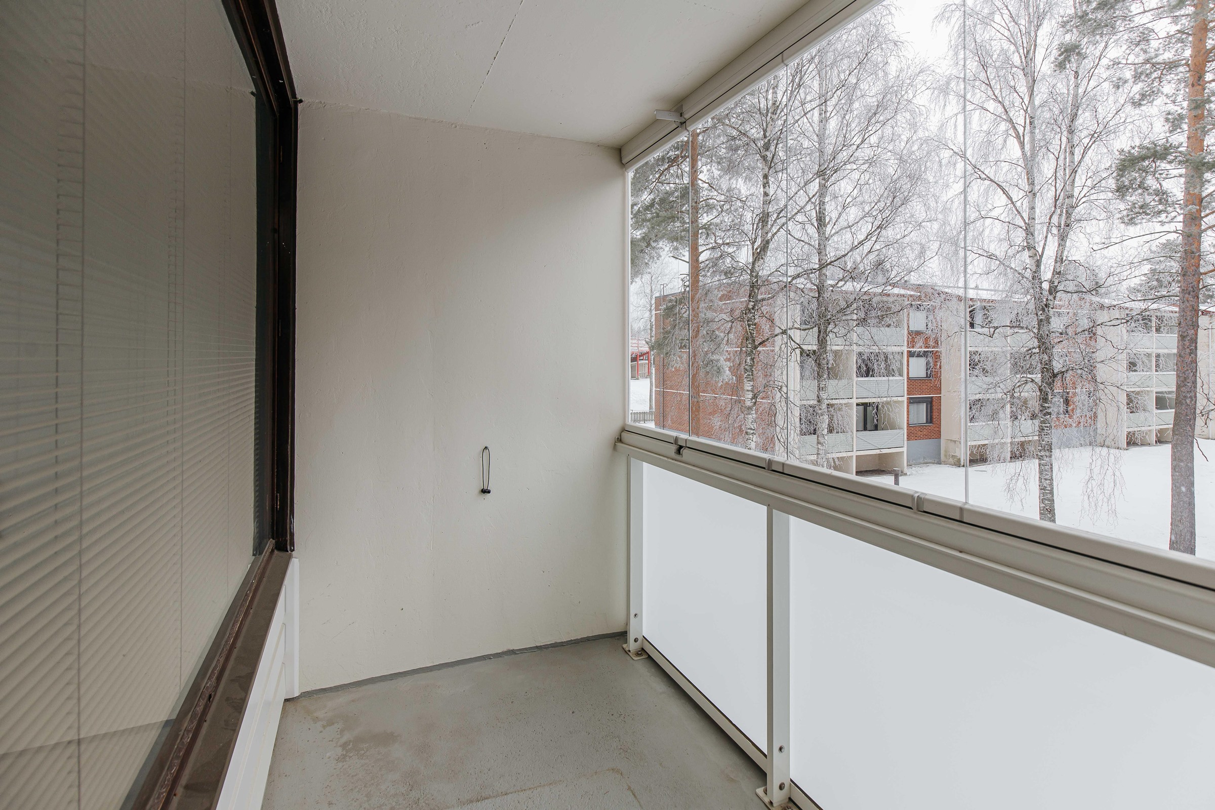 Tämä 76,5 m² kolmio on pinnoiltaan suurilta osin alkuperäinen, mutta kylpyhuone on uusittu vesieristeineen arviolta 2010-luvun alussa. Asunto koostuu tilavasta keittiöstä, kahdesta makuuhuoneesta, kylpyhuoneesta sekä avarasta olohuoneesta, josta käynti lasitetulle parvekkeelle, joka toimii lisähuoneena aikaisesta keväästä pitkälle syksyyn.