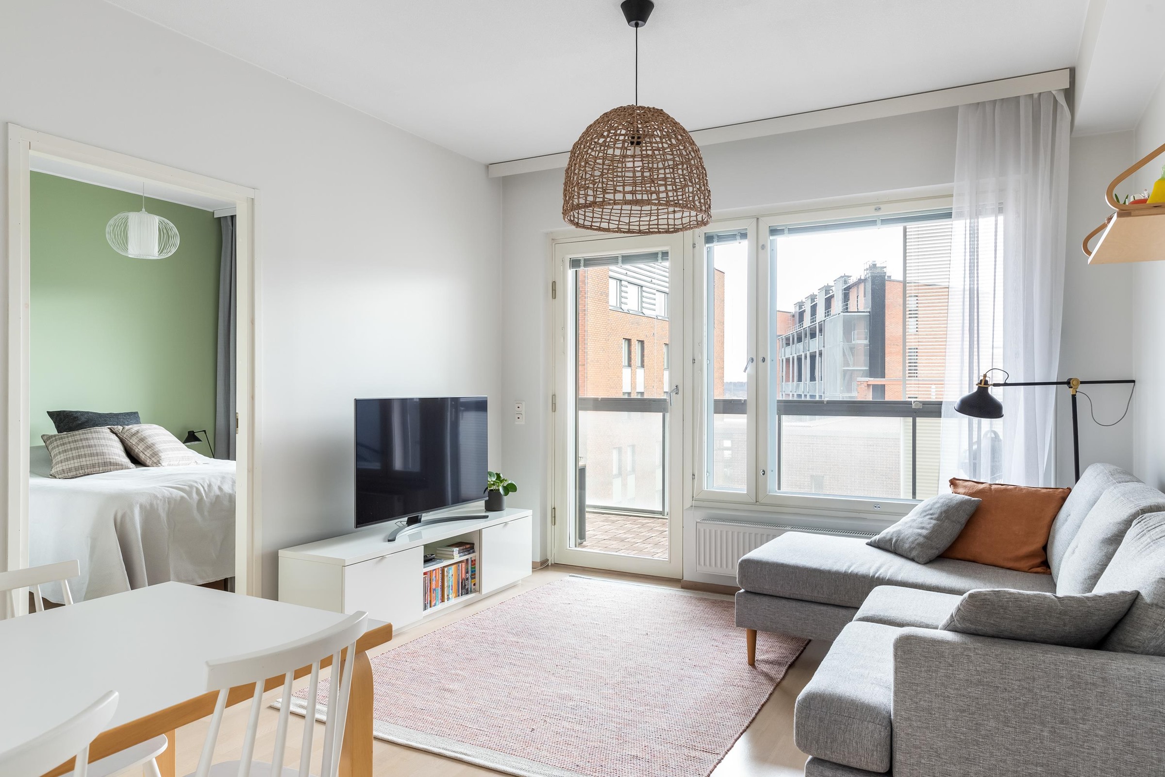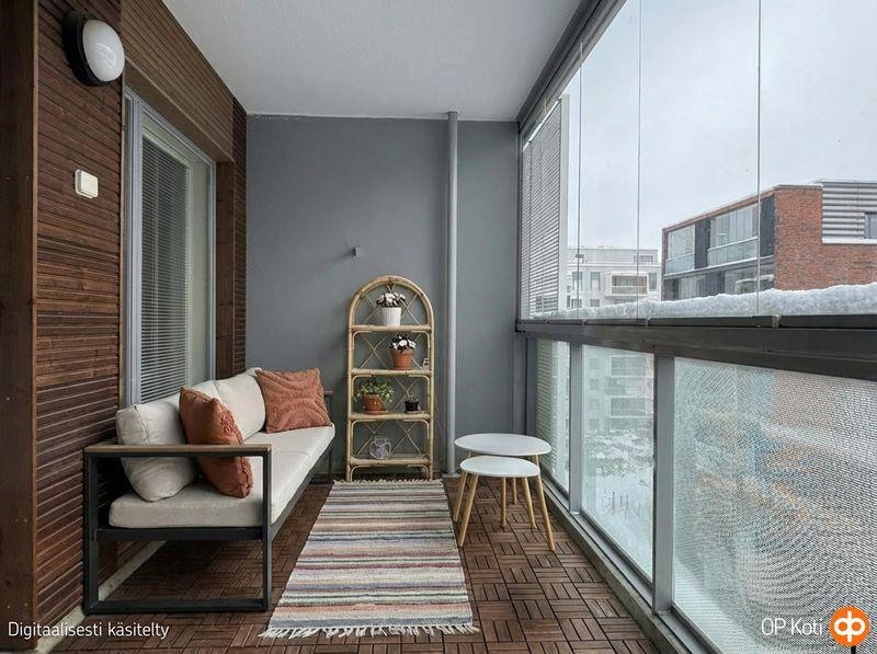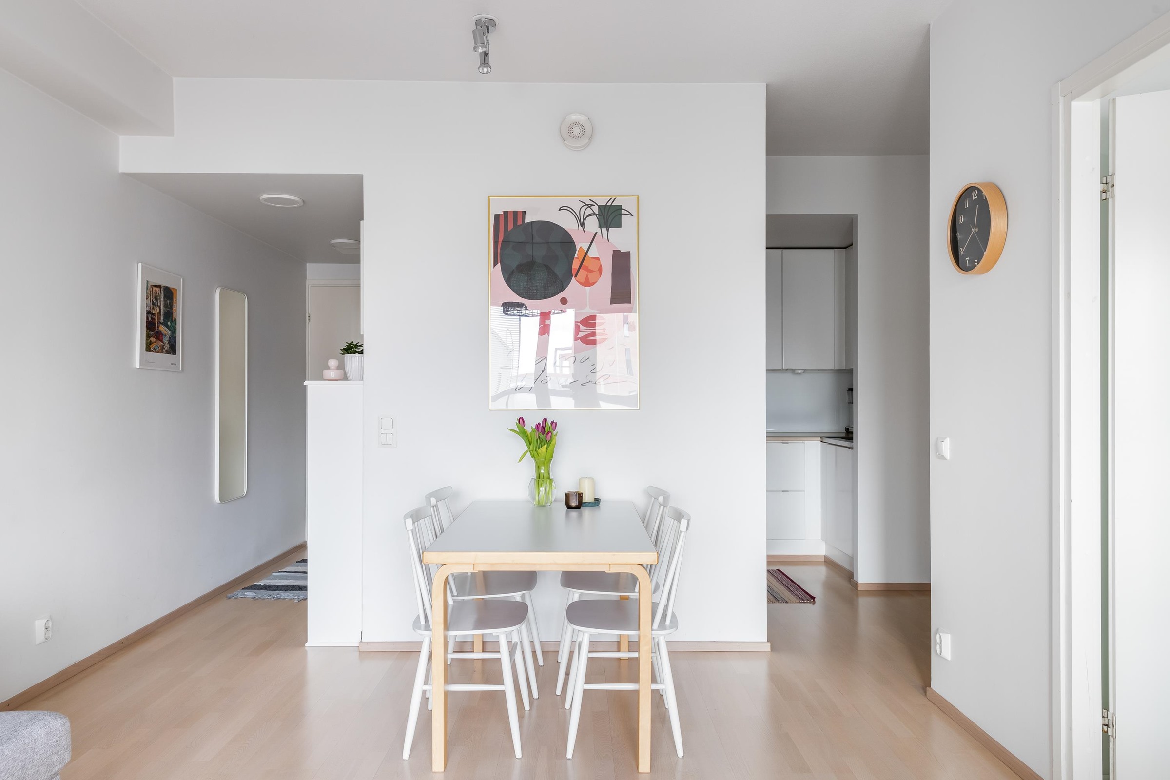 Tämä Arabianrannan kuudennen kerroksen harmoninen kaksio tarjoaa arjen keskelle rauhaa ja kauneutta. Iso lasitettu parveke kutsuu nauttimaan hiljaisista hetkistä, ja Vanhankaupunginlahden rantaraitit ovat kotikulmilla.