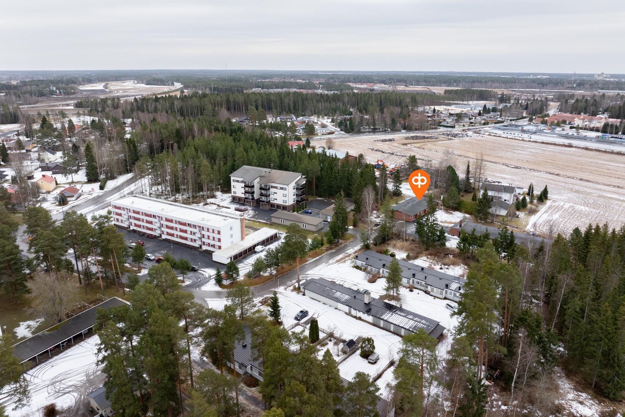 Asunnolta on matkaa Prismalle noin viisi minuuttia ja Seinäjoen keskustan palveluihin ajelee kymmenessä minuutissa. Omatonttinen taloyhtiö on rauhallisella sijainnilla, päättyvän tien päässä. Lämmitysmuotona kaukolämpö vesikiertoisin patterein.