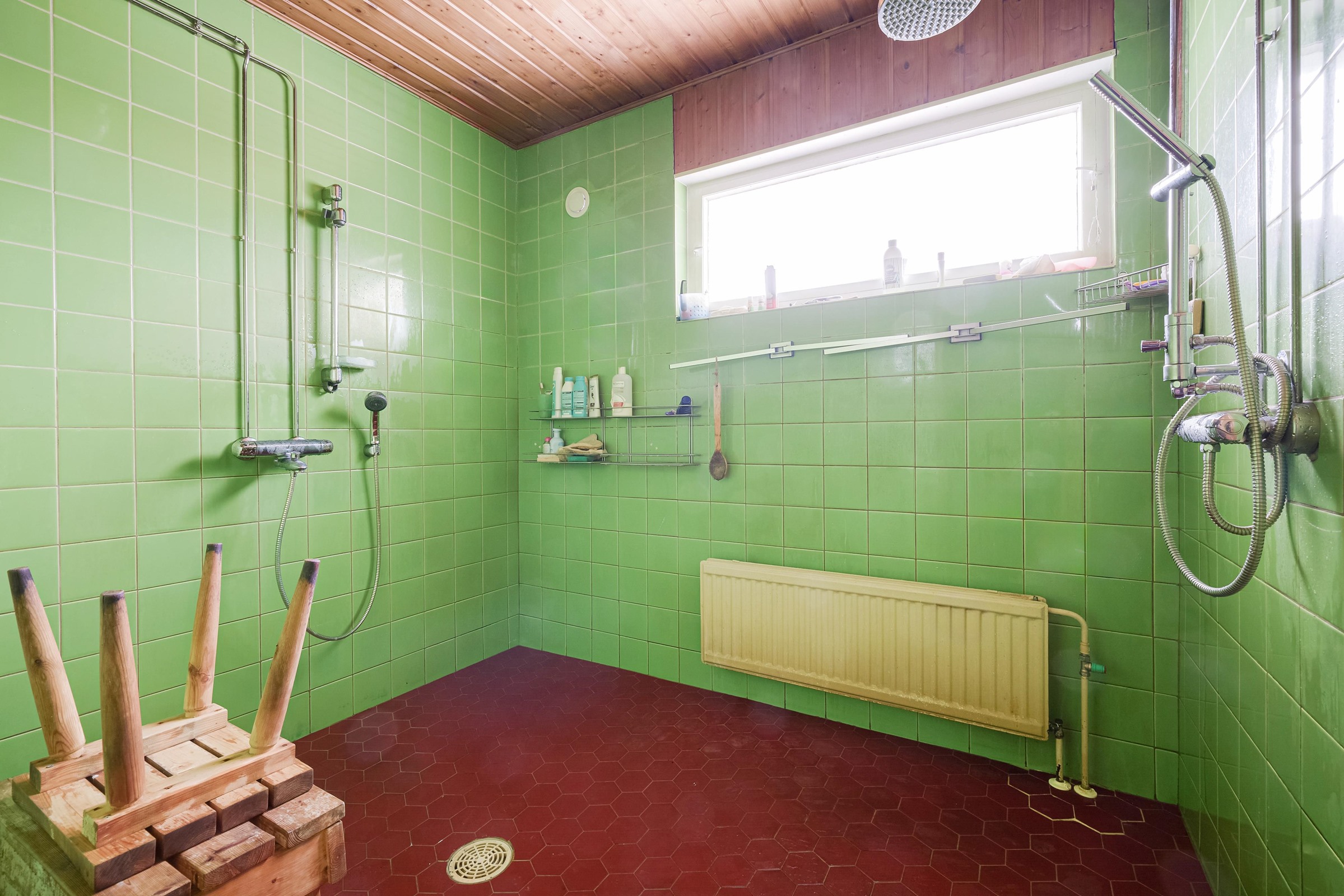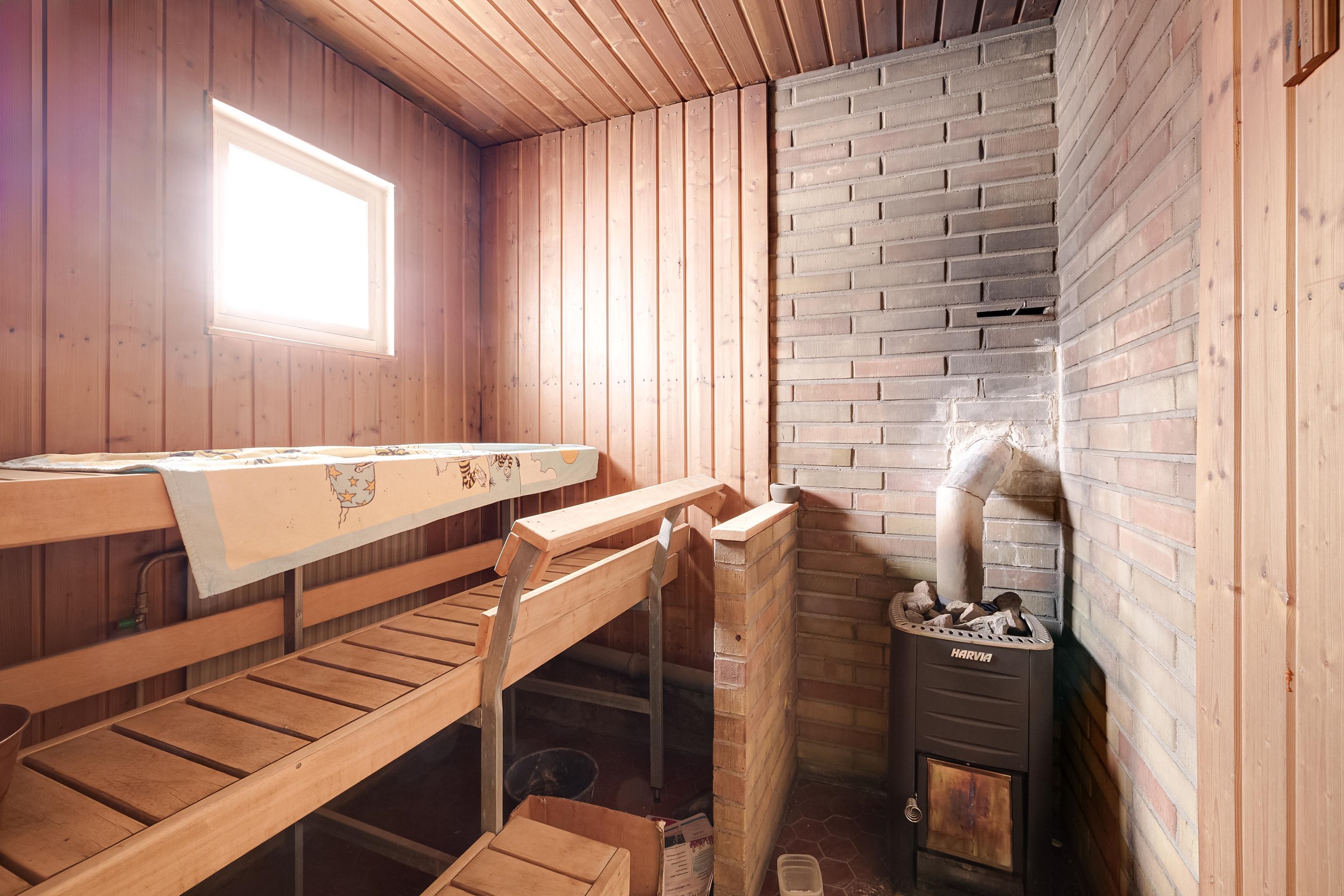 - Sauna, puukiuas, erillinen wc 2 kpl, suihku, peilikaappi, kaapit, pesukoneliitäntä, lattialämmitys Pukuhuoneessa, kiinteät valaisimet.