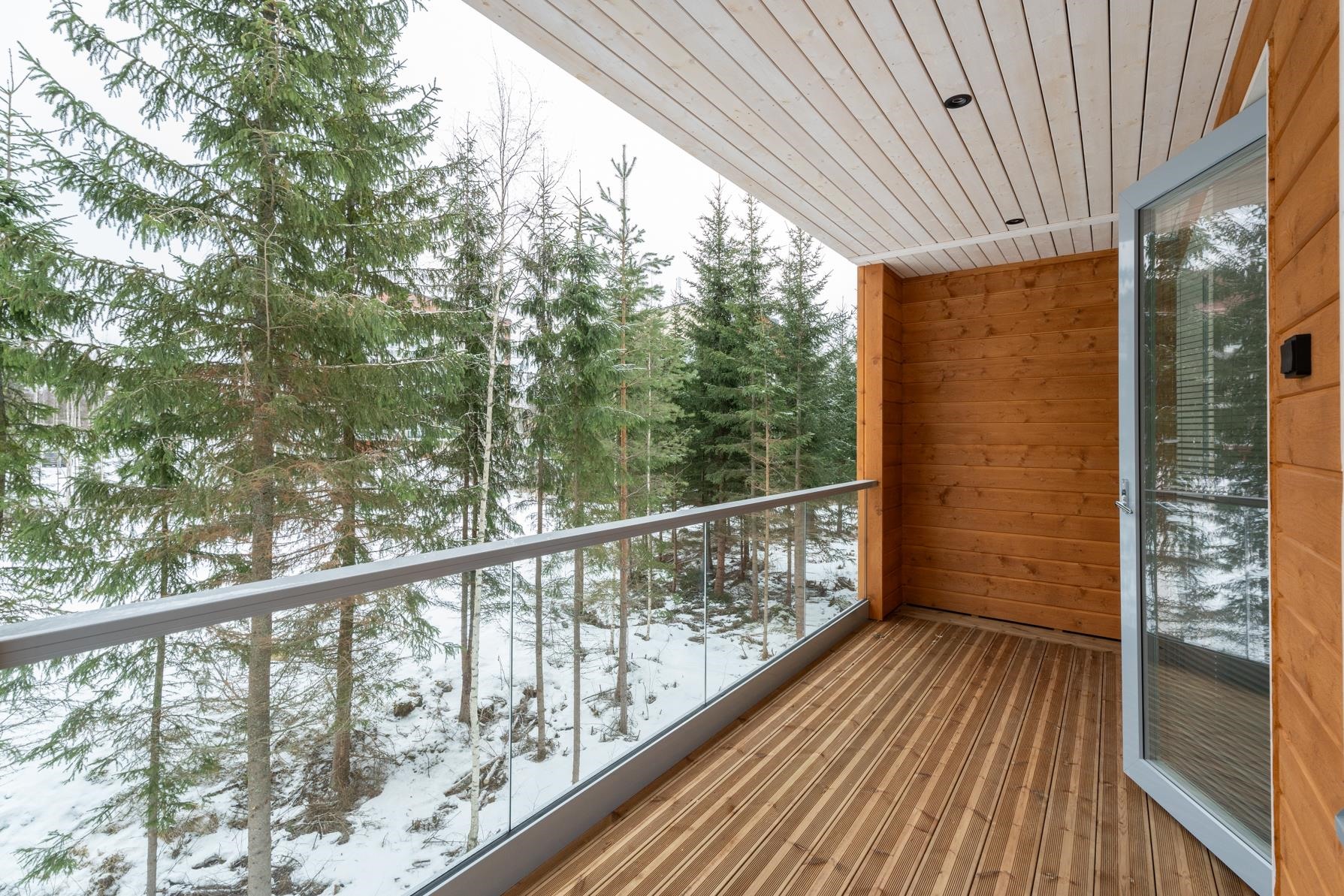 Asuntojen lattiat ovat kestävää laminaattia ja seinät maalattuja. Eteisessä ja pesutiloissa laattalattiat helpottavat arkea. Saunan ja kylpyhuoneen välinen seinä ja ovi ovat modernisti lasia ja saunojen paneelit lämpökäsiteltyä haapaa. Kotien keittiöt avautuvat oleskelutiloihin. Kodinkoneina ovat laadukkaat jääkaappi ja pakastin, astianpesukone, tasoliesi liesituulettimella, erillisuuni ja integroitu mikroaaltouuni.