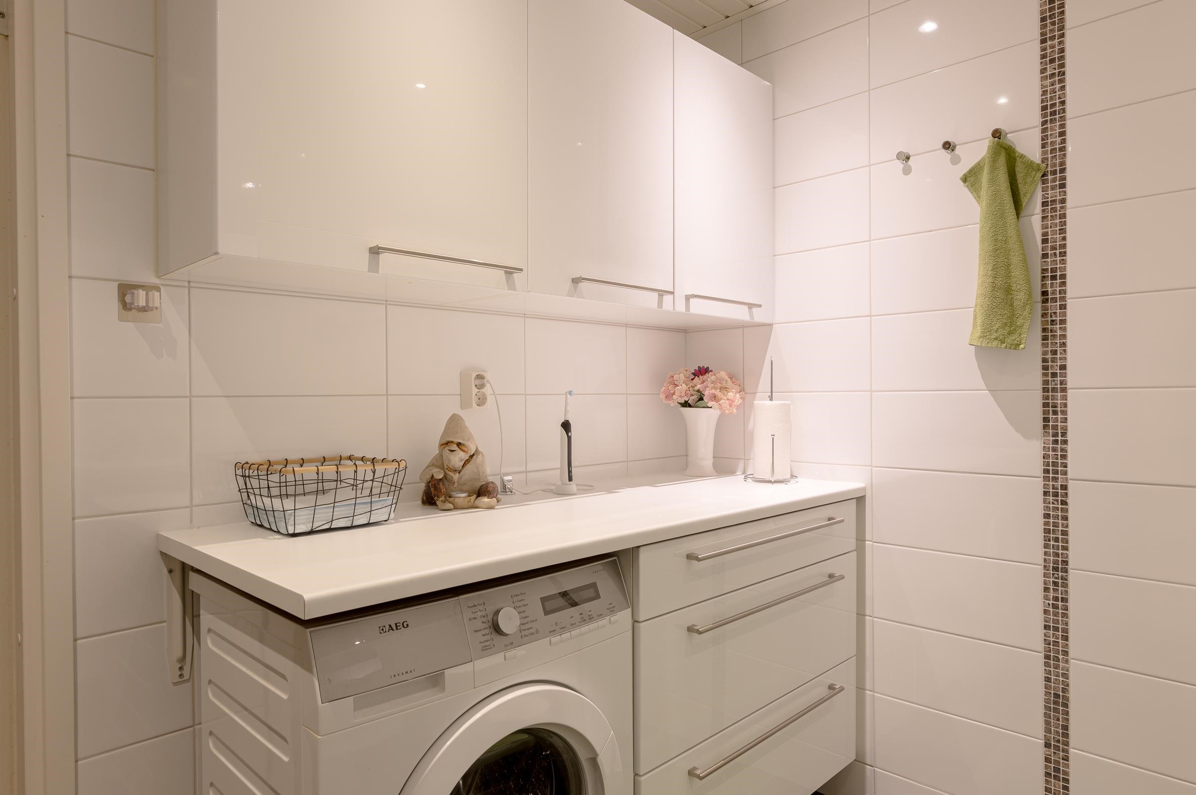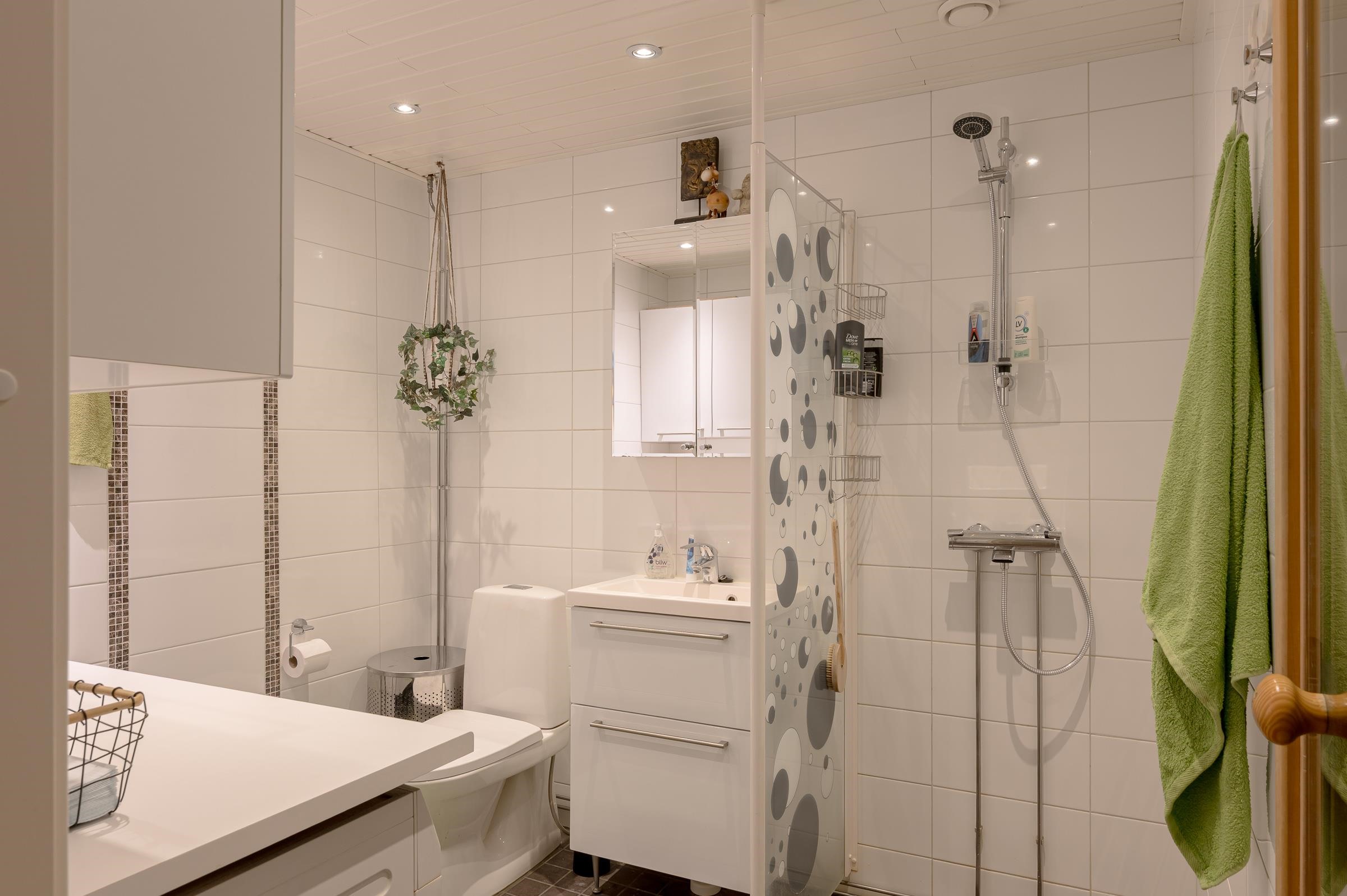- Sauna, sähkökiuas lasiovi, lauteet, erillinen wc peilikaappi, lavuaari, allaskaappi, suihku, suihkuseinä, kaapit KPH, pesukoneliitäntä KPH, lattialämmitys sähköinen (KPH ja erill.wc), kiinteät valaisimet.