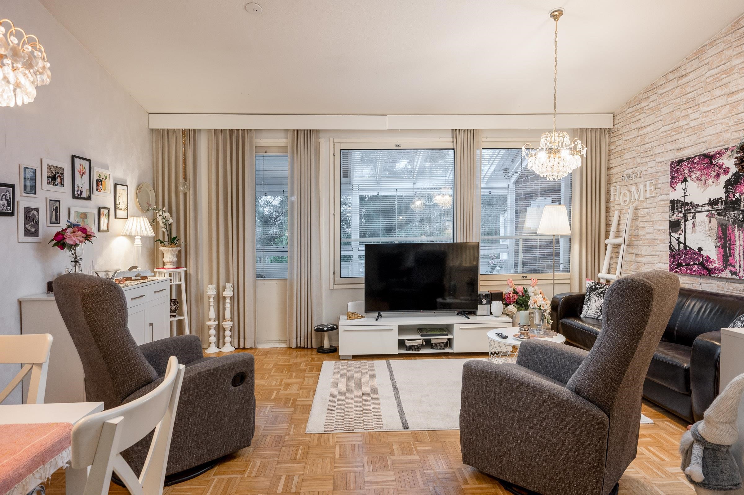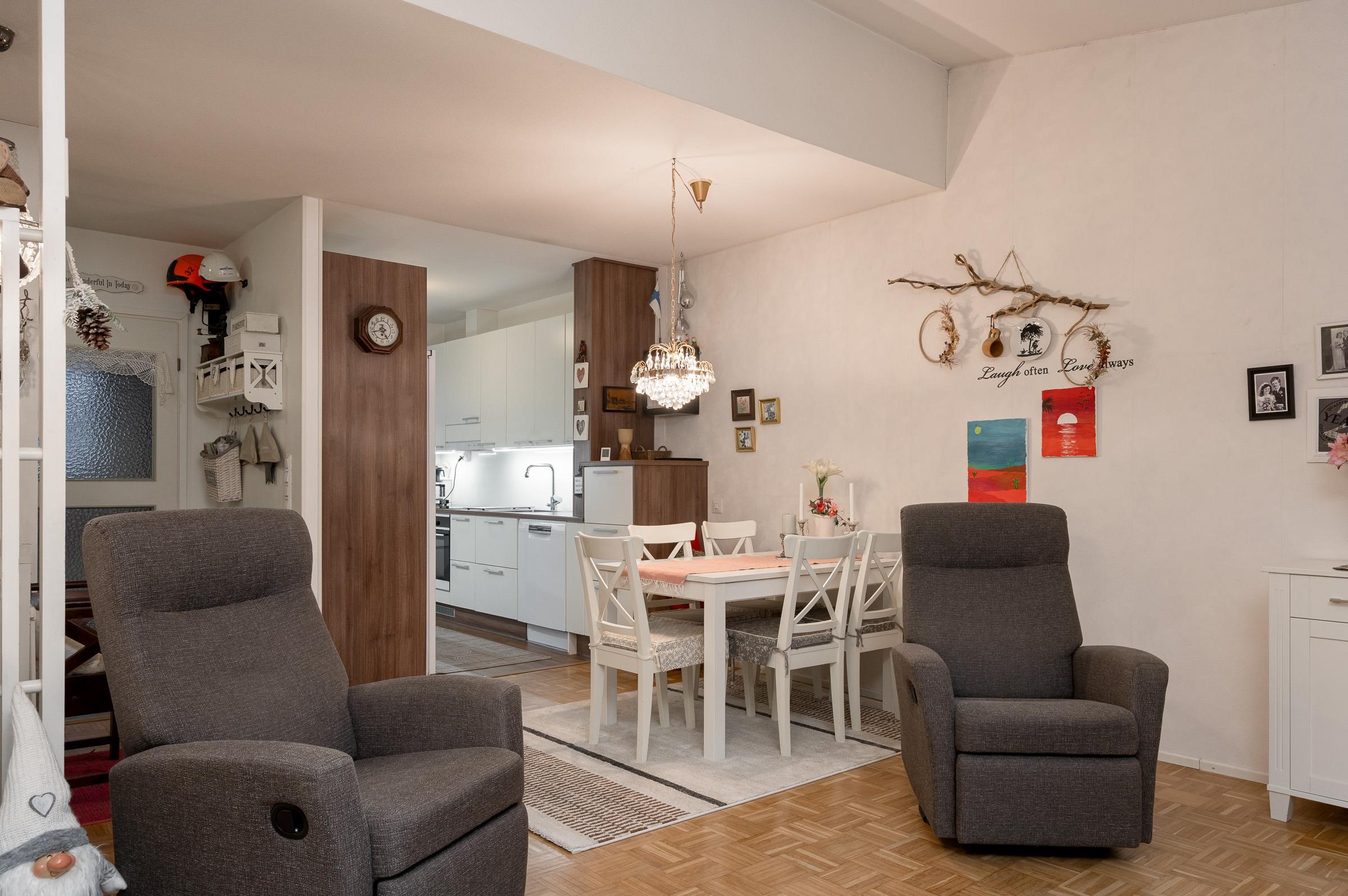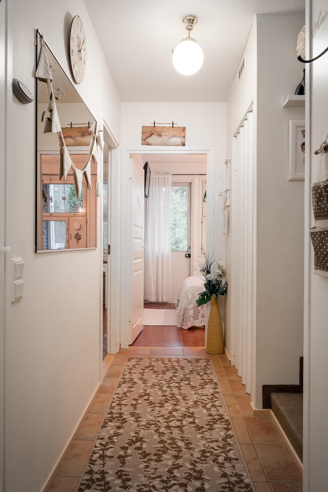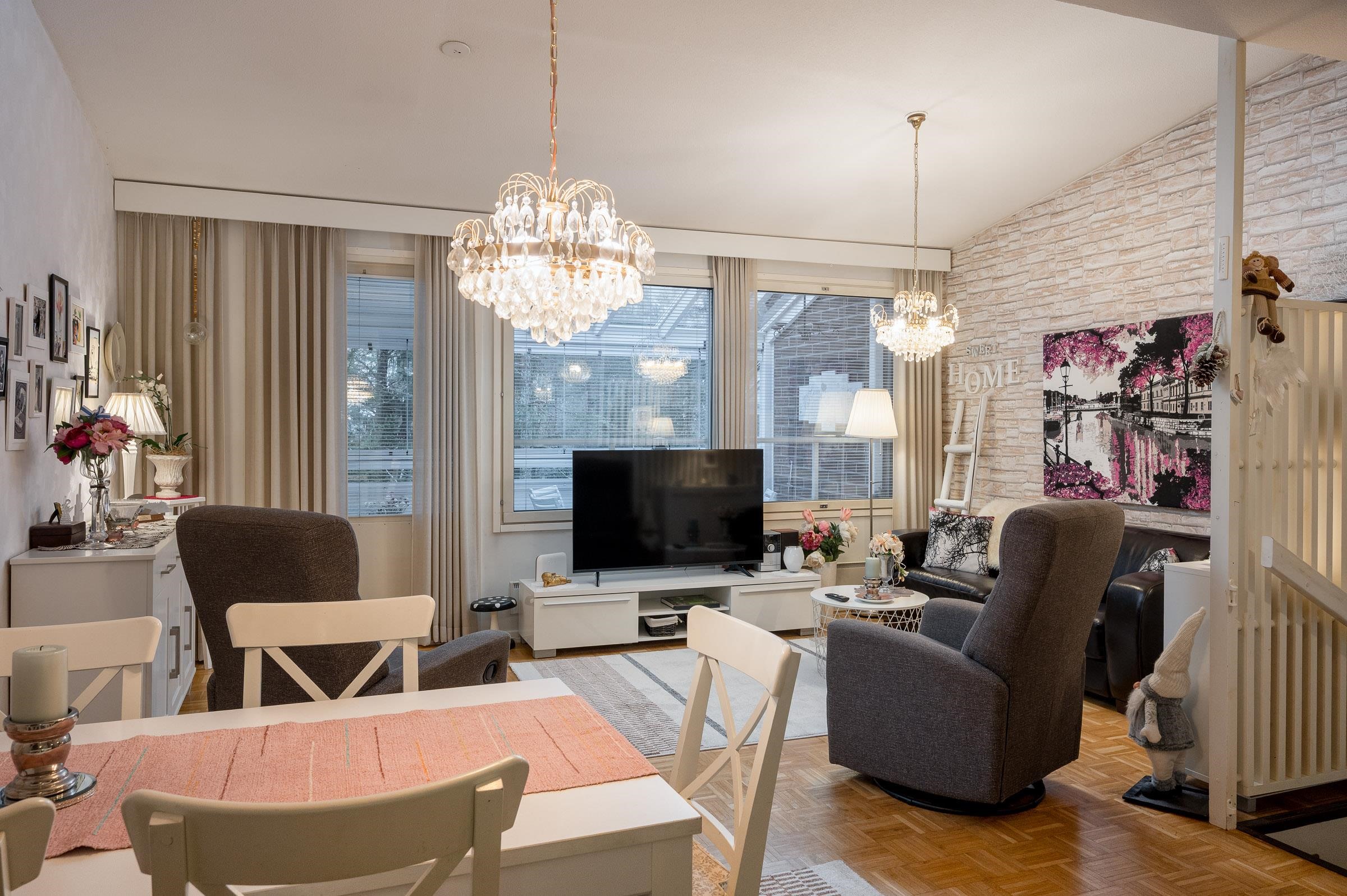 Kolmen huoneen rivitalokoti Raision Huhkon alueelta etsii uusia asukkaita. Asuintilat kahdessa tasossa, sisäänkäyntikerroksessa eteisaula, keittiö, erillinen wc, sekä korkea ja avara olohuone, josta käynti lasitetulle parvekkeelle. Alakerrassa kaksi makuuhuonetta, askarteluhuone, sekä kylpyhuone/wc ja sauna. Huoneiston keittiö ja kylpyhuone on päivitetty äskettäin. Lämmitysmuotona suora sähkölämmitys seinäpattereilla.
