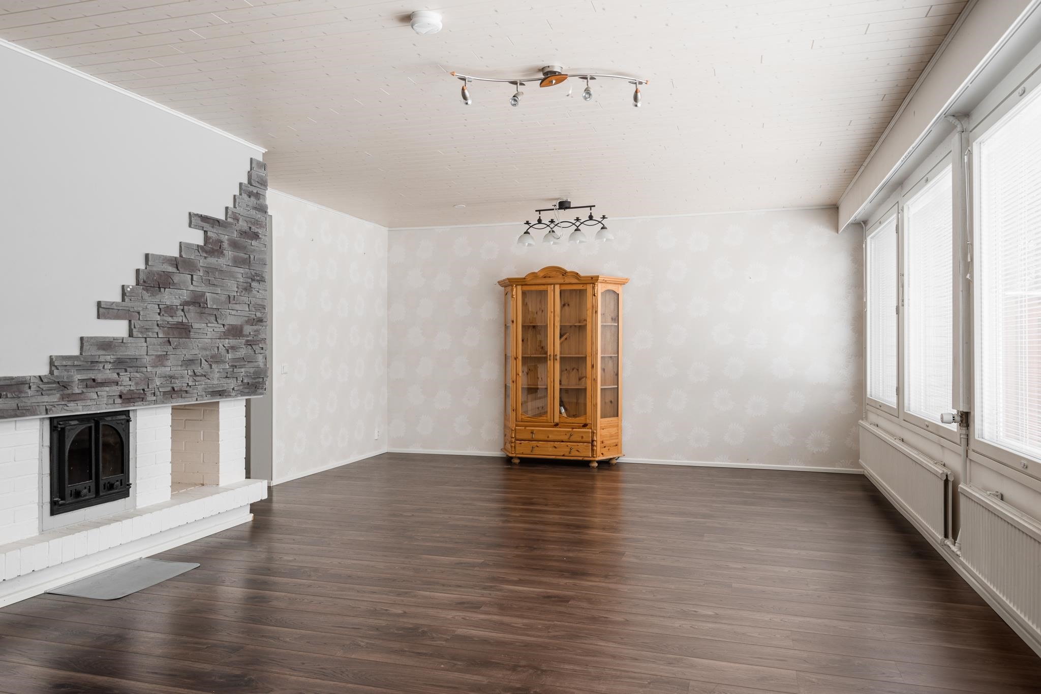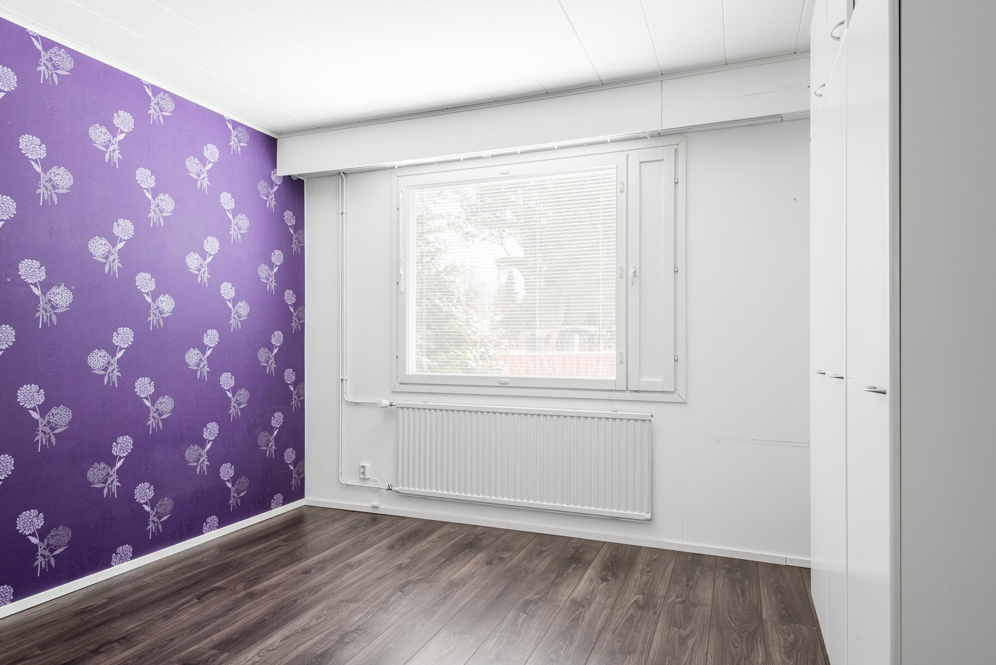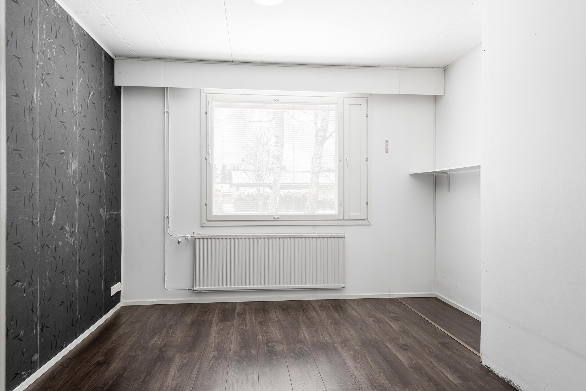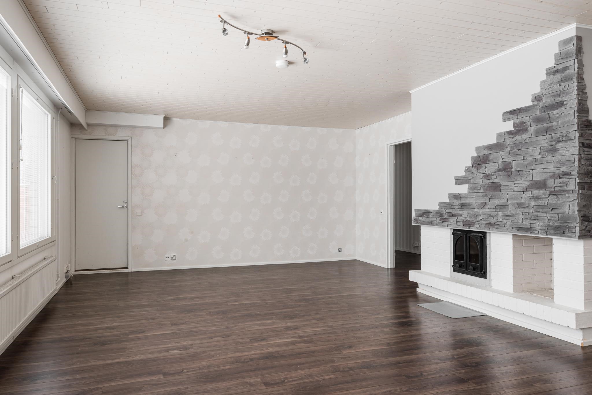Keittiö: Lattia laminaatti, seinä tapetti. Olohuone: Lattia laminaatti, seinä tapetti. Makuuhuone 1: Lattia laminaatti, seinä tapetti. Makuuhuone 2: Lattia laminaatti, seinä tapetti. Makuuhuone 3: Lattia laminaatti, seinä tapetti. Sauna: Lattia laatoitettu, seinät paneeli. Kylpyhuone: Lattia ja seinät laatoitettu. Eteinen: Lattia laatoitettu, seinät maalattu. Wc: Lattia laatoitettu, seinät maalattu.