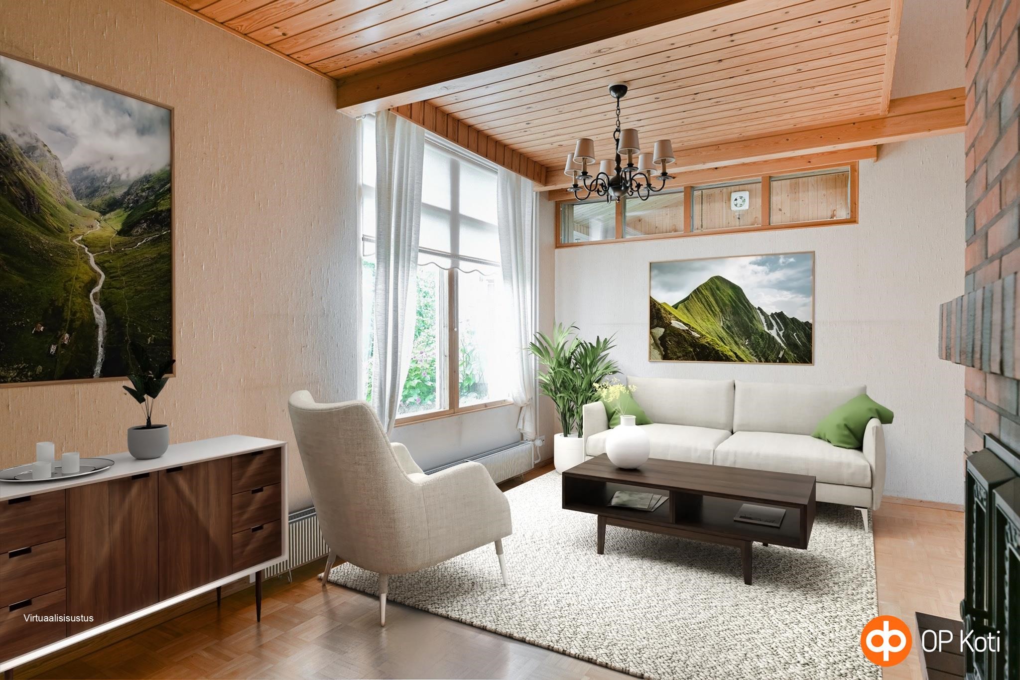 Persoonallinen koti mahdollistaa monipuolisen sisustamisen. Lisäksi asunnossa on 10 neliömetrin lasikuisti, joka antaa kesäksi mukavasti lisätilaa. Asunto n mukavasti varusteltu, siinä on muun muassa varaava takka ja kaapeli-TV:n valmius.