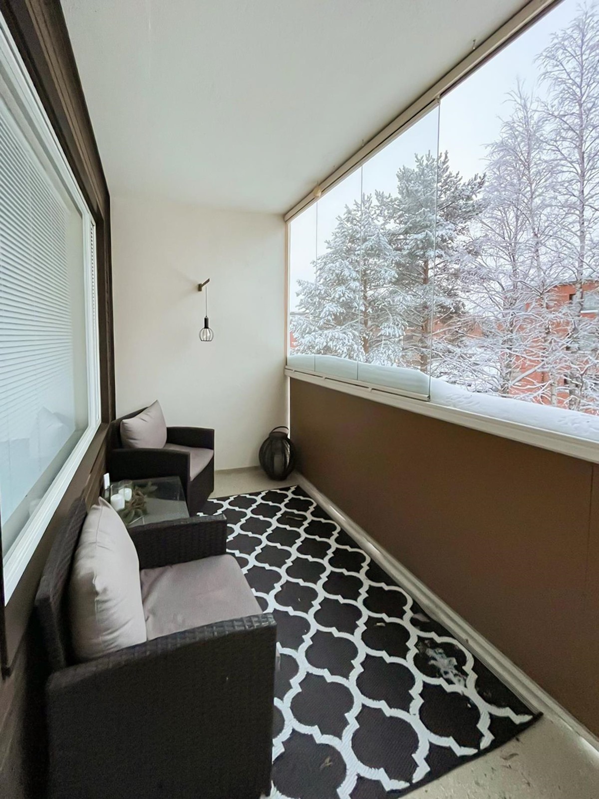 Lasitettu parveke on täydellinen paikka nauttia ulkoilmasta ja rentoutua, säästä riippumatta. Asunto on tällä hetkellä vuokrattu, mikä tekee siitä houkuttelevan vaihtoehdon myös sijoittajalle, joka etsii varmaa tuottoa hyvin hoidetusta kohteesta.