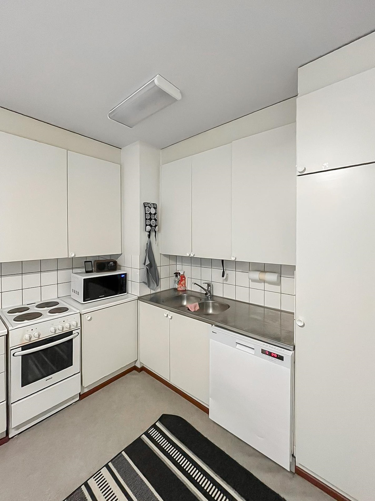 - Jääkaappipakastin, sähköliesi, liesikupu, astianpesukone, kaapistot, kiinteät valaisimet.