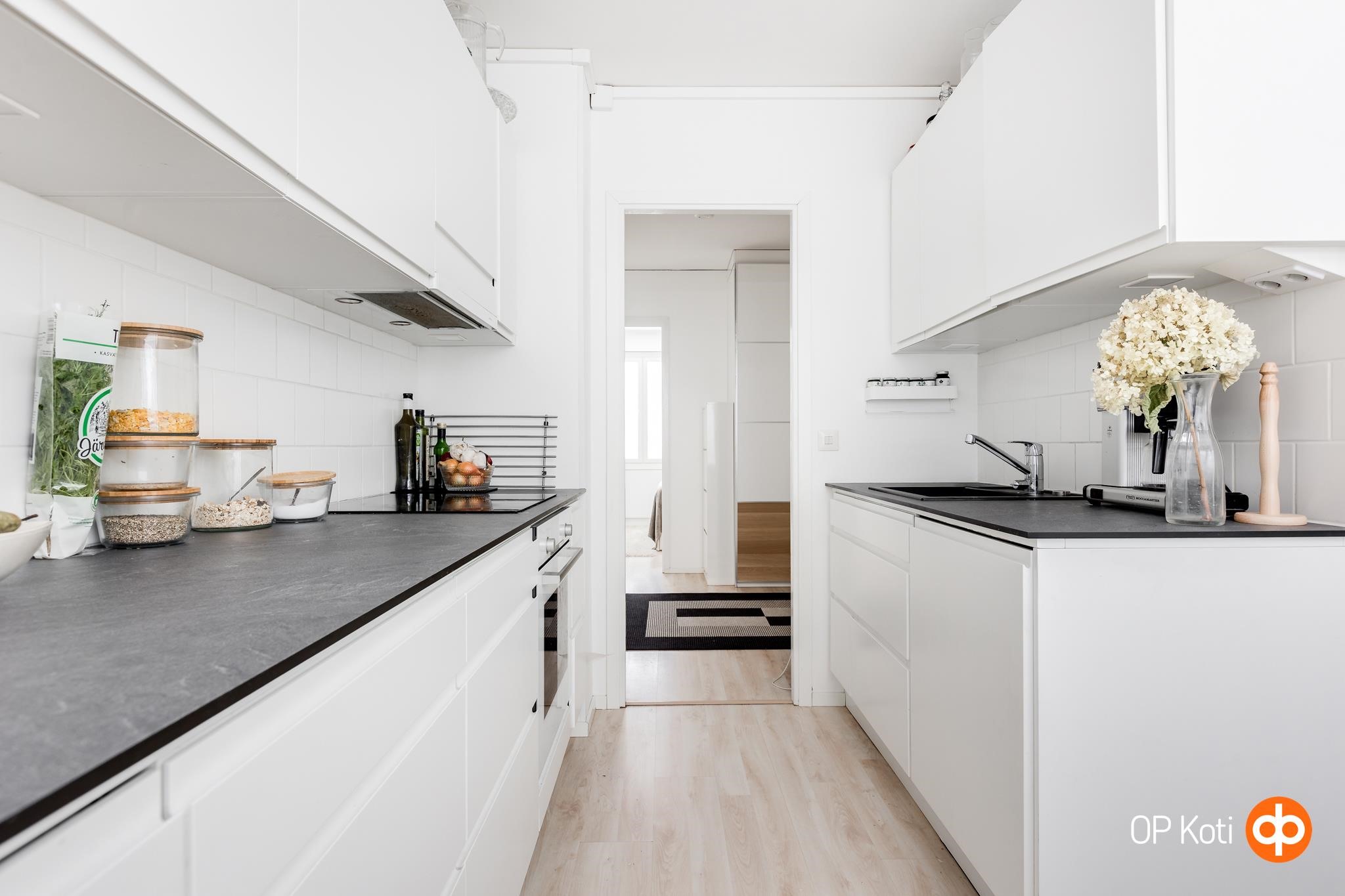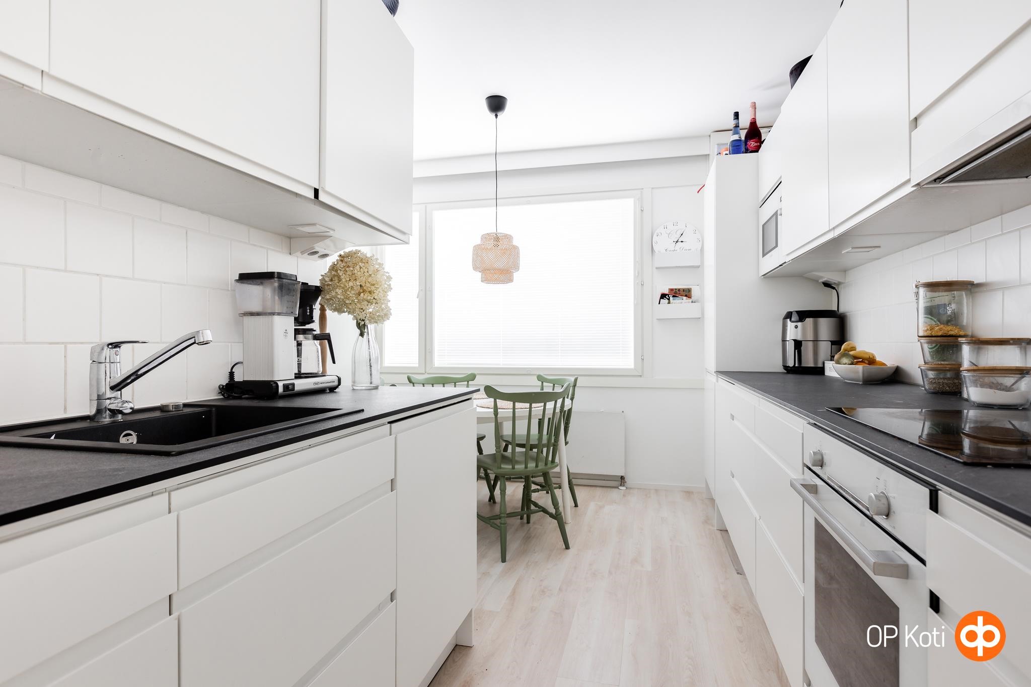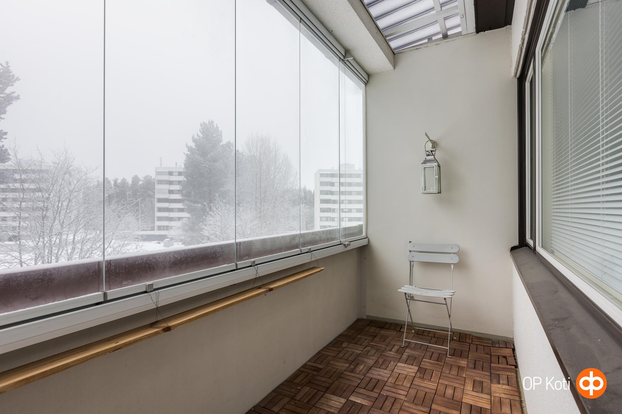 - Läpitalon huoneisto. Kolmesta mh:sta ja oh:sta näkymä taloyhtiön takapihalle/puistoon/etelään. Keittiöstä ja yhdestä mh:sta näkymä Kaislatien suuntaan/pohjoiseen.