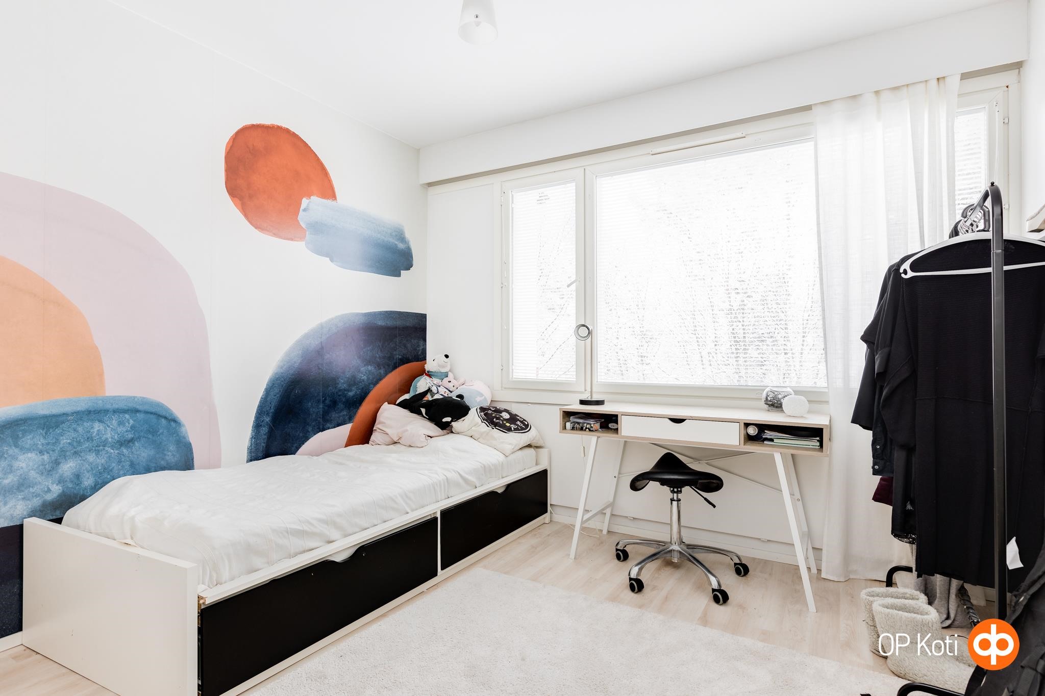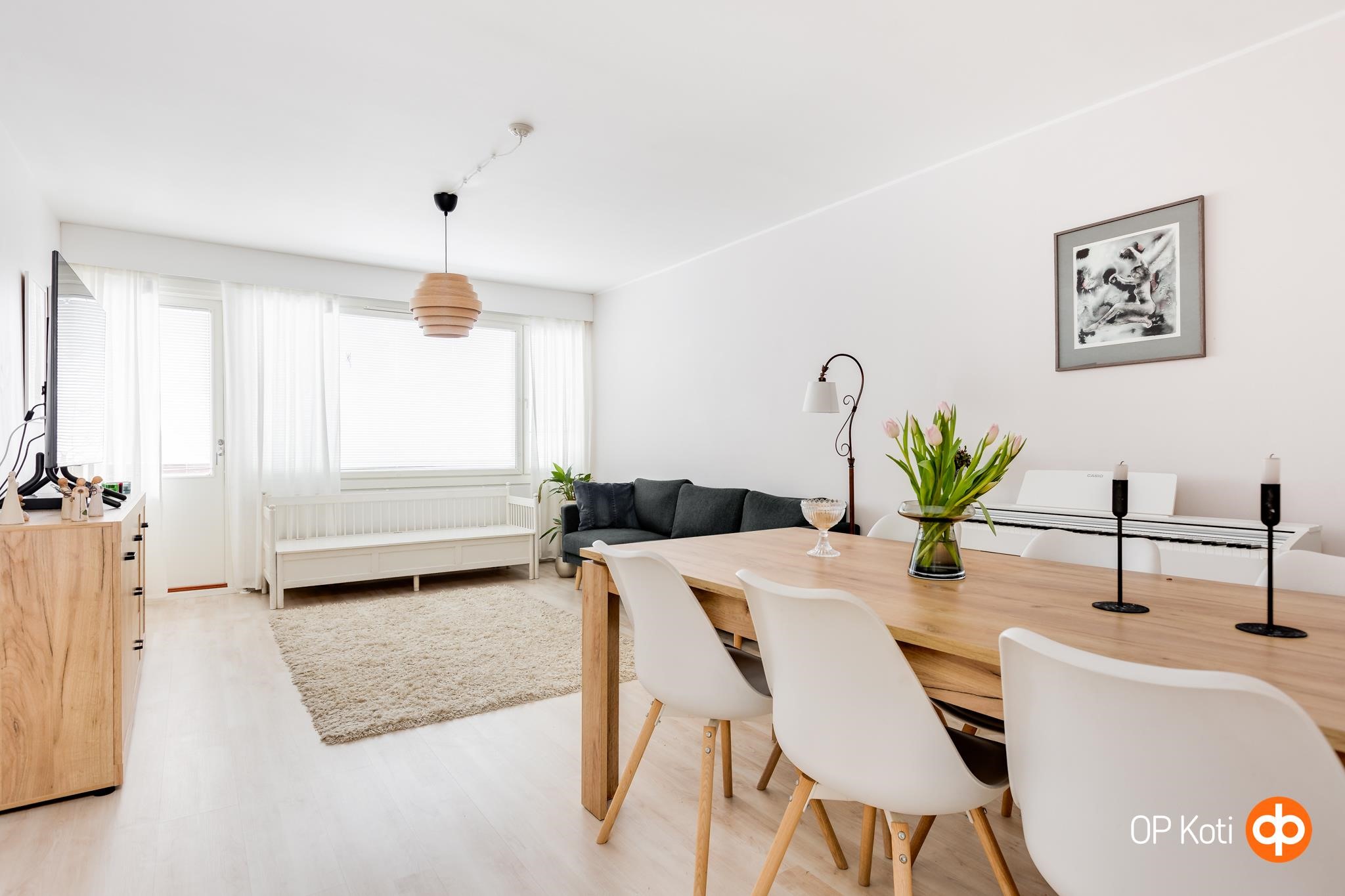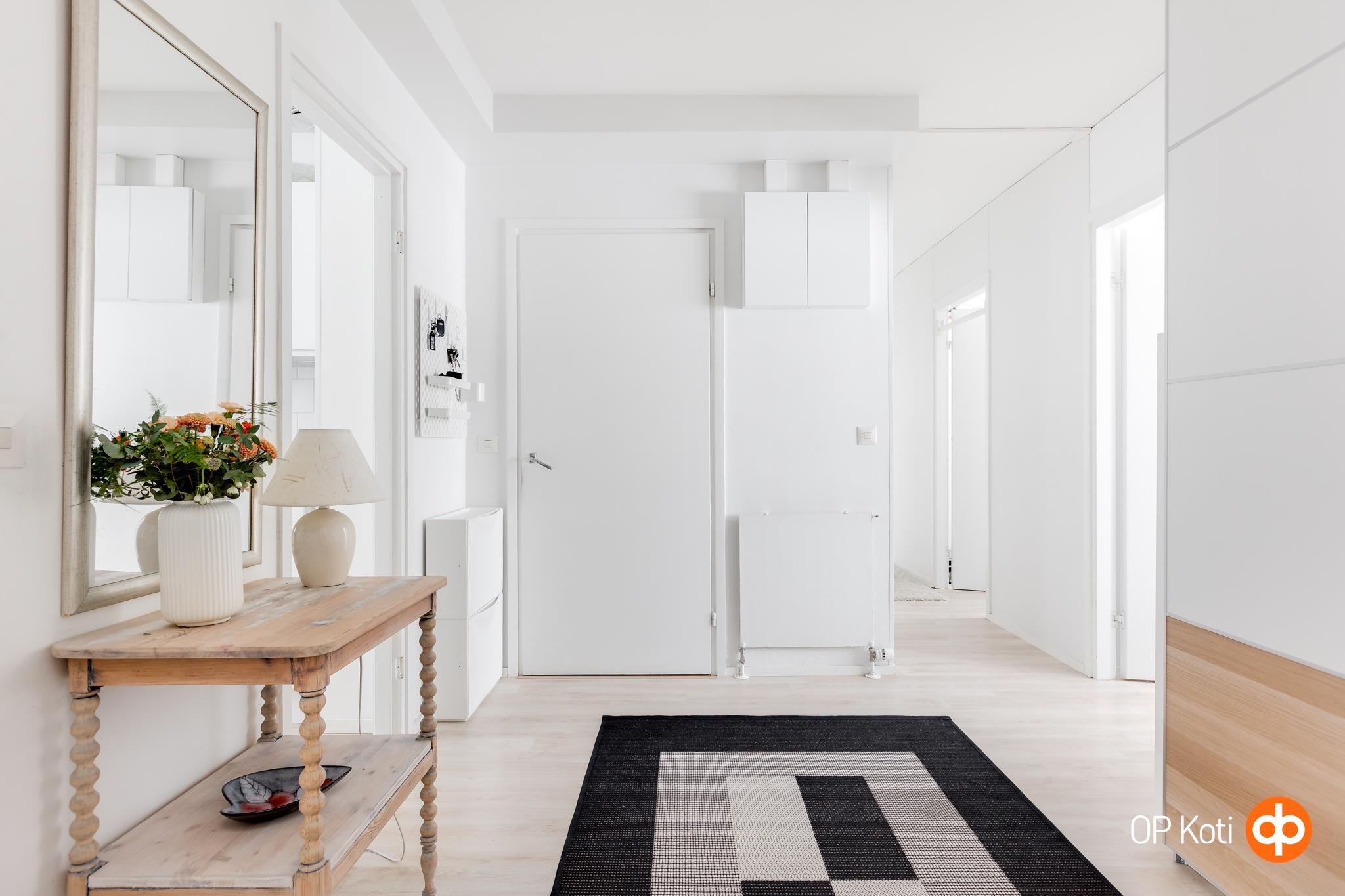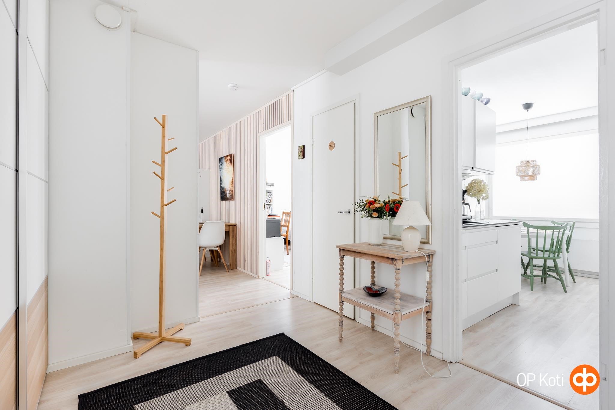 Asunto sijaitsee kolmannessa kerroksessa ja sen asuinpinta-ala on 97 neliömetriä. Huoneistossa on viisi huonetta ja keittiö, joten tilaa riittää isommallekin perheelle. Asuntoa on remontoitu kattavasti vuonna 2020, jolloin uusittiin mmm. seinä- ja lattiapintoja sekä keittiö. Keittiö on moderni ja hyvin varusteltu, ja siellä on uusitut kodinkoneet. Olohuoneessa on kaunis puurimaseinä, joka tuo tilaan lämpöä ja tunnelmaa. Asunnossa on myös kaksi wc:tä sekä tilava eteisen vaatekaappi ja makuuhuoneen lipasto, jotka ovat puusepän tekemää työtä. Lasitettu parveke etelään tarjoaa mukavan paikan nauttia aurinkoisista päivistä.