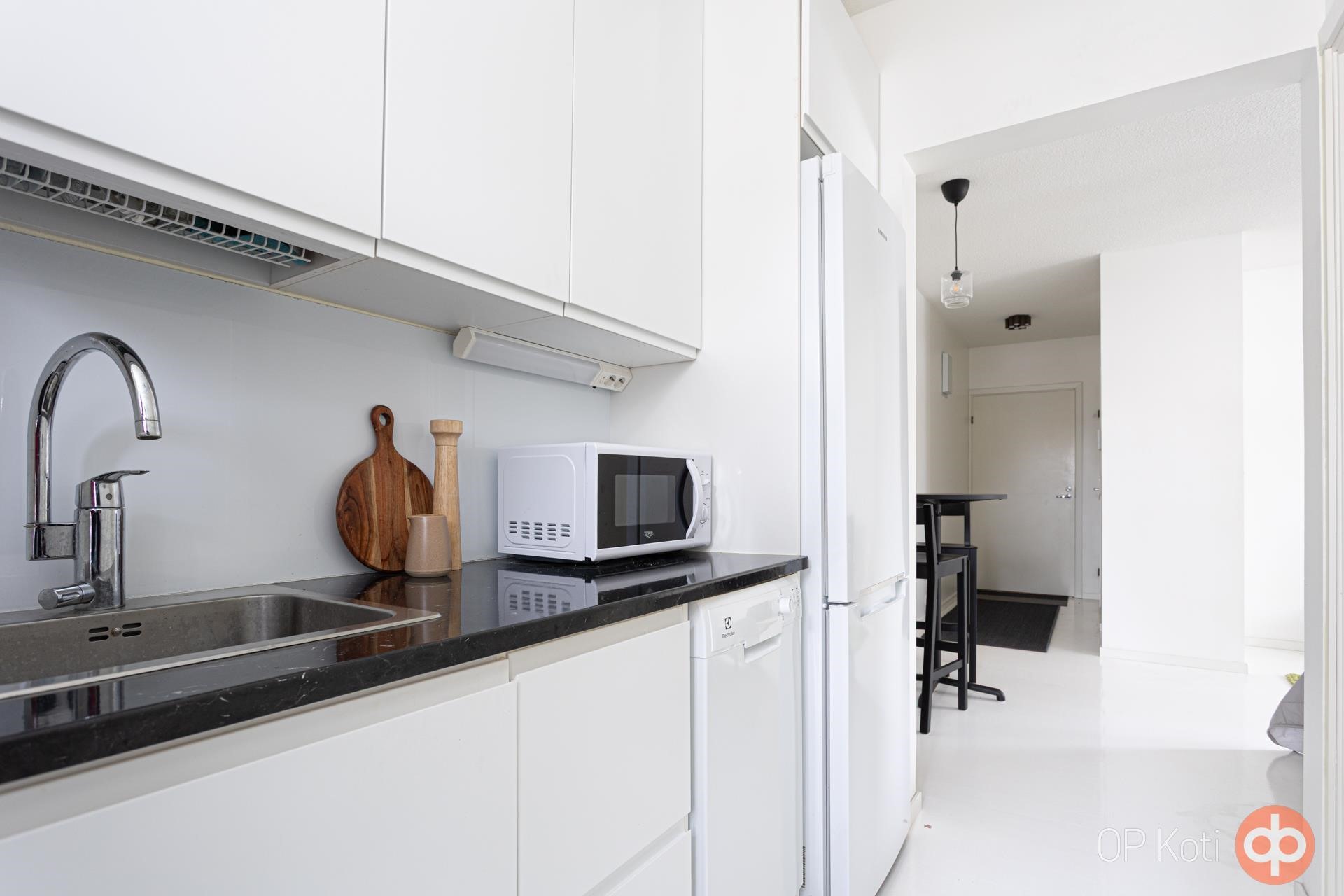- Jääkaappipakastin, induktioliesi, liesituuletin, astianpesukone, kaapistot, kiinteät valaisimet. Keittiö remontoitu 2020