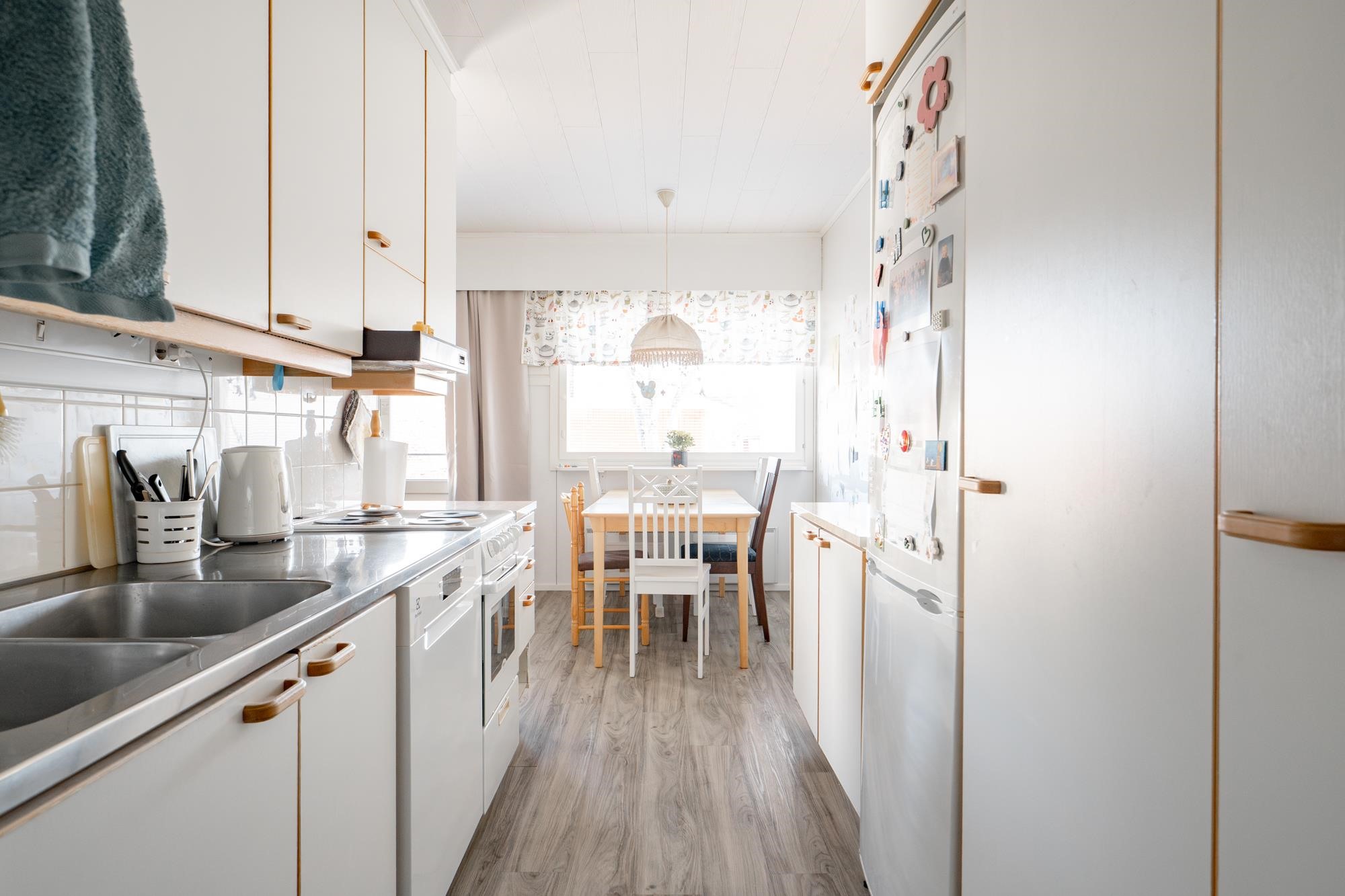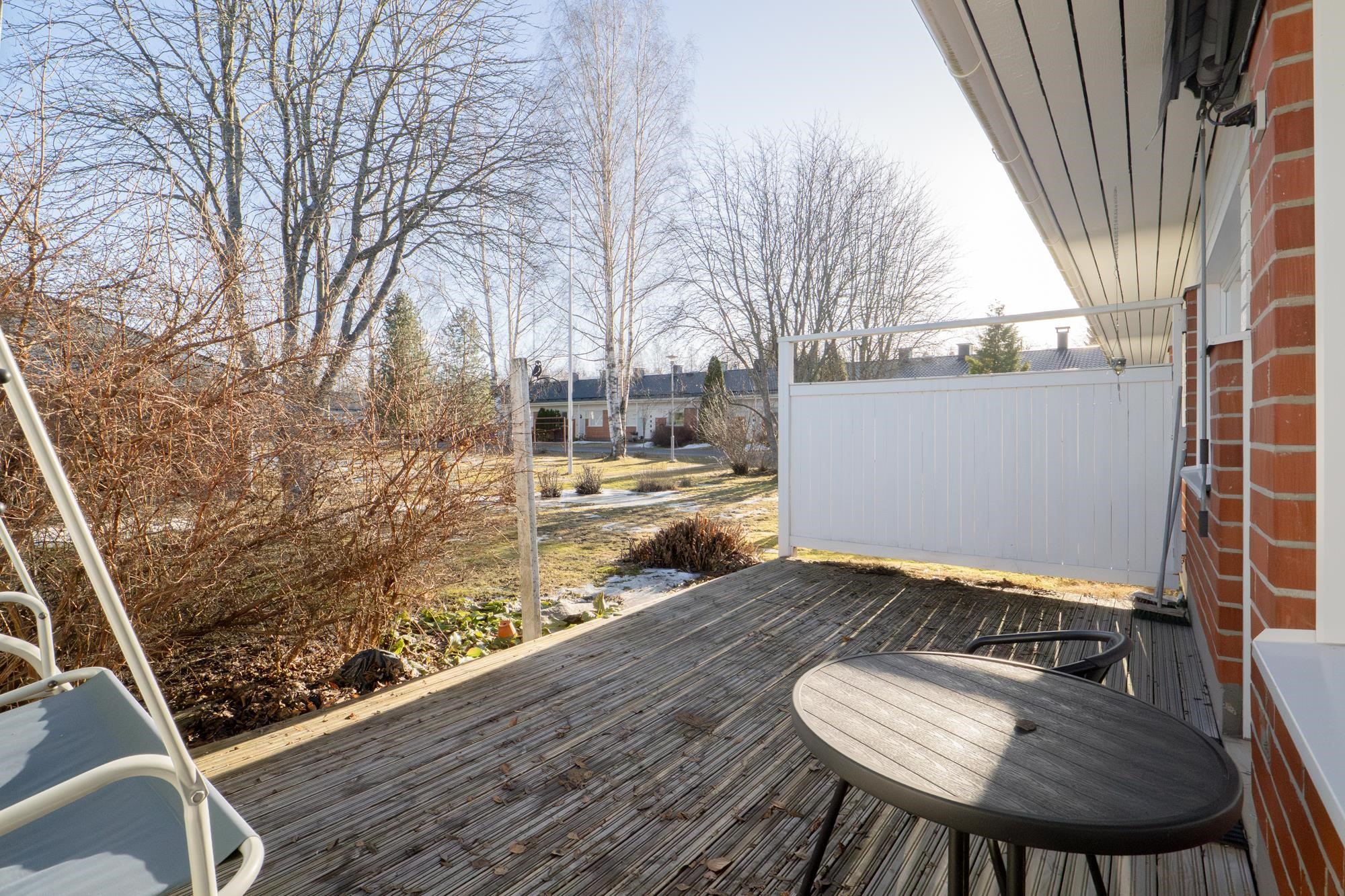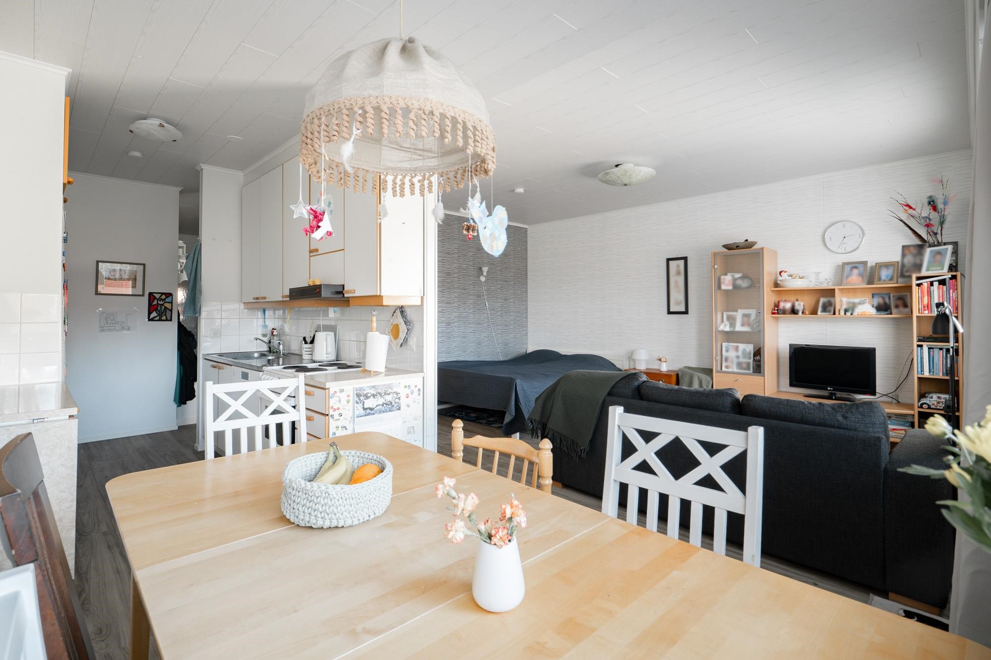 Suositulta Joupin asuinalueelta myyntiin valoisa, reilun kokoinen saunallinen päätykaksio. Asunnon pintoja on uusittu tarpeen mukaan vuosien saatossa.