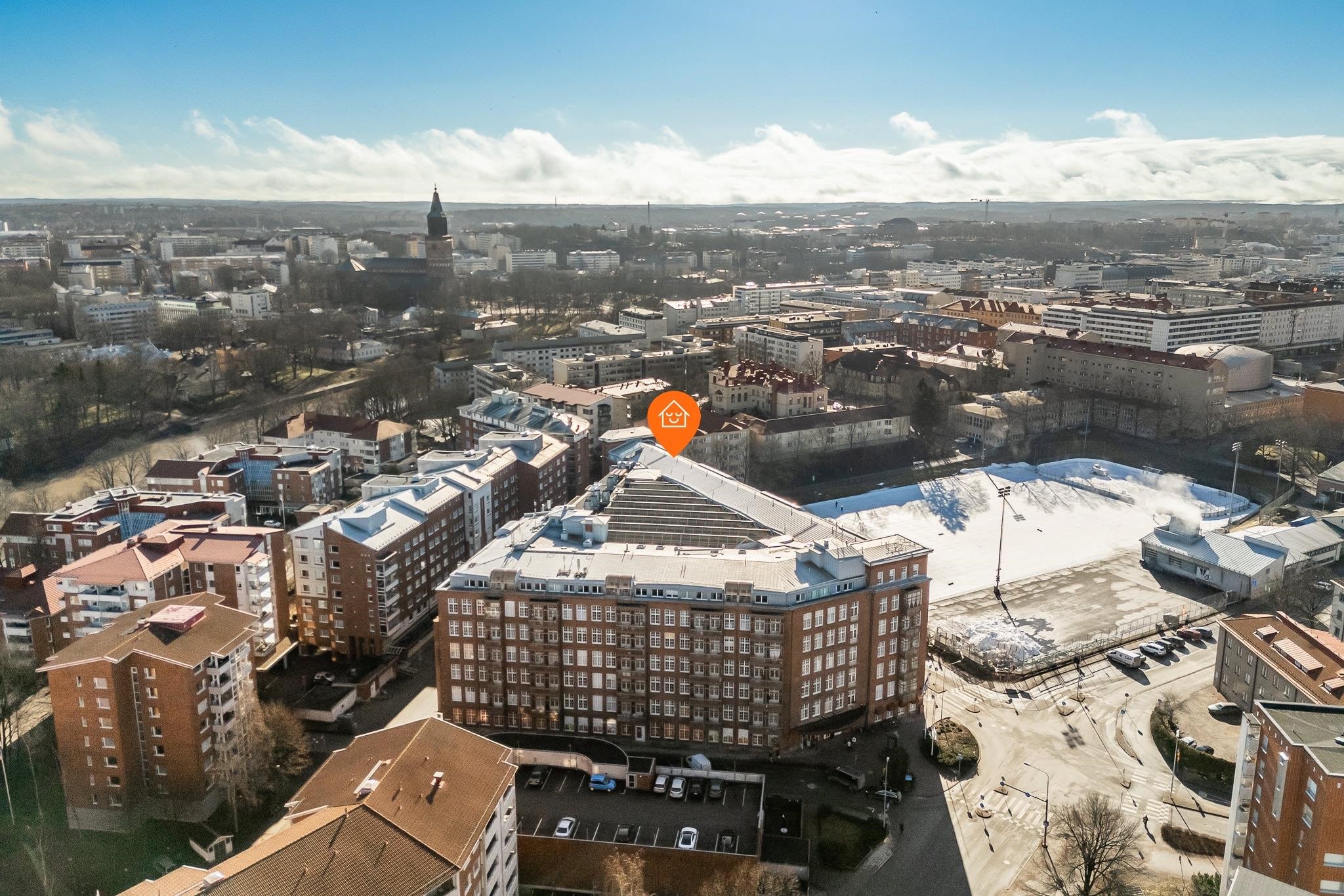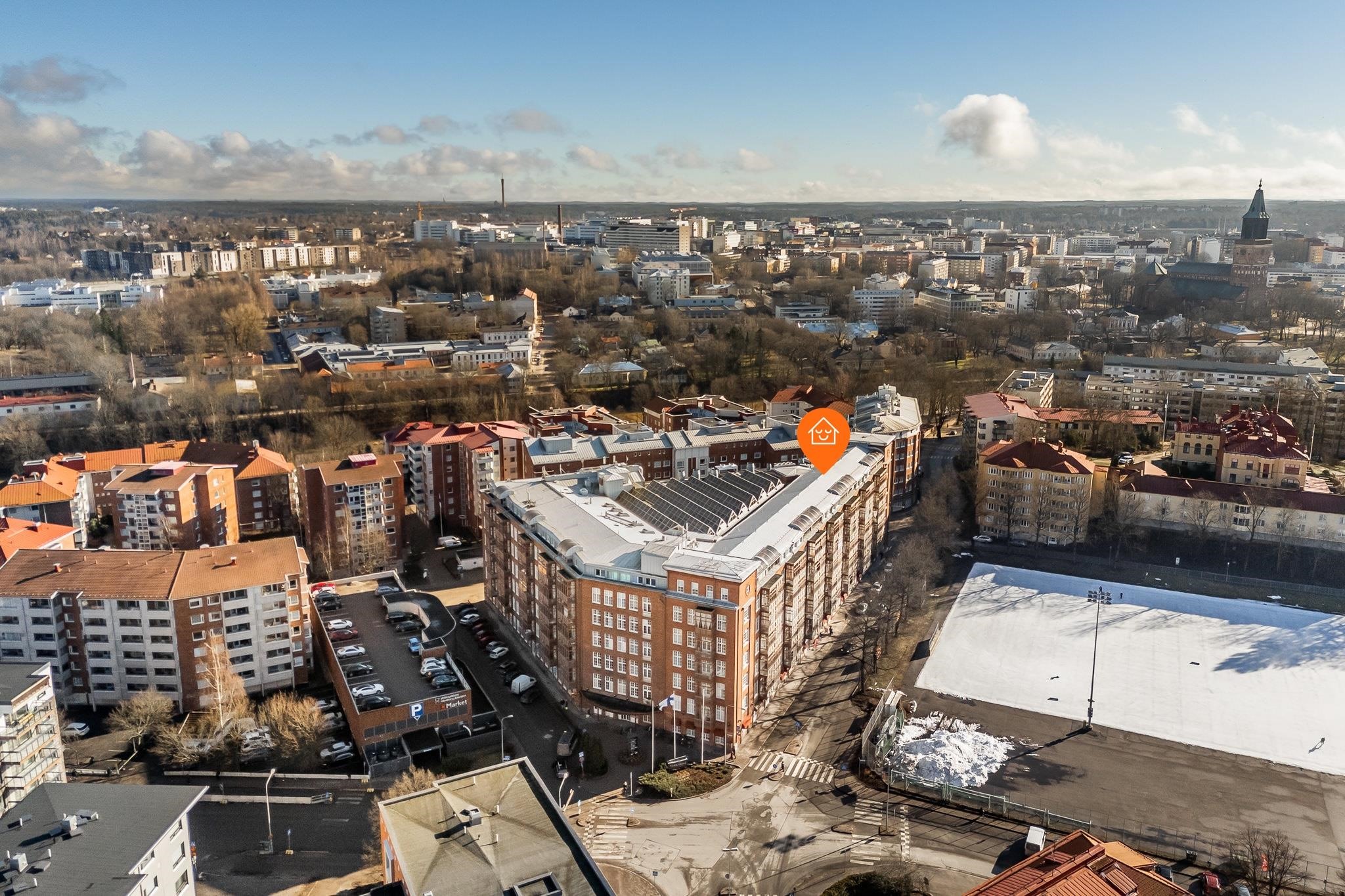 Asunnossa on kolme makuuhuonetta, tilava olohuone sekä keittiö. Korkeat huoneet ja suuret ikkunat tuovat runsaasti valoa ja avaruutta asuntoon. Makuuhuoneesta on kulku lasitetulle parvekkeelle, josta avautuvat kauniit näkymät Parkin kentälle. Oman saunan löylyissä voit rentoutua pitkän päivän päätteeksi, ja kaksi erillistä wc:tä helpottavat arjen sujuvuutta. Lisäksi kodinhoitohuone tuo käytännöllisyyttä pyykkihuoltoon. Asuntoon on asennettu ilmalämpöpumppu vuonna 2019, mikä lisää asumismukavuutta erityisesti kesäkuukausina.