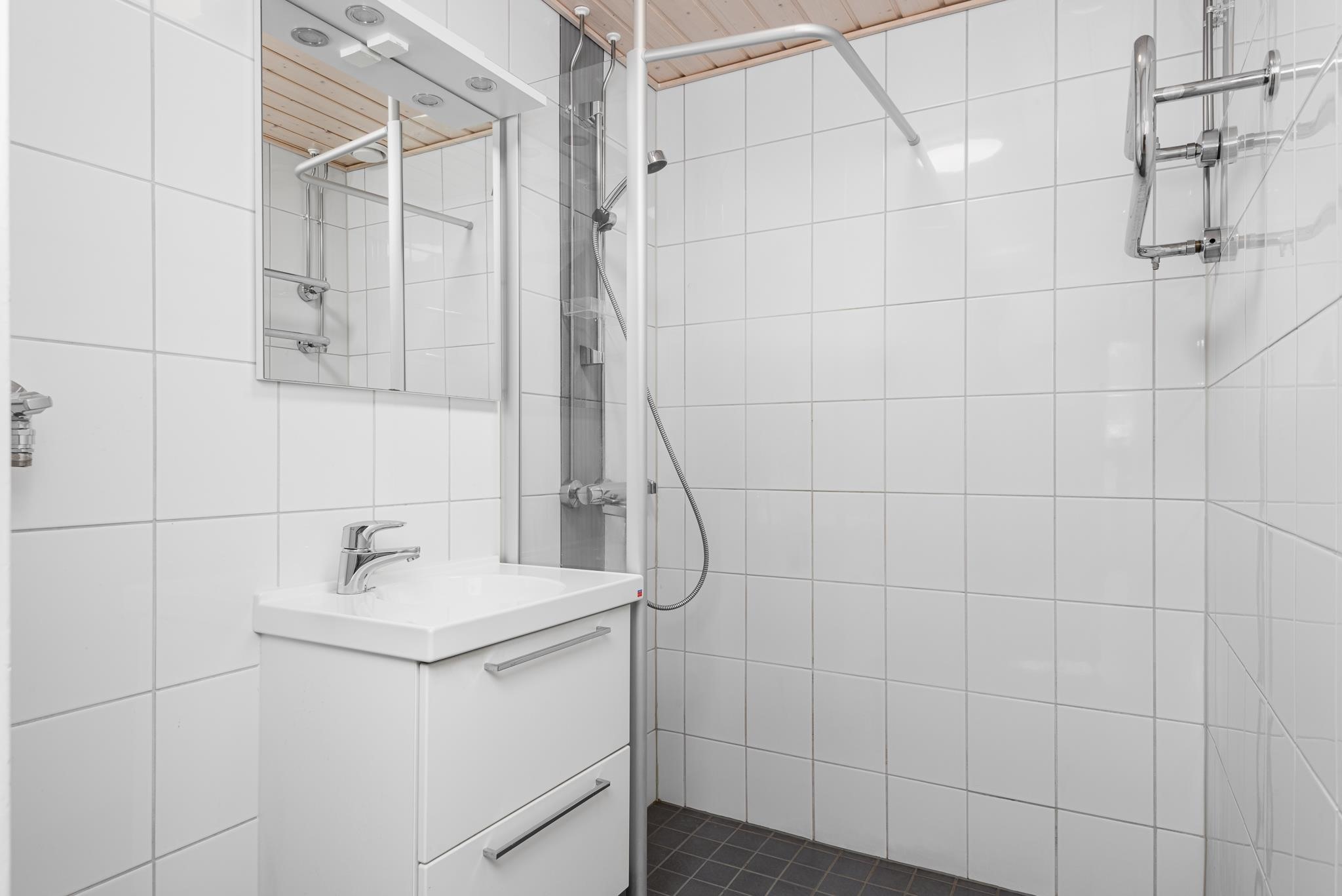 - Kylpyhuone, erillinen wc, peilit, peilikaappi, pesukoneliitäntä, kiinteät valaisimet.