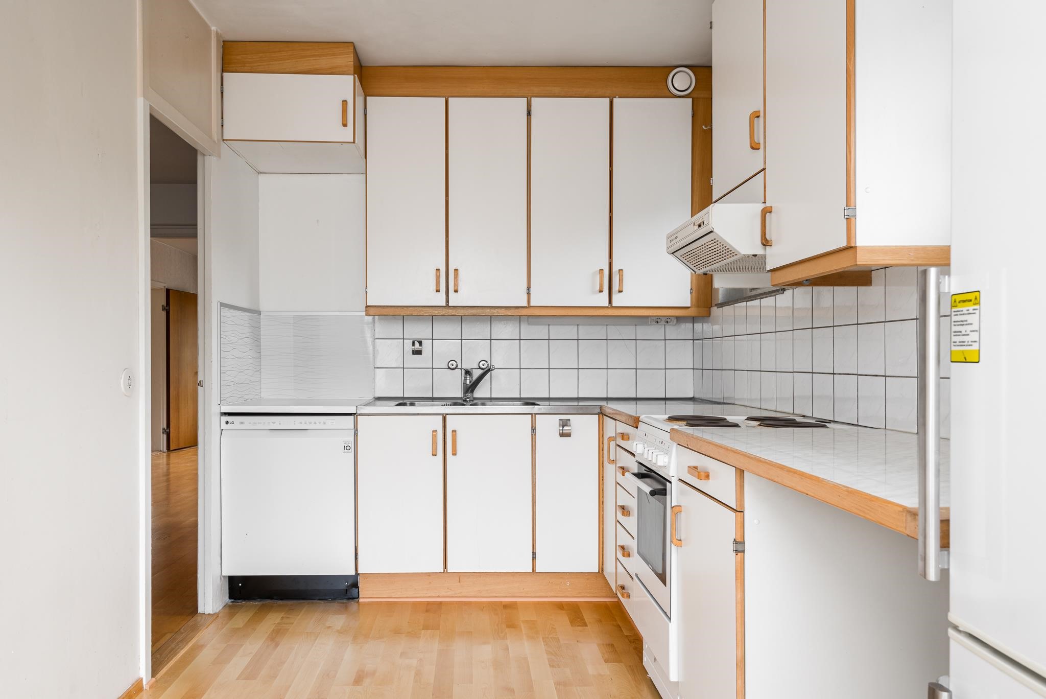 - Jääkaappipakastin, sähköliesi, liesituuletin, astianpesukone, kiinteät valaisimet.
