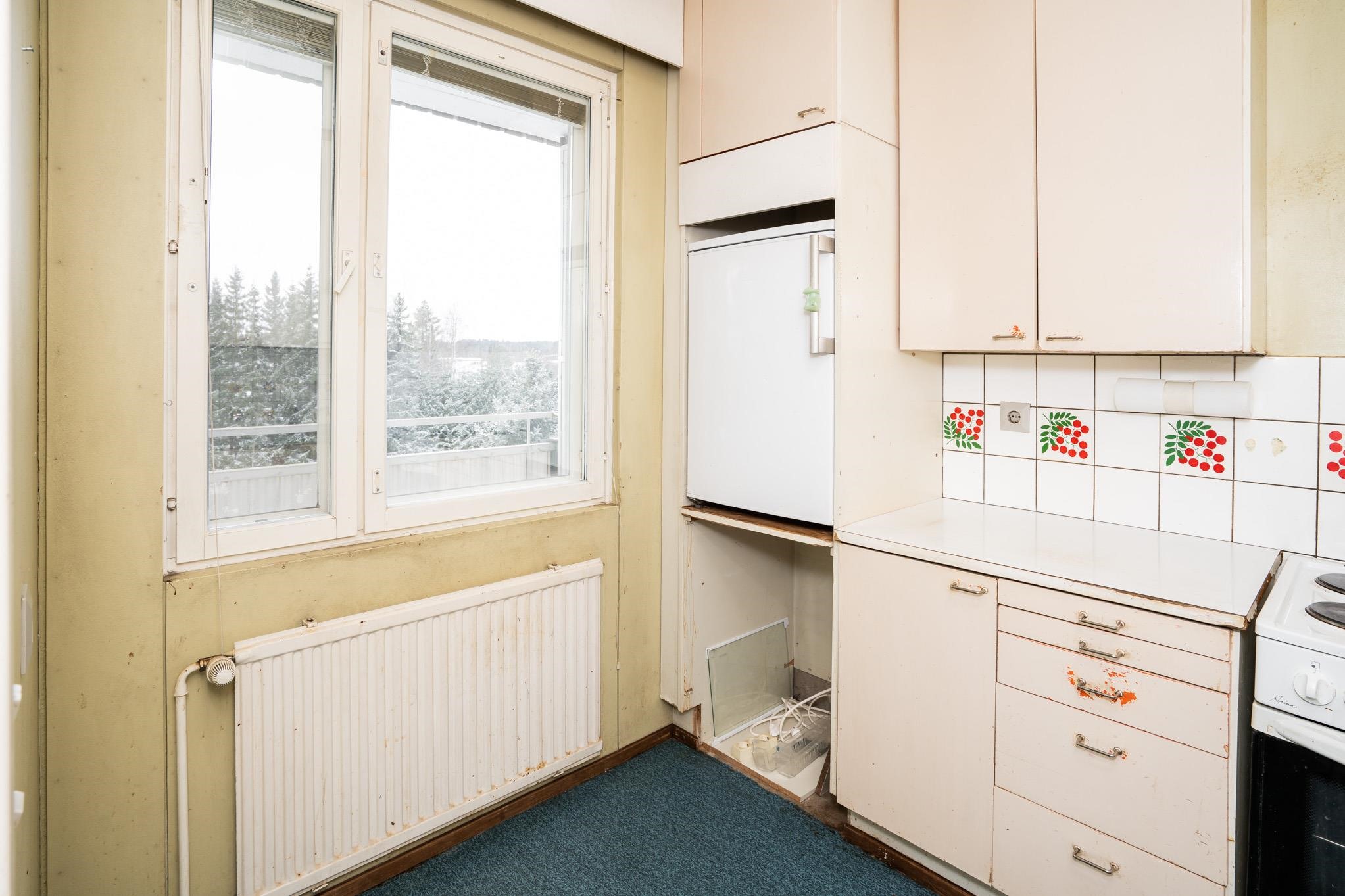 Keittiö: Muovimatto. Maalattu. Olohuone: + alkovi: Muovimatto. Tapetti/maalattu. Kylpyhuone: / wc: Muovimatto. Maalattu/kaakeli. Eteinen: Muovimatto. Maalattu. Vaatehuone: Muovimatto. Maalattu.