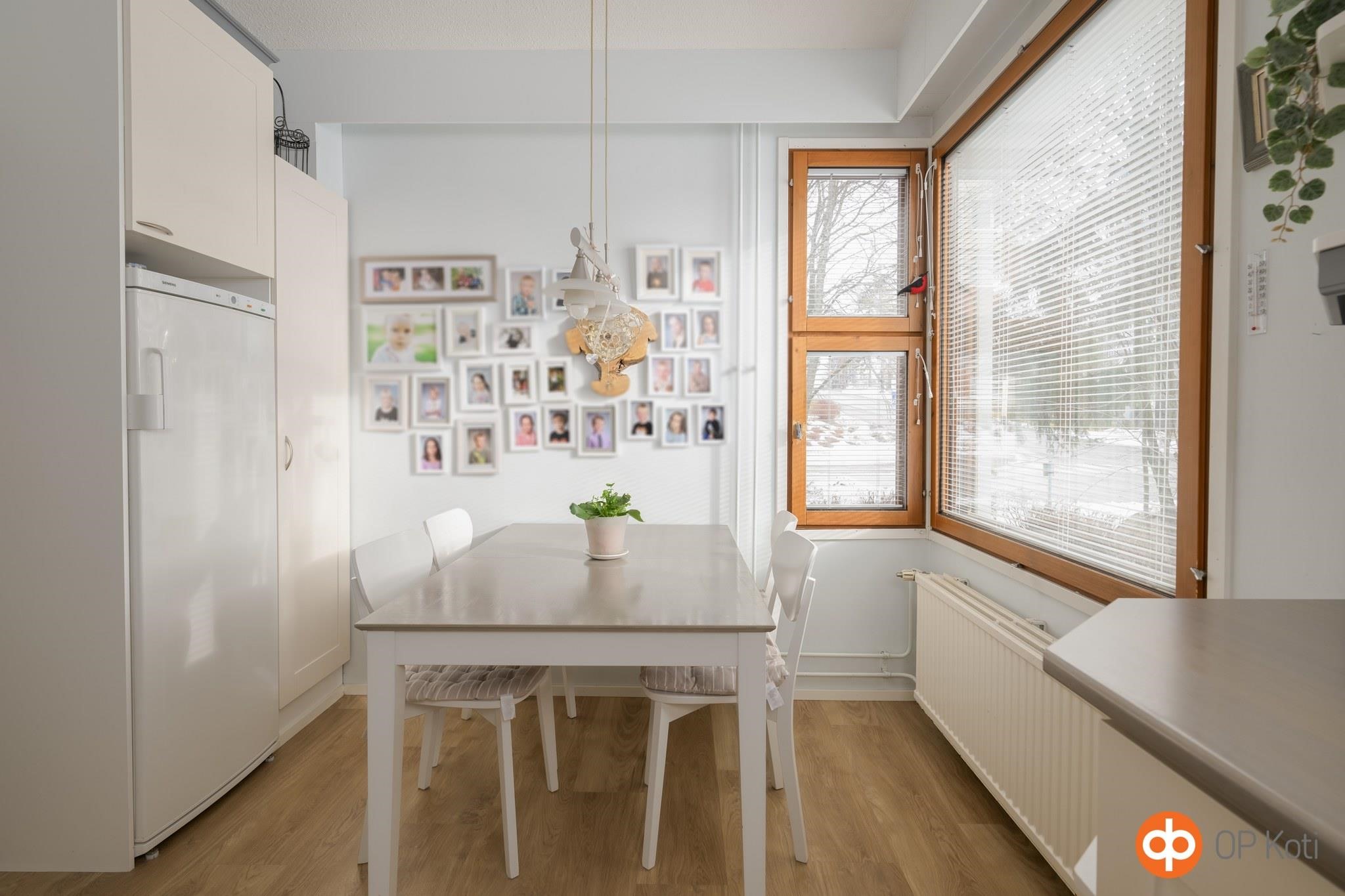 Tervetuloa tutustumaan tähän viehättävään kotiin, joka tarjoaa mahdollisuuden nauttia rauhallisesta asumisesta Palokkajärven läheisyydessä. Tämä päätyasunto yhdistää modernin mukavuuden ja luonnonläheisyyden, luoden ihanteellisen ympäristön perheellesi. Suuret ikkunat tuovat runsaasti luonnonvaloa ja tarjoavat kauniit näkymät lounaaseen, parvekkeelta pilkottaa jopa Palokkajärvi. Asunto on kooltaan 91 m² ja se on siistikuntoinen. Kodin pohjaratkaisu on suunniteltu käytännölliseksi: yläkerrasta löydät tilavan olohuoneen ja makuuhuoneen, keskikerroksesta modernin keittiön, makuuhuoneen, sekä erillisen wc:n. Alakerrassa on yksi makuuhuone, erillinen wc, sekä hiljattain remontoitu kodinhoitohuone, kylpyhuone ja sauna, mikä takaa käyttömukavuuden. Asunnosta löytyy myös parveke ja terassi, jotka tarjoavat lisätilaa ja mahdollisuuksia rentoutumiseen. Palokan alue tarjoaa erinomaiset palvelut ja liikenneyhteydet. Lähikauppa, kirjasto ja terveysasema sijaitsevat vain noin 500 metrin päässä, ja Palokan yhtenäiskoulu sekä päiväkodit ovat kävelymatkan päässä. Jyväskylän keskustaan on vain noin 7 kilometrin matka, ja paikallisliikenteen pysäkki on 350 metrin päässä, mikä tekee liikkumisesta vaivatonta. Asunto Oy Palokan Rantalehto on hyvin hoidettu yhtiö, jossa on tehty kattavasti peruskorjauksia vuosien varrella. Taloyhtiön lämmitys tapahtuu energiatehokkaalla kaukolämmöllä ja asunnossa on vesikiertoinen patterilämmitys. Koneellinen ilmanvaihto takaa miellyttävän sisäilman. Ota yhteyttä ja varaa oma esittelyaikasi, jotta pääset tutustumaan tähän upeaan kotiin paikan päällä.