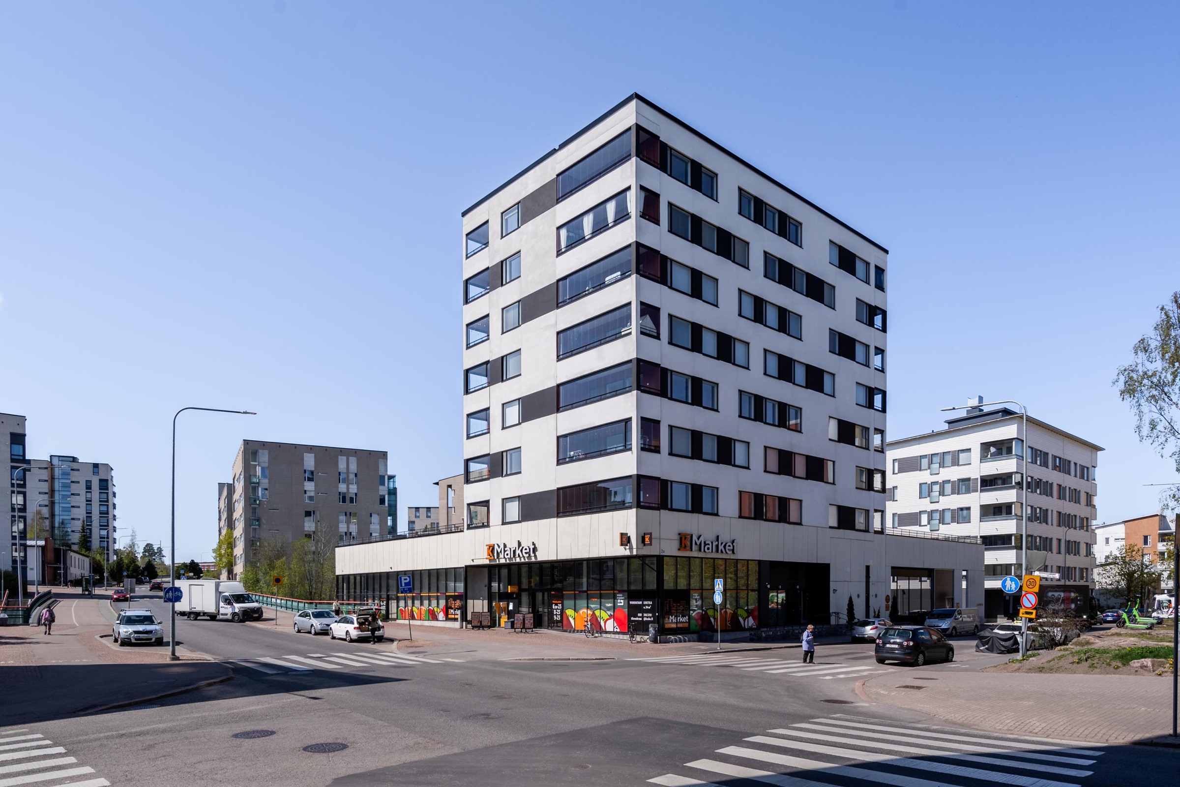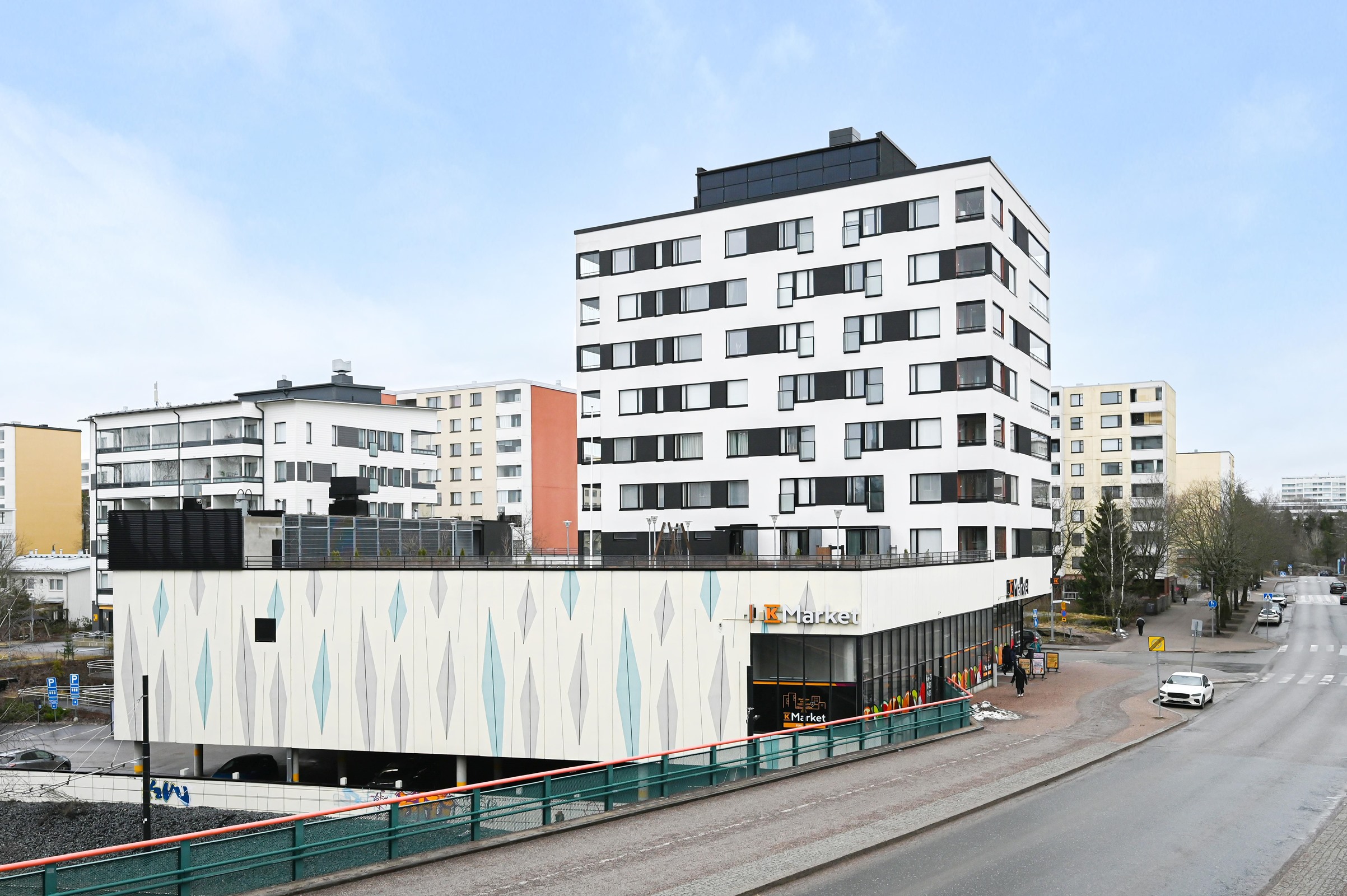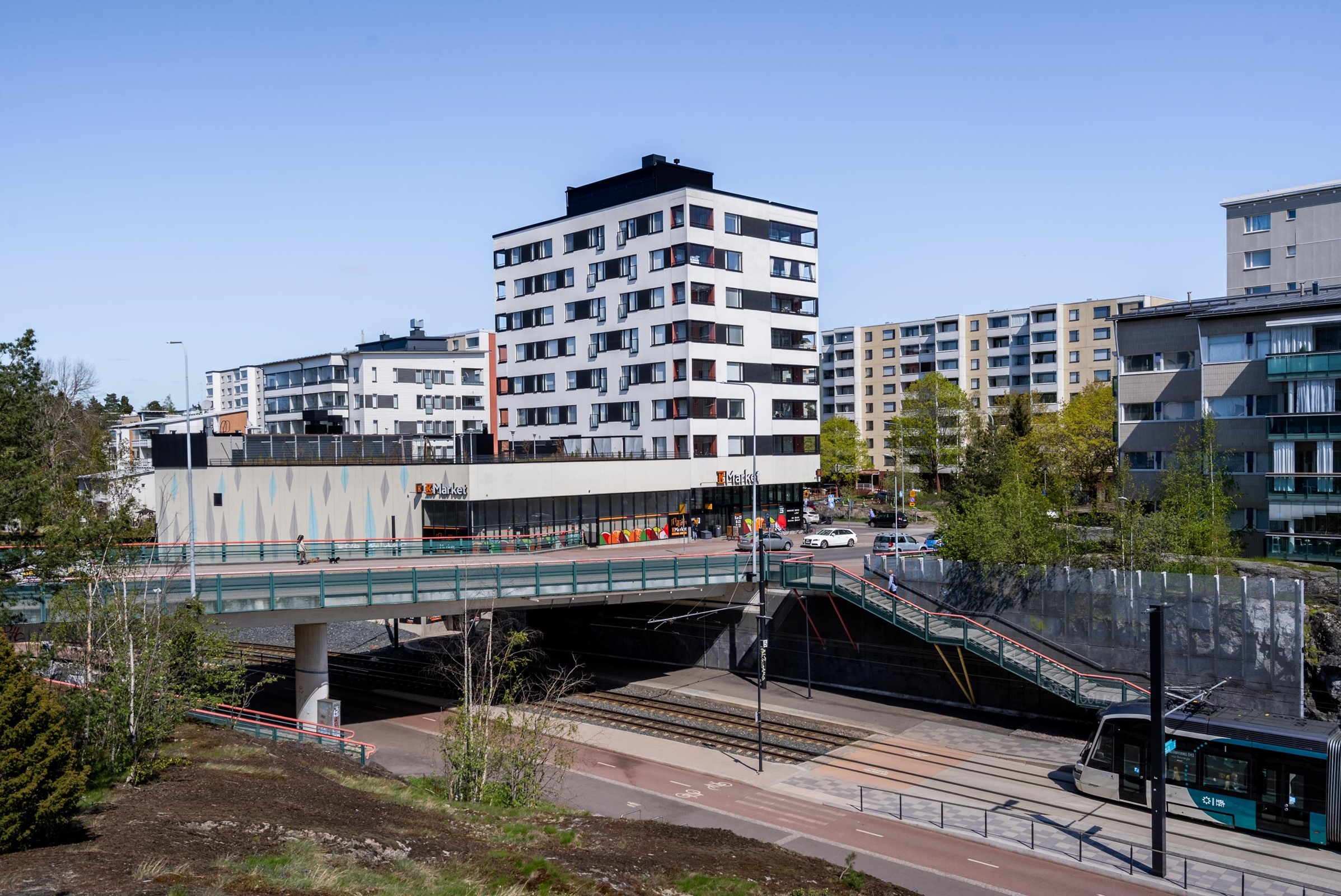 Liikenneyhteydet ovat erinomaiset -Raide-Jokerin pysäkki on aivan taloyhtiön vieressä, joten matka Itäkeskukseen ja Keilaniemeen sujuu vaivattomasti. Lähikauppa, päiväkodit ja muut palvelut sijaitsevat kävelyetäisyydellä, ja lisäksi alueen vehreät ulkoilumaastot kutsuvat liikkumaan ja rentoutumaan luonnon äärellä. Nopeat yhteydet Lahdenväylälle ja Kehä I:lle takaavat myös sujuvan liikkumisen autolla.