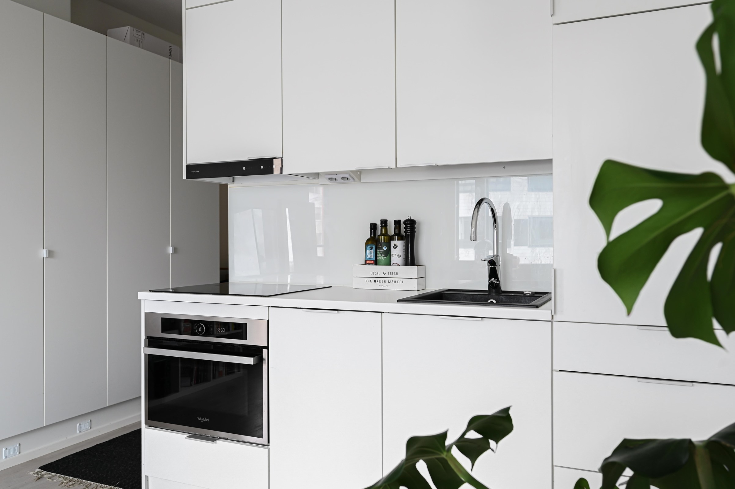 - Jenkkikaappi, lattialiesi (yhdistelmäuuni), liesitaso (induktioliesitaso), liesituuletin, astianpesukone, kaapistot, kiinteät valaisimet.