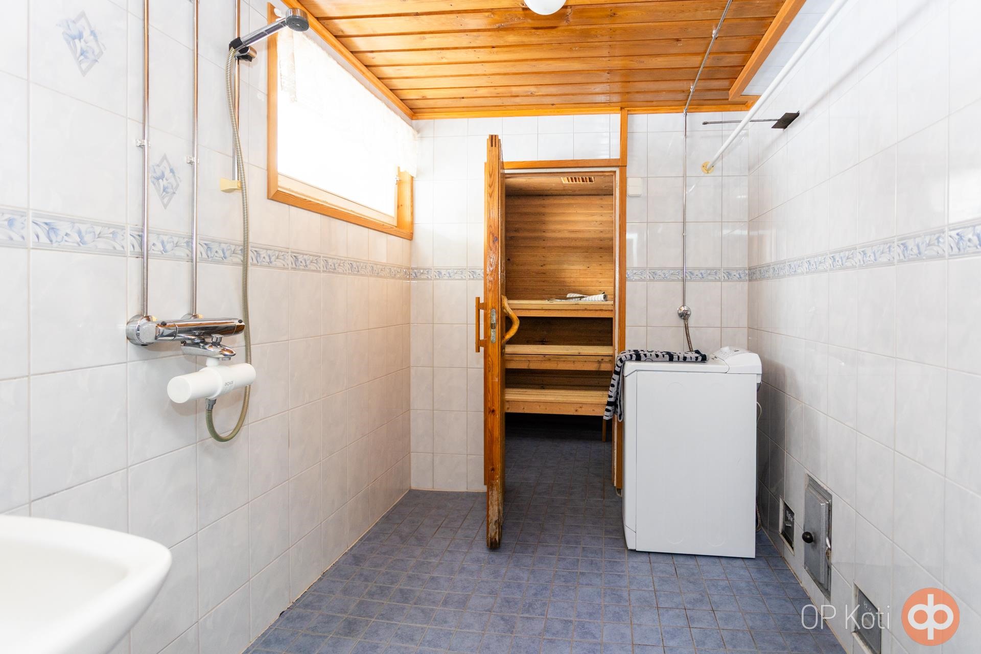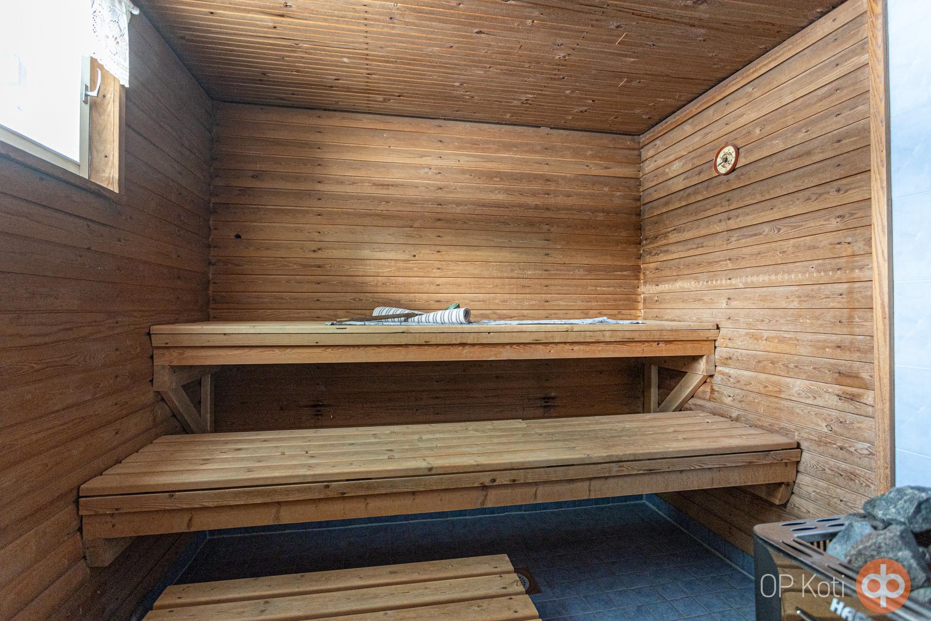 - Sauna, puukiuas, kylpyhuone, erillinen wc, suihku, peilikaappi, allaskaappi, pesukoneliitäntä, lattialämmitys (ph+wc+s), kiinteät valaisimet.