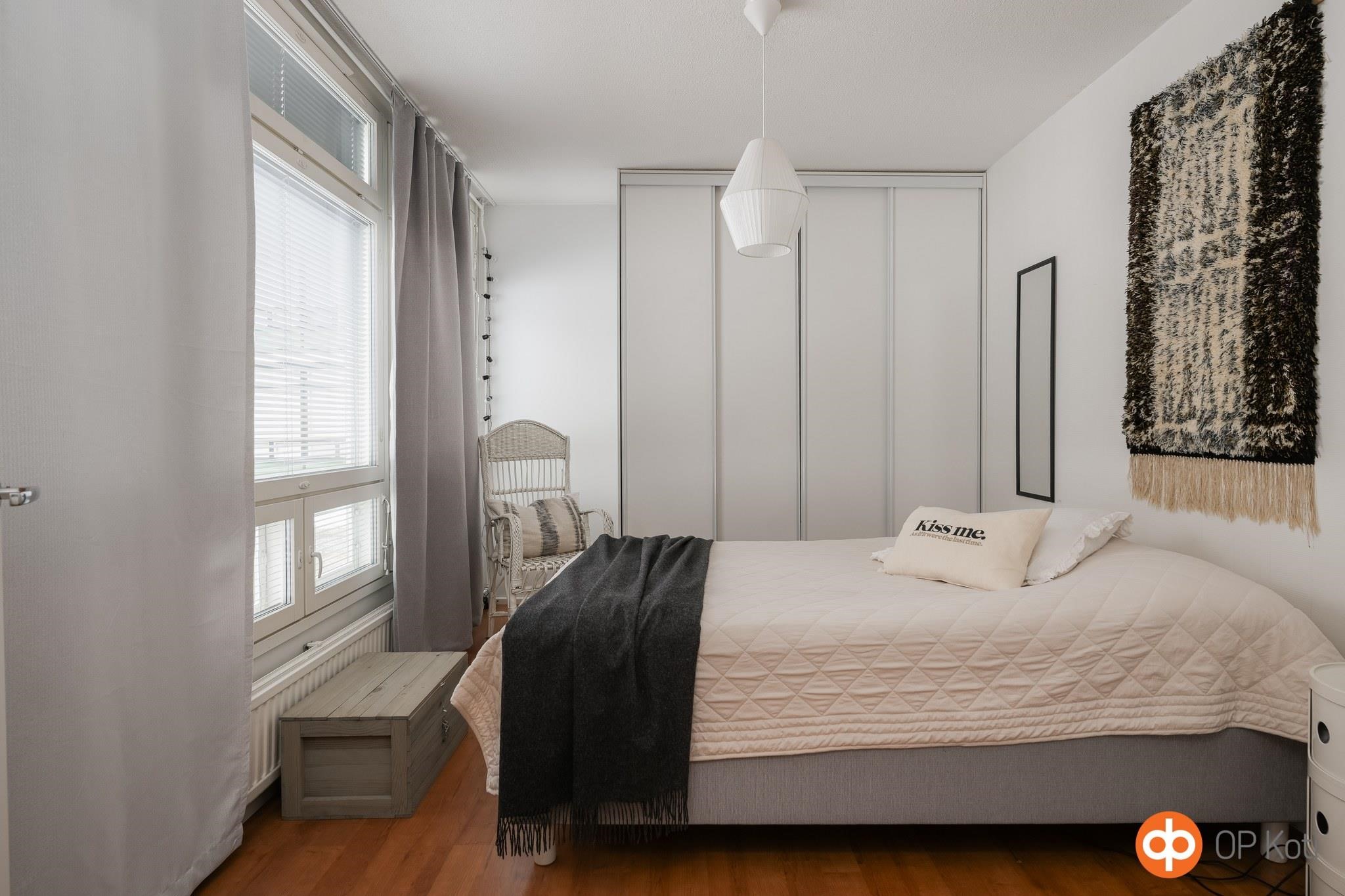 Asunnon sydän on valoisa ja avara olohuone, joka yhdistyy sujuvasti keittiöön. Keittiössä on hyvin kaappi- ja laskutilaa, mikä helpottaa arjen sujuvuutta. Reilunkokoisiin makuuhuoneisiin mahtuu sängyn lisäksi myös muuta kalustusta, ja säilytystilaa löytyy vaatehuoneen ja kaapistojen ansiosta runsaasti. Kylpyhuone, sauna ja WC on remontoitu 2000-luvulla, lisäksi kodin pintoja päivitetty vuosien aikana.