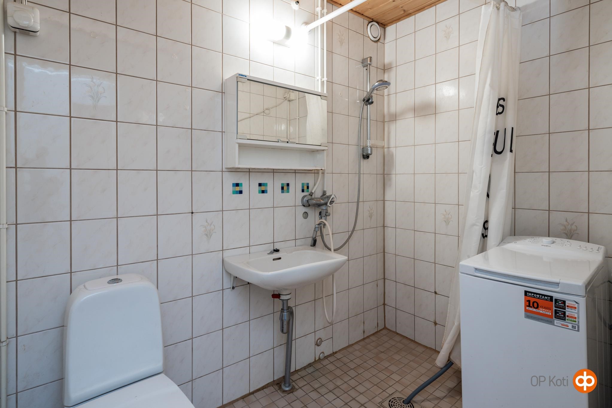 - Kylpyhuone /Wc, suihku, peilikaappi, pesukoneliitäntä, kiinteät valaisimet.