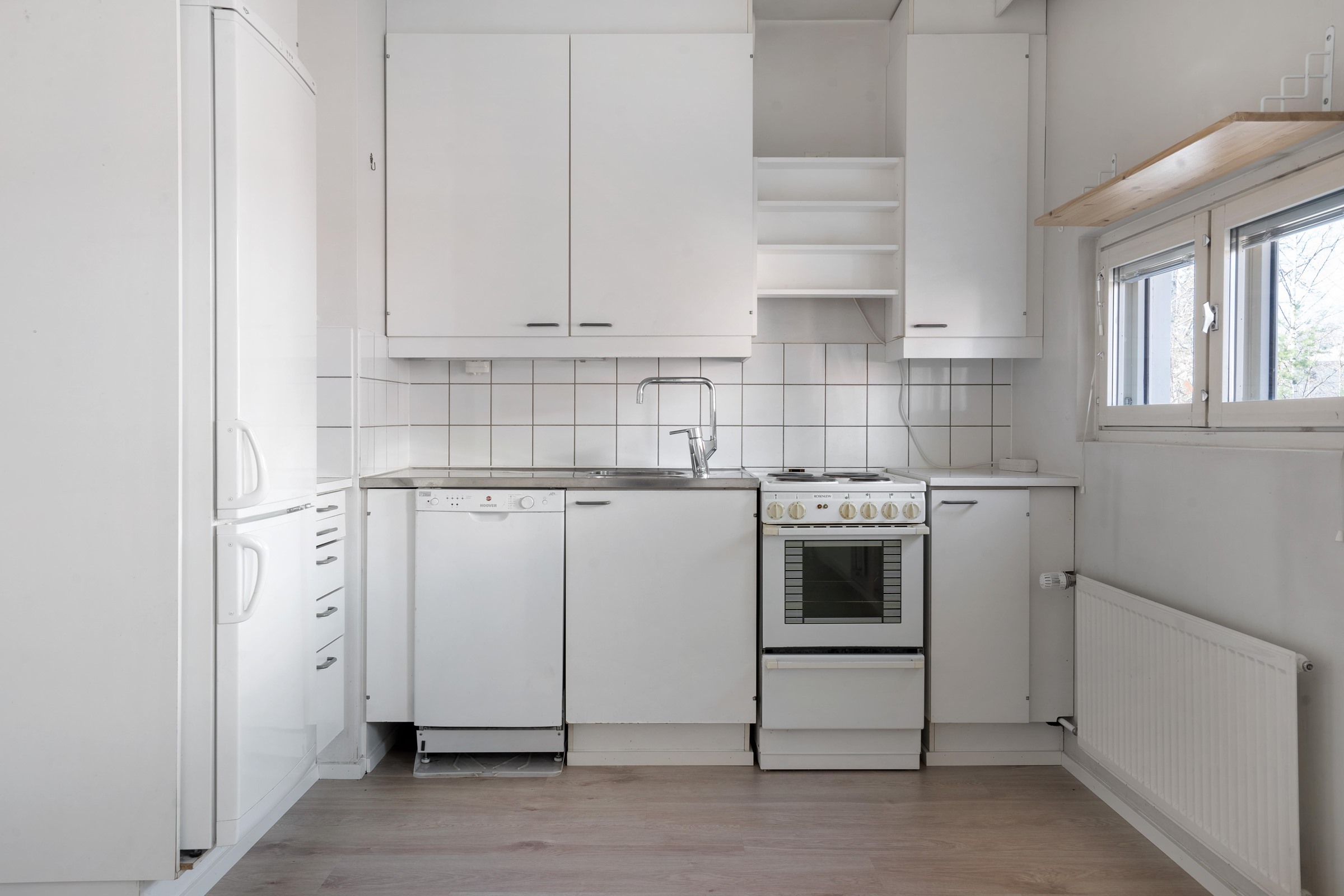 - Jääkaappipakastin, sähköliesi, astianpesukone, kaapistot.
