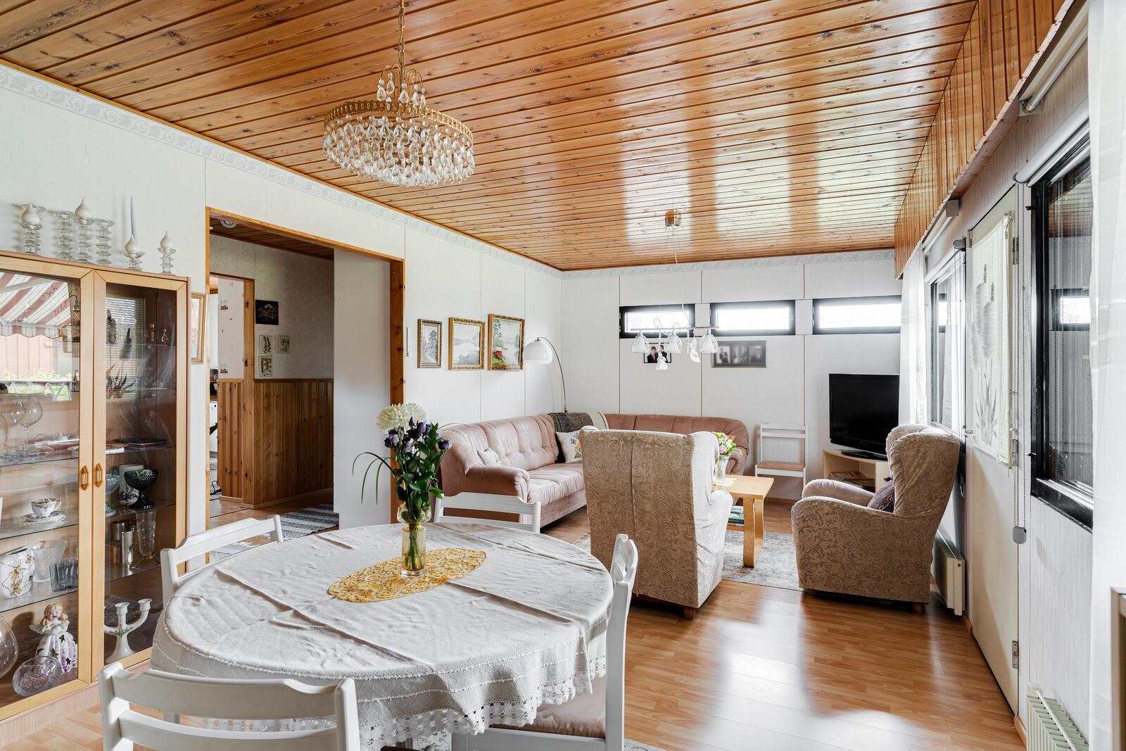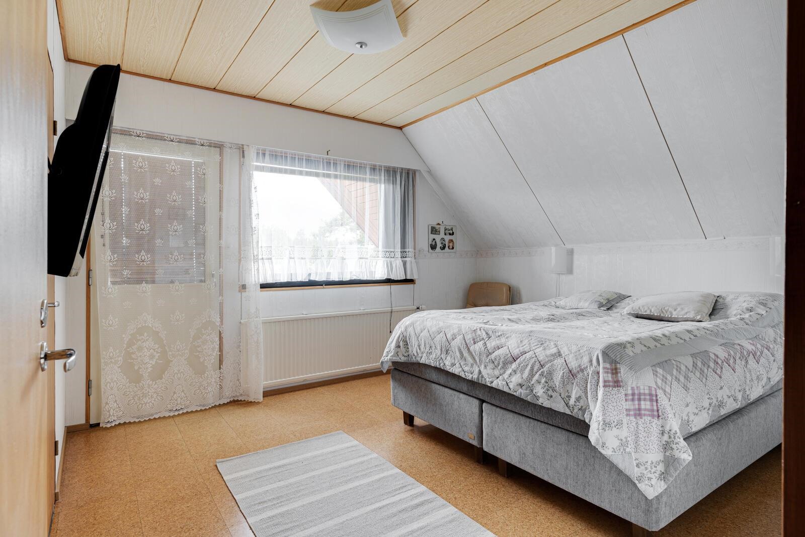 Alakerrassa avautuu iso ja valoisa olohuone, joka kutsuu rentoutumaan varaavan takan lämpöön. Yläkerrassa sijaitsevat kaksi tilavaa makuuhuonetta, joista toinen on helposti jaettavissa kahdeksi erilliseksi huoneeksi, luoden näin mahdollisuuden kolmelle makuuhuoneelle. Lisäksi yläkerrassa on kaksi kätevää vaatehuonetta, toinen wc sekä runsaasti ullakkotilaa, joka tarjoaa monipuolisia säilytysmahdollisuuksia.
