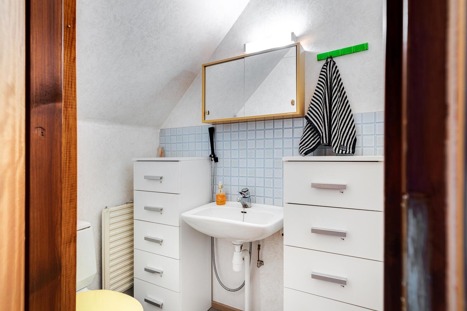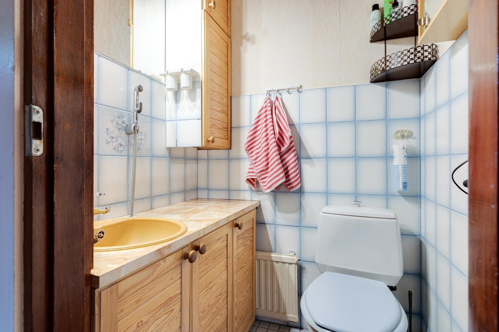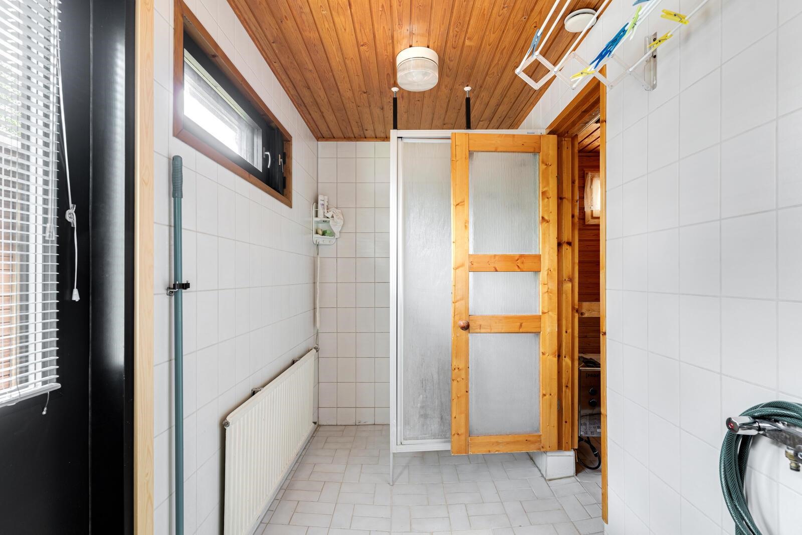 - Sauna, sähkökiuas, erillinen wc 2 kpl, suihkukaappi, peilikaappi, pesukoneliitäntä, lattialämmitys pesuhuoneessa vesikiertoinen.