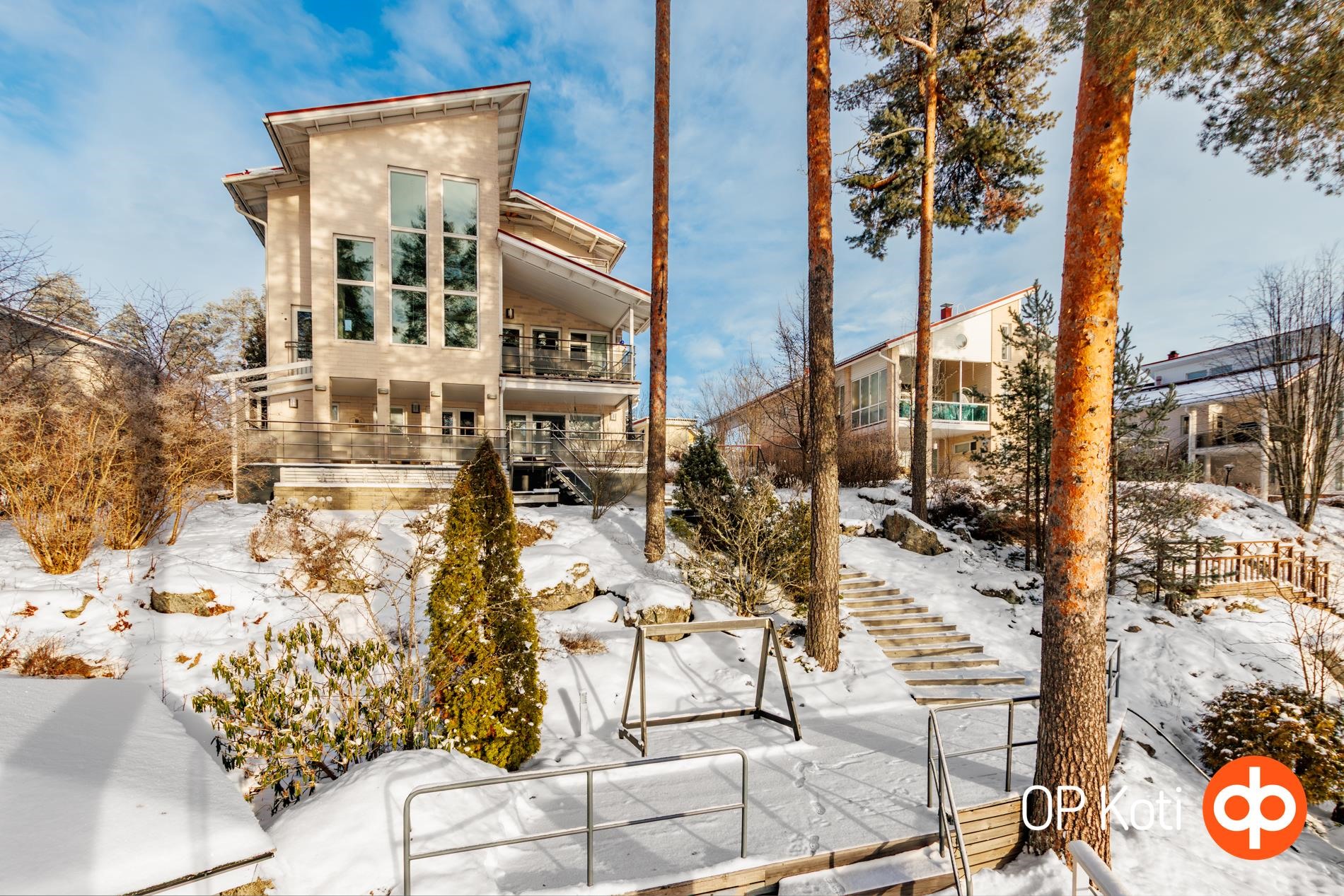 Ammattilaisen kädenjälki näkyy kodin ajattomissa ja klassisissa sisustusratkaisuissa. Ruokailu- ja oleskelutilan vaikuttava huonekorkeus tuo tilaan arvokkuutta, joka yhdistyy kodikkuuteen toimivan akustiikan ansiosta. Makuuhuoneiksi soveltuvia tiloja on runsaasti. Takkahuone taipuu tarvittaessa esimerkiksi kotistudioksi tai toimistotilaksi erillisellä sisäänkäynnillä. Talossa on runsaasti varastotilaa ja etupihalla on tallit kahdelle autolle. Kodista on käynti aurinkoiselle näköalaparvekkeelle.