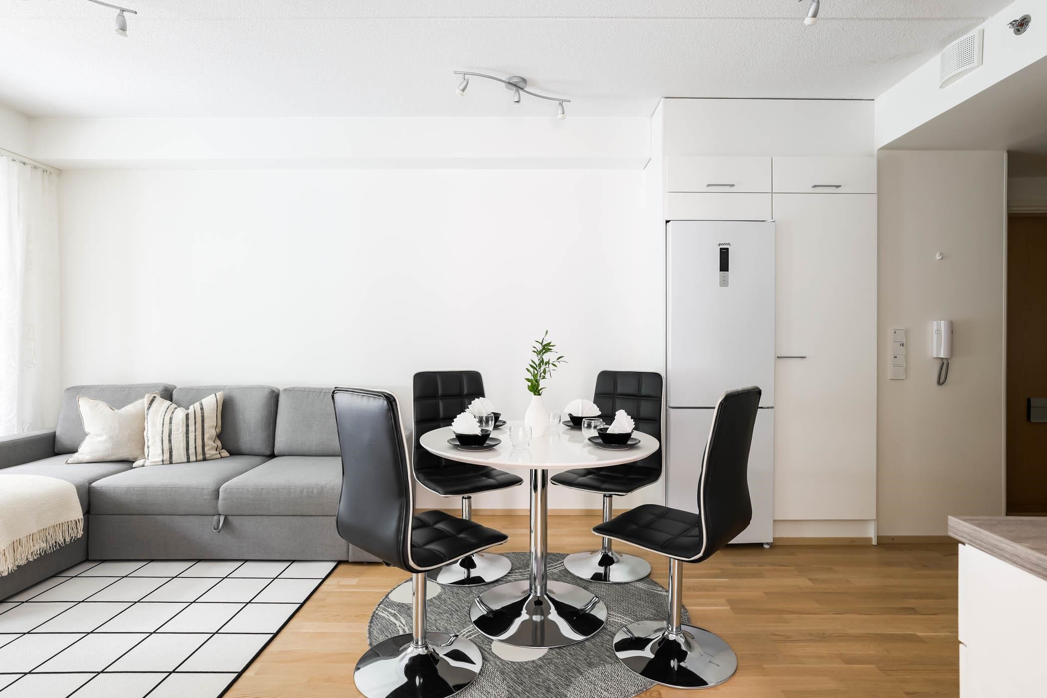 Huoneiston erittäin toimiva 55 m²:n pohjaratkaisu on hyvin suunniteltu, jossa jokainen neliö palvelee tarkoitustaan. Keittiön varustukseen kuuluu jääkaappipakastin, keraaminen liesi, astianpesukone sekä käytännölliset kaapistot. Kodin lattiat ovat tammiparkettia ja seinät ovat maalatut. Asumismukavuutta lisää pesuhuoneen lattialämmitys. Kaapeli-TV ja sälekaihtimet täydentävät asunnon varustelua. Kaleva tarjoaa erinomaiset palvelut ja liikenneyhteydet. S-Market ja Prismakeskus ovat vain kivenheiton päässä, joten arjen tarpeet hoituvat vaivattomasti. Ratikka ja bussipysäkki sijaitsevat 200 metrin etäisyydellä, mikä tekee liikkumisesta sujuvaa. Lähiympäristön vehreät puistot kutsuvat ulkoilemaan.
