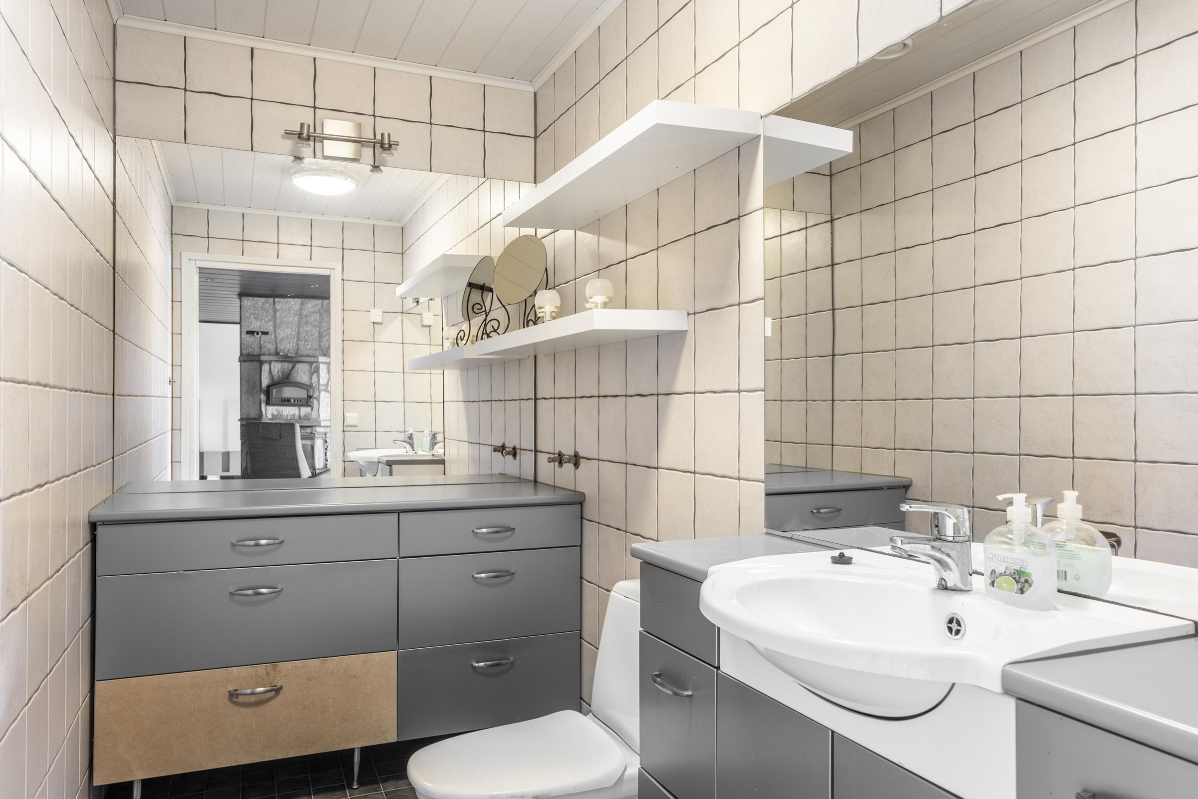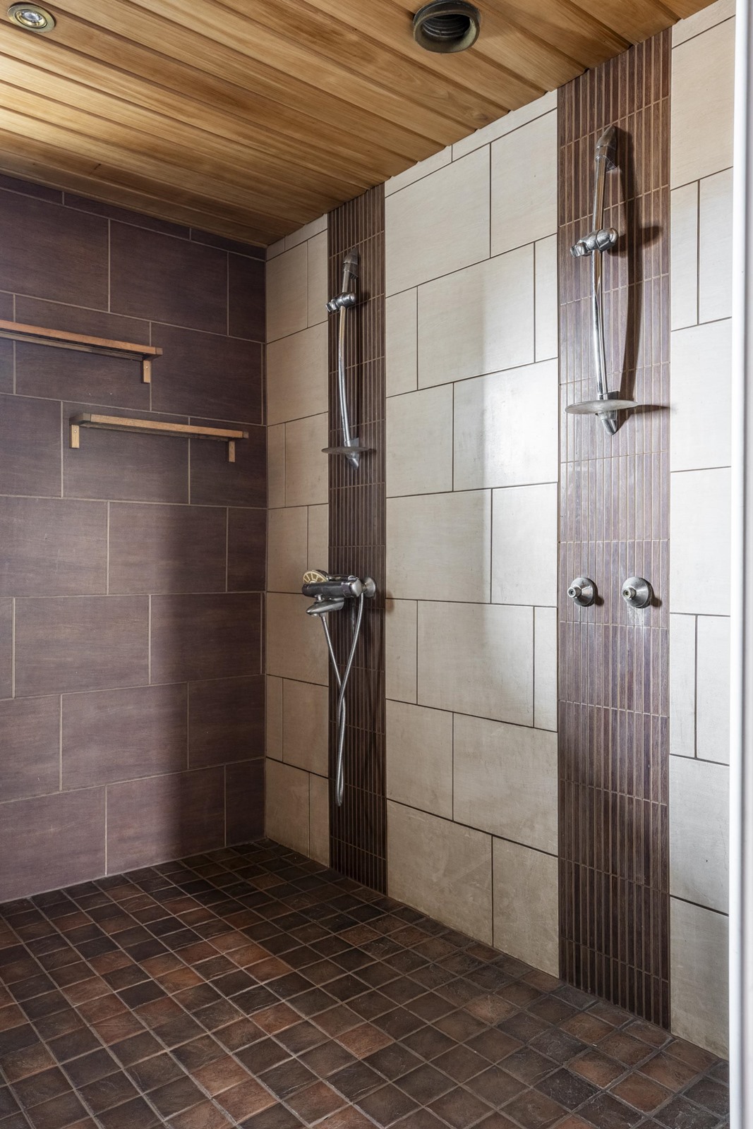 - Sauna, sähkökiuas ja puukiuas, kylpyhuone, suihku, erillinen wc yläkerrassa ja alakerrassa, kaapit, allaskaappi, pesukoneliitäntä kodinhoitohuoneessa, lattialämmitys, kiinteät valaisimet. Alakerrassa tilava spa -osasto, jossa tunnelmallinen tilava sauna.