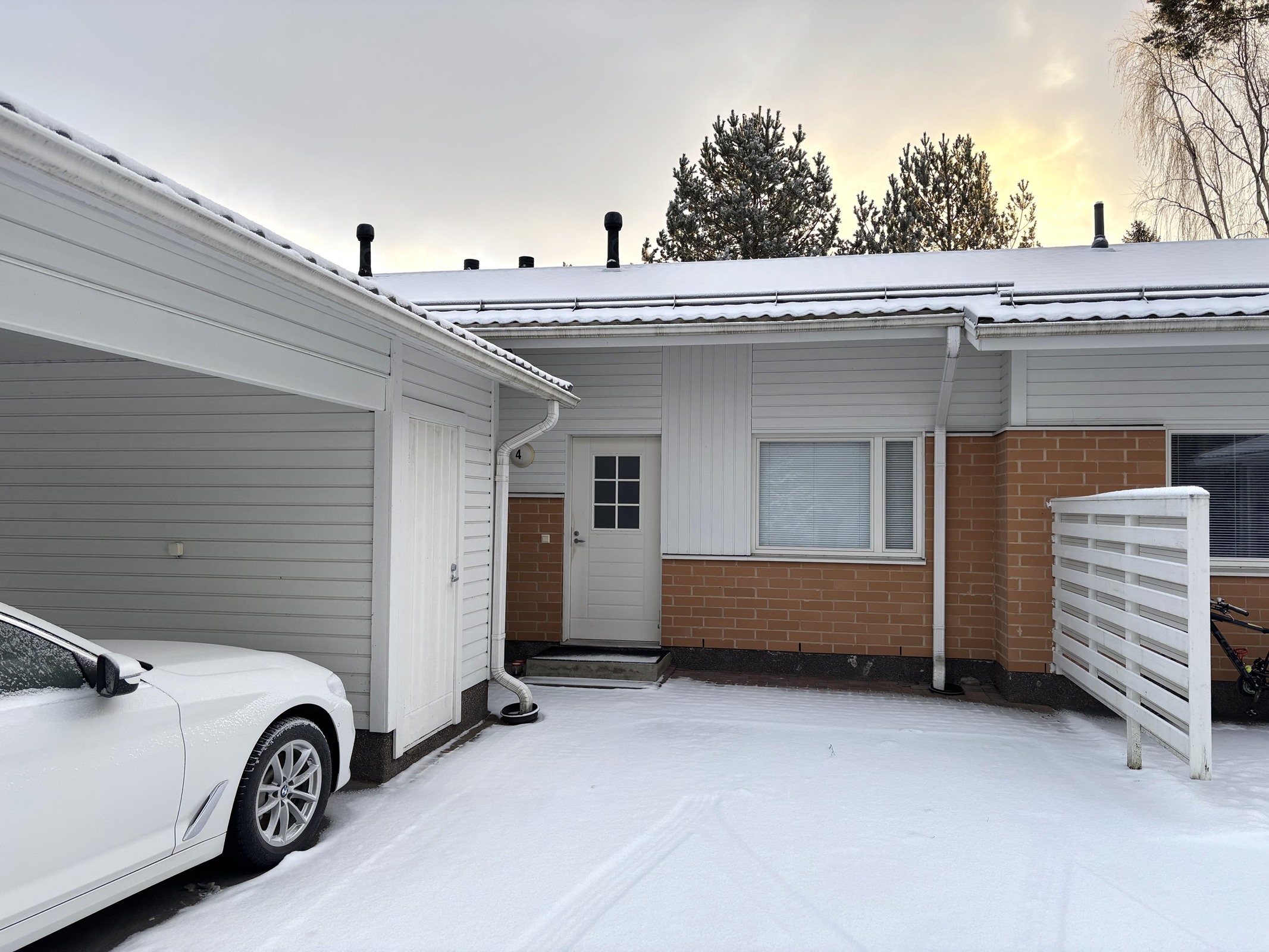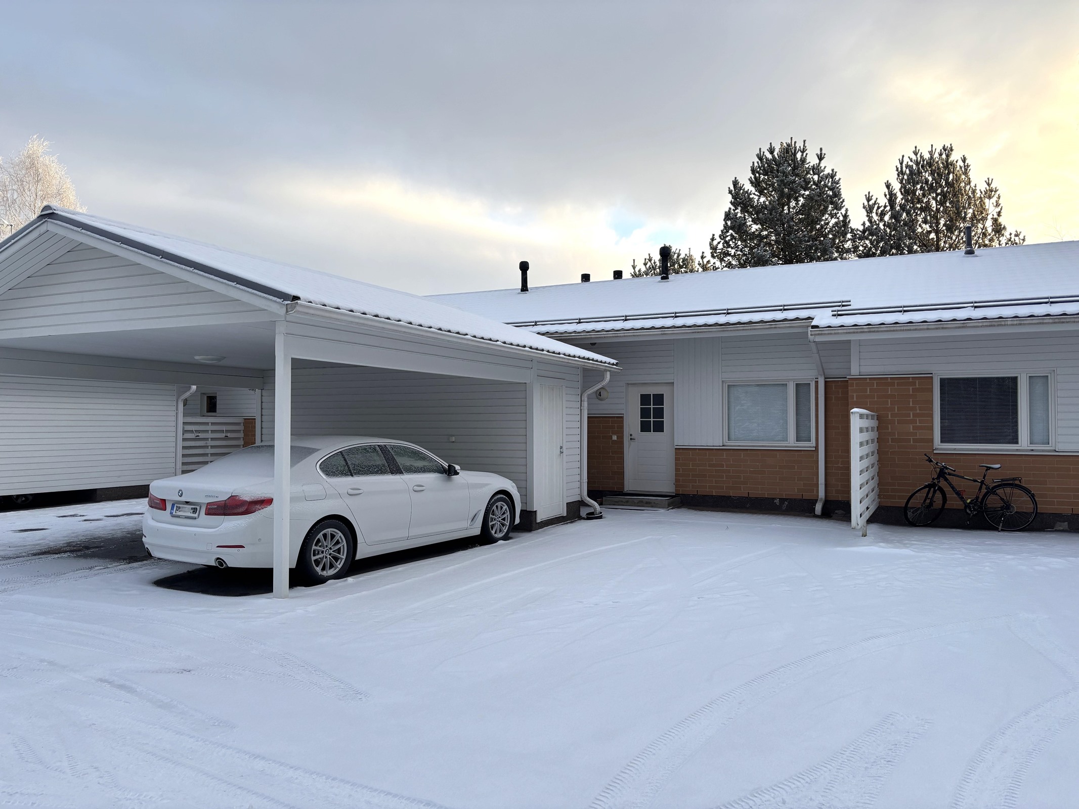 Asunnolle kuuluu autokatospaikka sisäänkäynnin edessä.