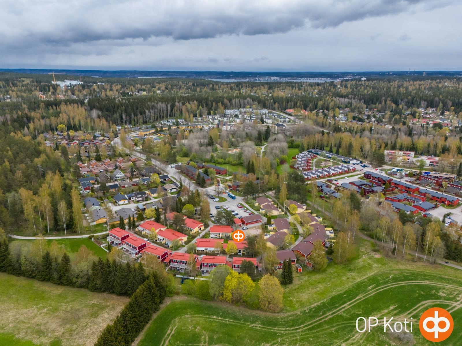 Palvelut: Ruokakauppa 2 km. Koulut: 1,4 km. Päiväkoti: 800 m. Liikenneyhteydet: Bussipysäkki 50 m