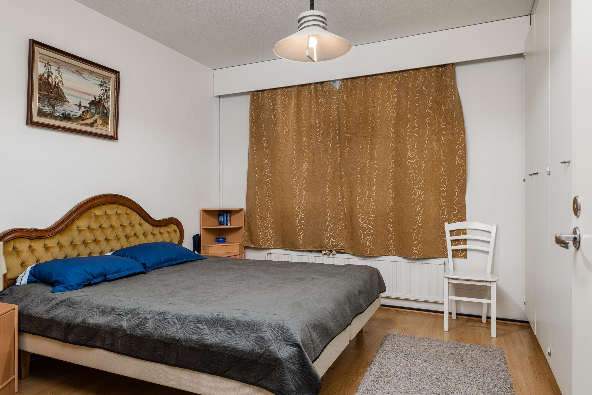 - Kylpyhuone, suihku, peilikaappi, pesukoneliitäntä, kiinteät valaisimet.