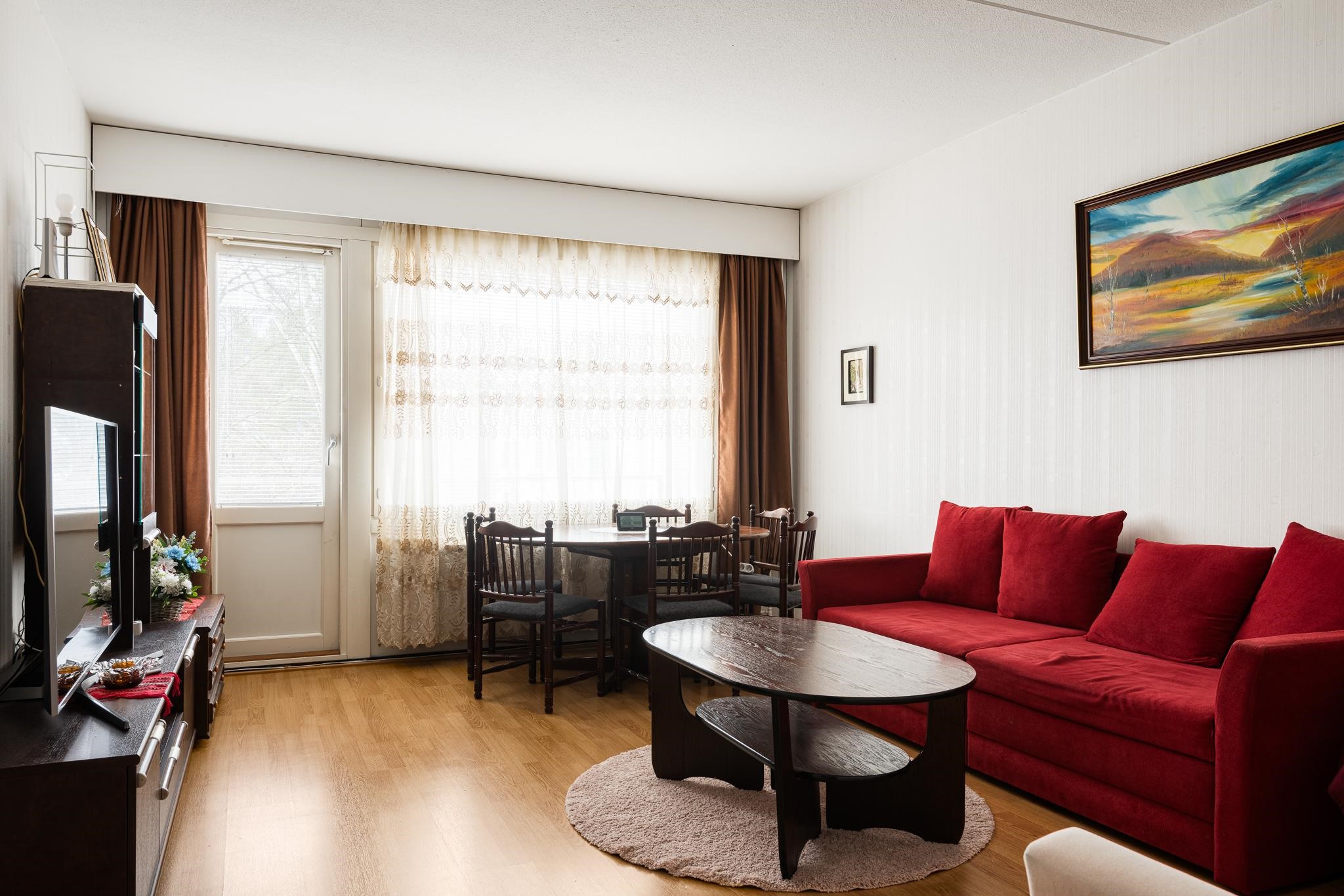 Tilava parvekkeellinen asunto talon toisessa kerroksessa.