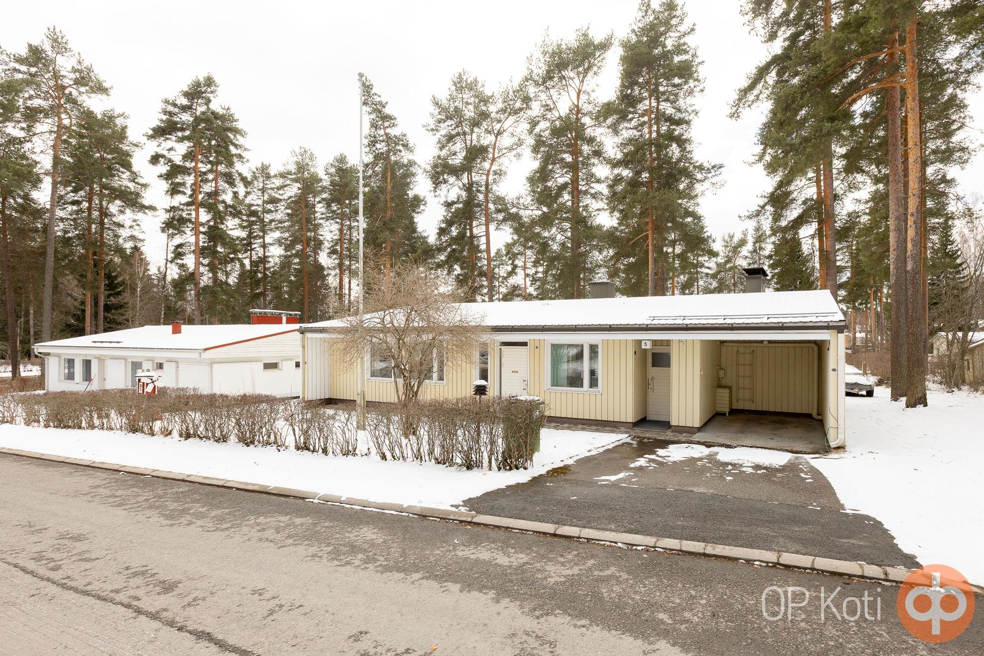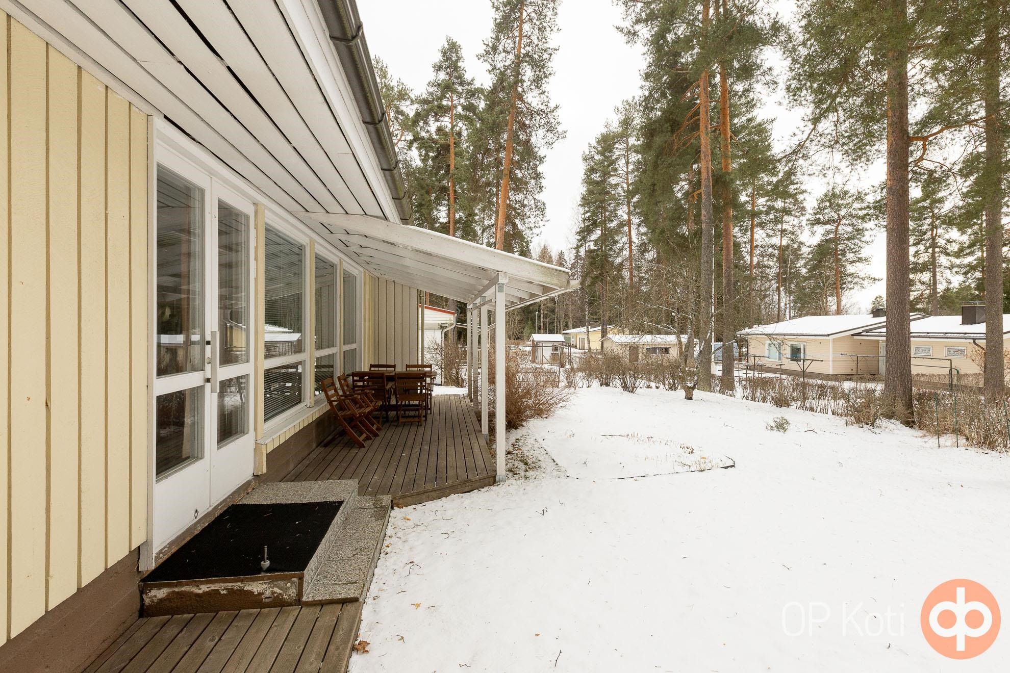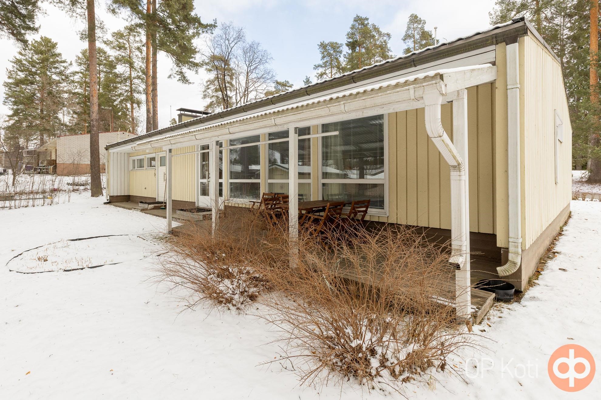 Tämä vuonna 1966 valmistunut koti on avara ja tilava sekä muutto- ja käyttövalmis toiminnoiltaan, mikäli ei ensin koe tarpeelliseksi tehdä remonttia. Isot ikkunat ja ovi olohuoneesta takapihalle ja terassille. Myös saunatiloista pääsee suoraan vilvoittelemaan katetulle terassille. Etupihan puolella autokatos, suojaamassa autoa talven lumipyryiltä.