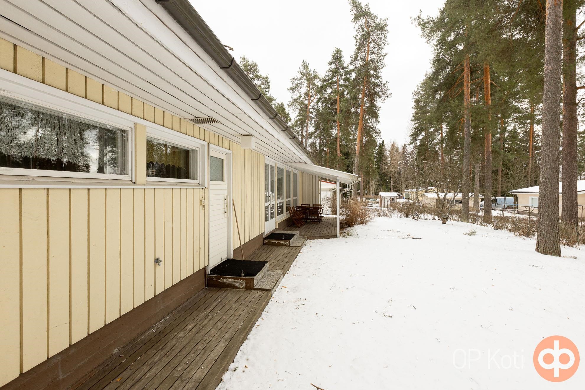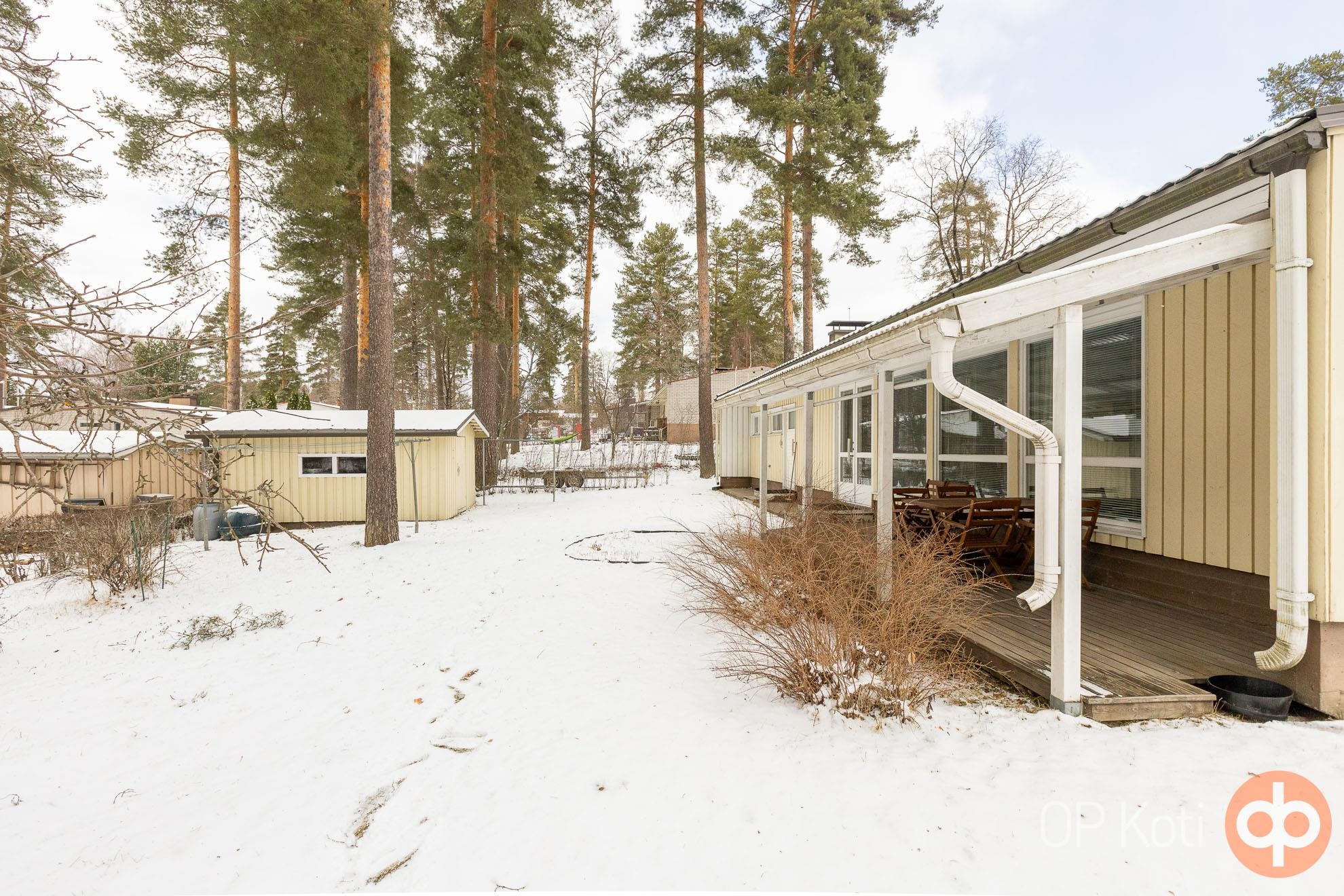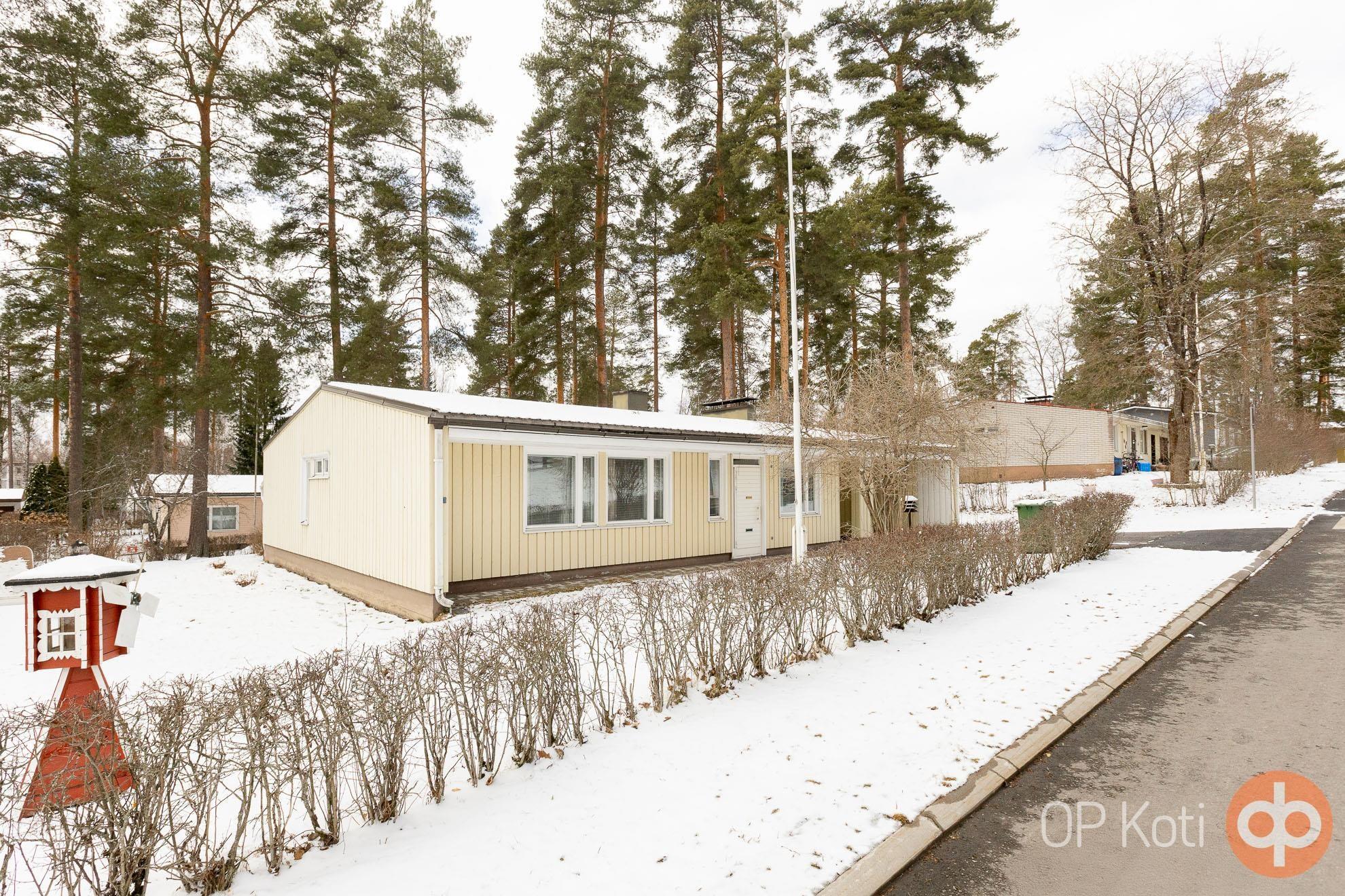 Tämä vuonna 1966 valmistunut koti on avara ja tilava sekä muutto- ja käyttövalmis toiminnoiltaan, mikäli ei ensin koe tarpeelliseksi tehdä remonttia. Isot ikkunat ja ovi olohuoneesta takapihalle ja terassille. Myös saunatiloista pääsee suoraan vilvoittelemaan katetulle terassille. Etupihan puolella autokatos, suojaamassa autoa talven lumipyryiltä.