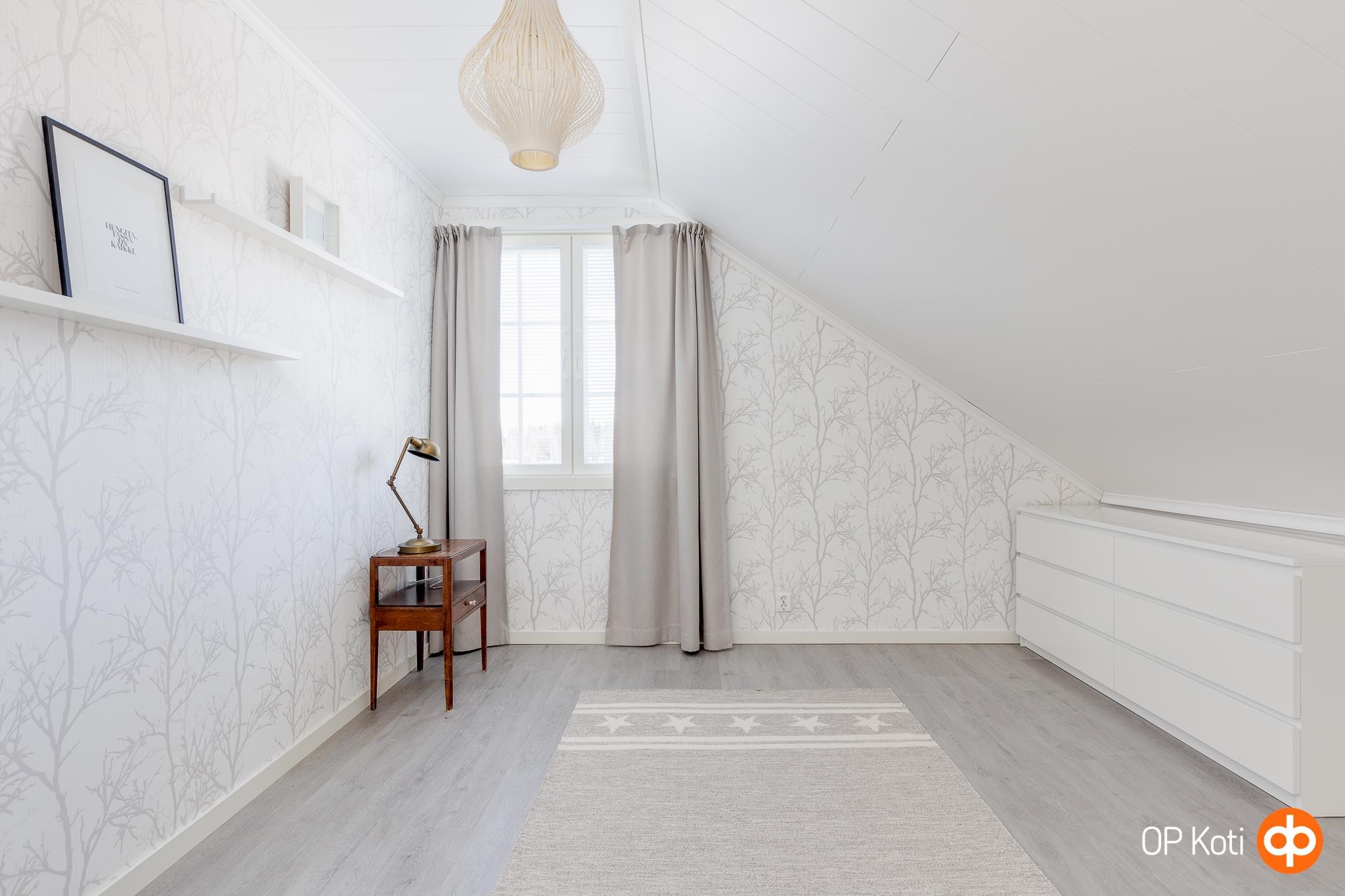 - Keittiö: Laatta, maali/välitilalaatta. Olohuone: Tammiparketti, maali. Makuuhuone 1: Laatta, maali. Makuuhuone 2: Laminaatti, tapetti. Makuuhuone 3: Laminaatti, tapetti/maali. Kodinhoitohuone: Laatta, maali. Sauna: Laatta, paneeli. Kylpyhuone: Laatta, laatta. Eteinen: Laatta, maali. Wc: Laatta, laatta. Makuuhuone 4: Laminaatti, tapetti/maali. Yläkerran aula: Laminaatti, tapetti. Wc 2: Laatta, laatta.