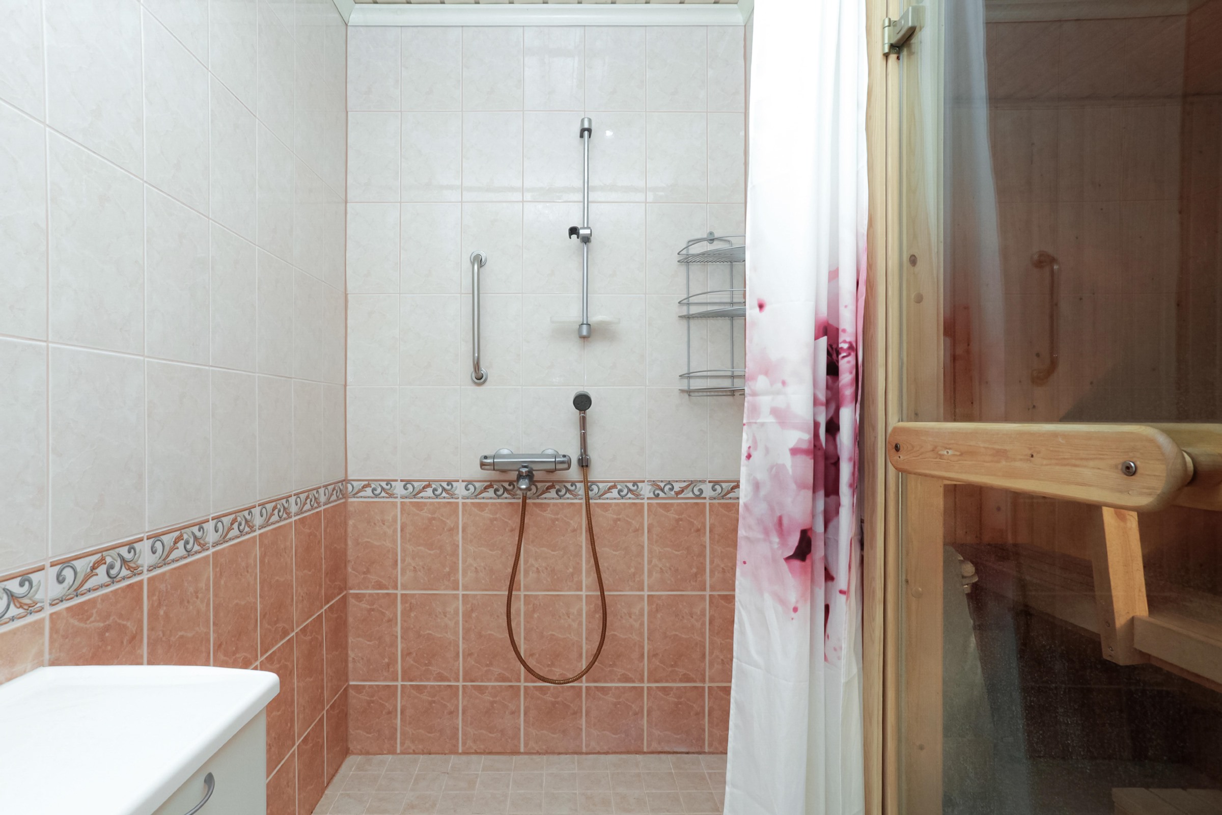 - Sauna, sähkökiuas, suihku, peilit, allaskaappi, pesukoneliitäntä.