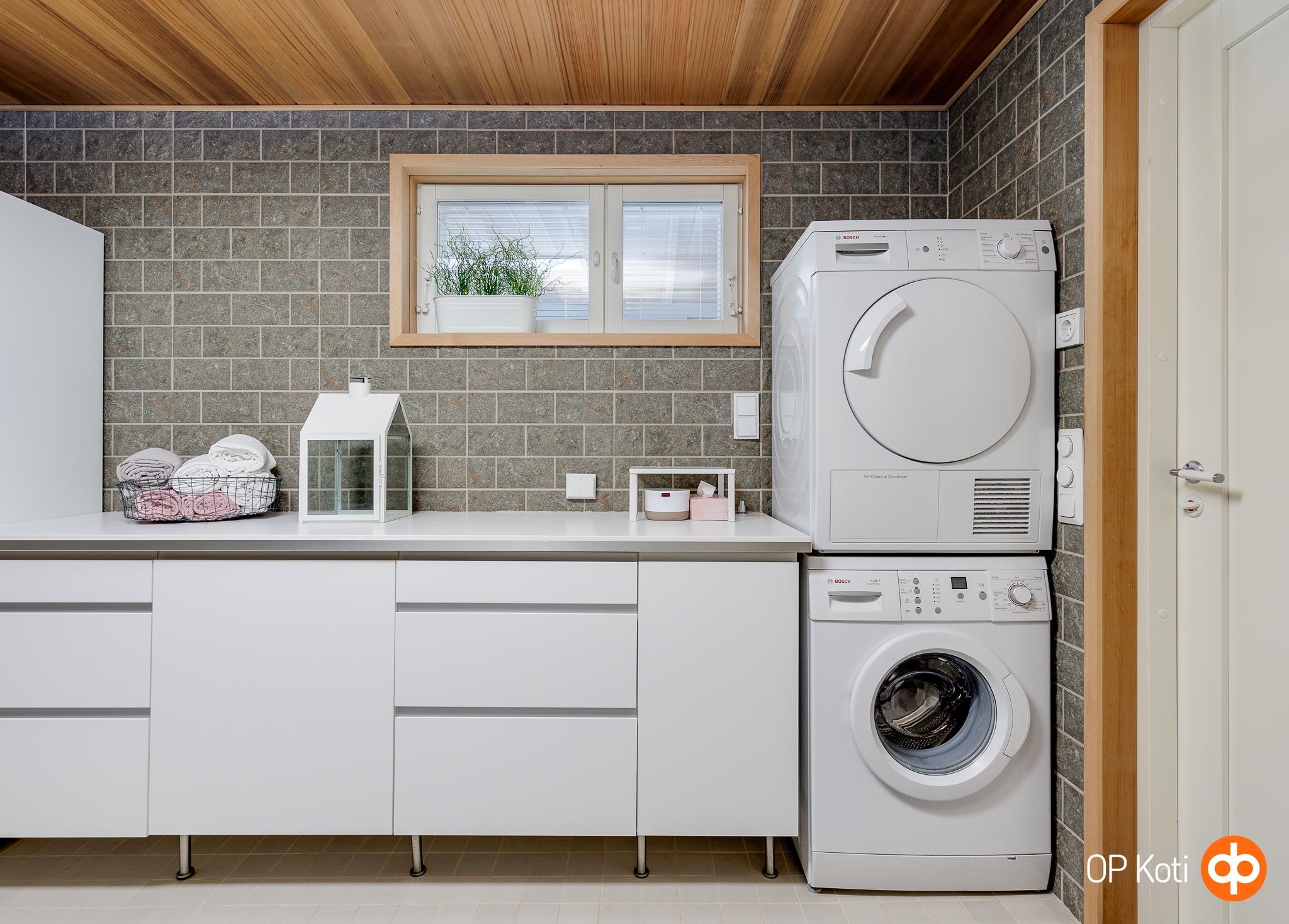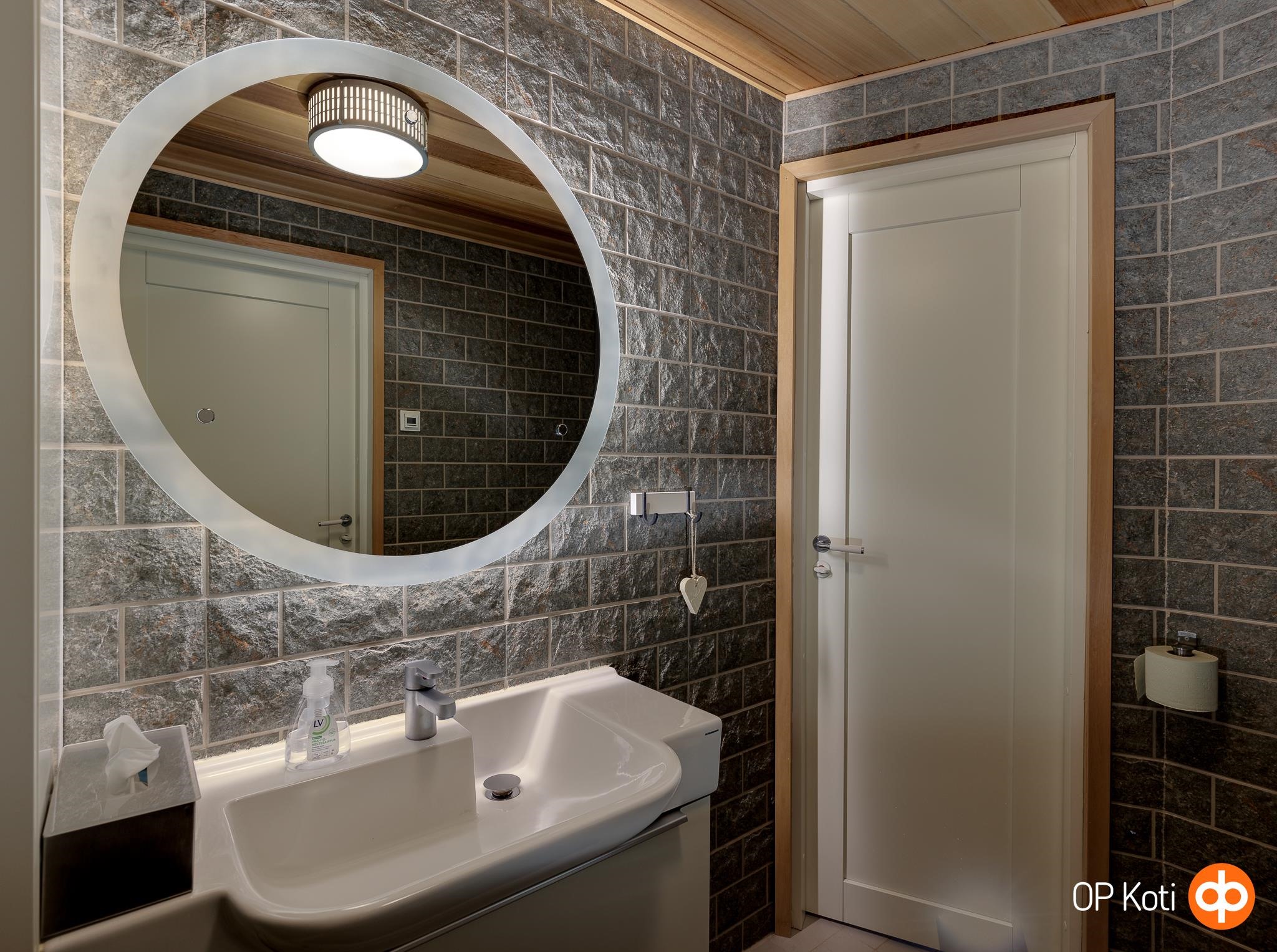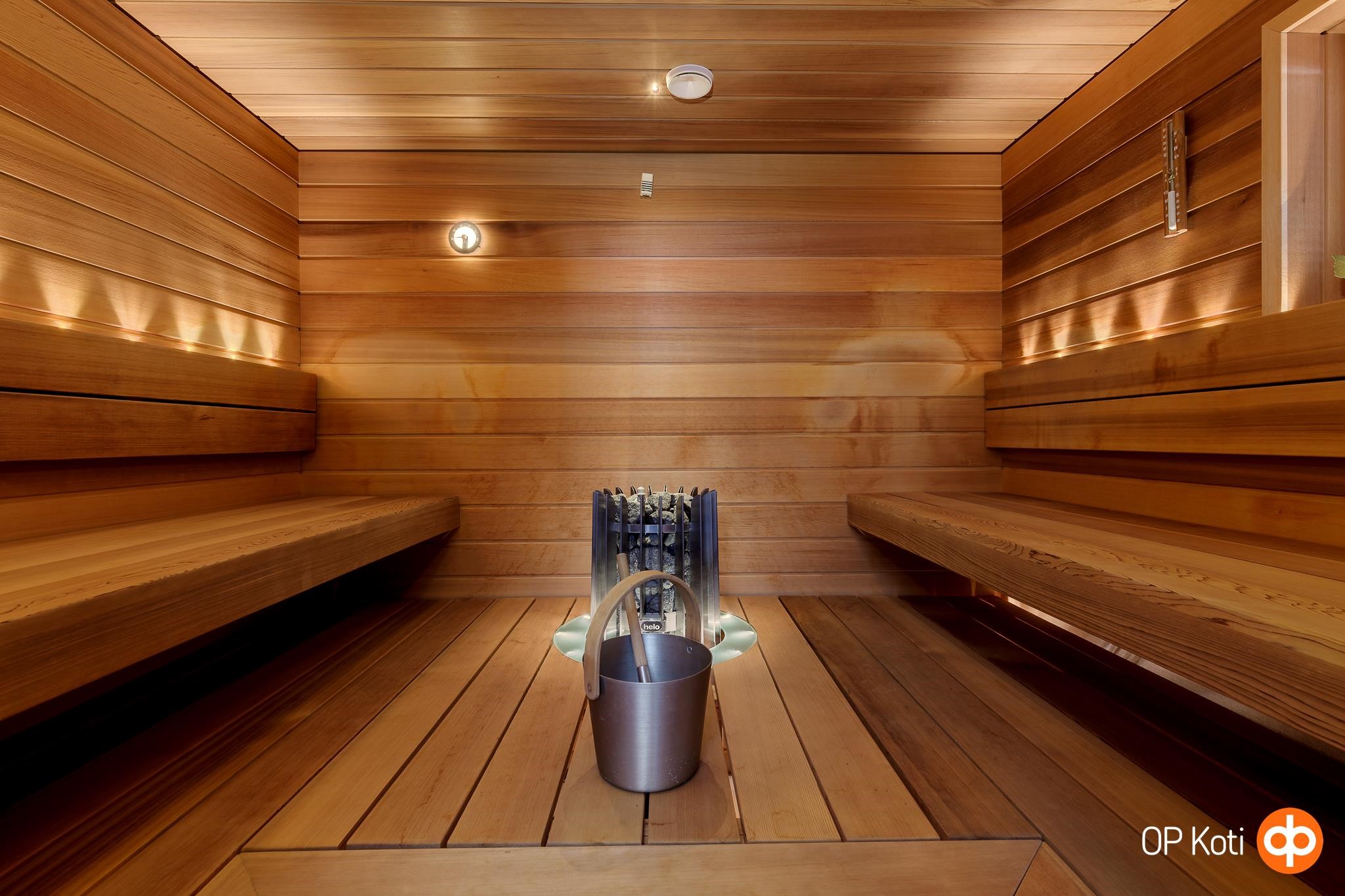 - Sauna, sähkökiuas, kylpyhuone, erillinen wc, suihkuseinä, peilit, peilikaappi, kaapit, allaskaappi, pesukoneliitäntä, lattialämmitys (alakerrassa, yläkerrassa patterit), kiinteät valaisimet.