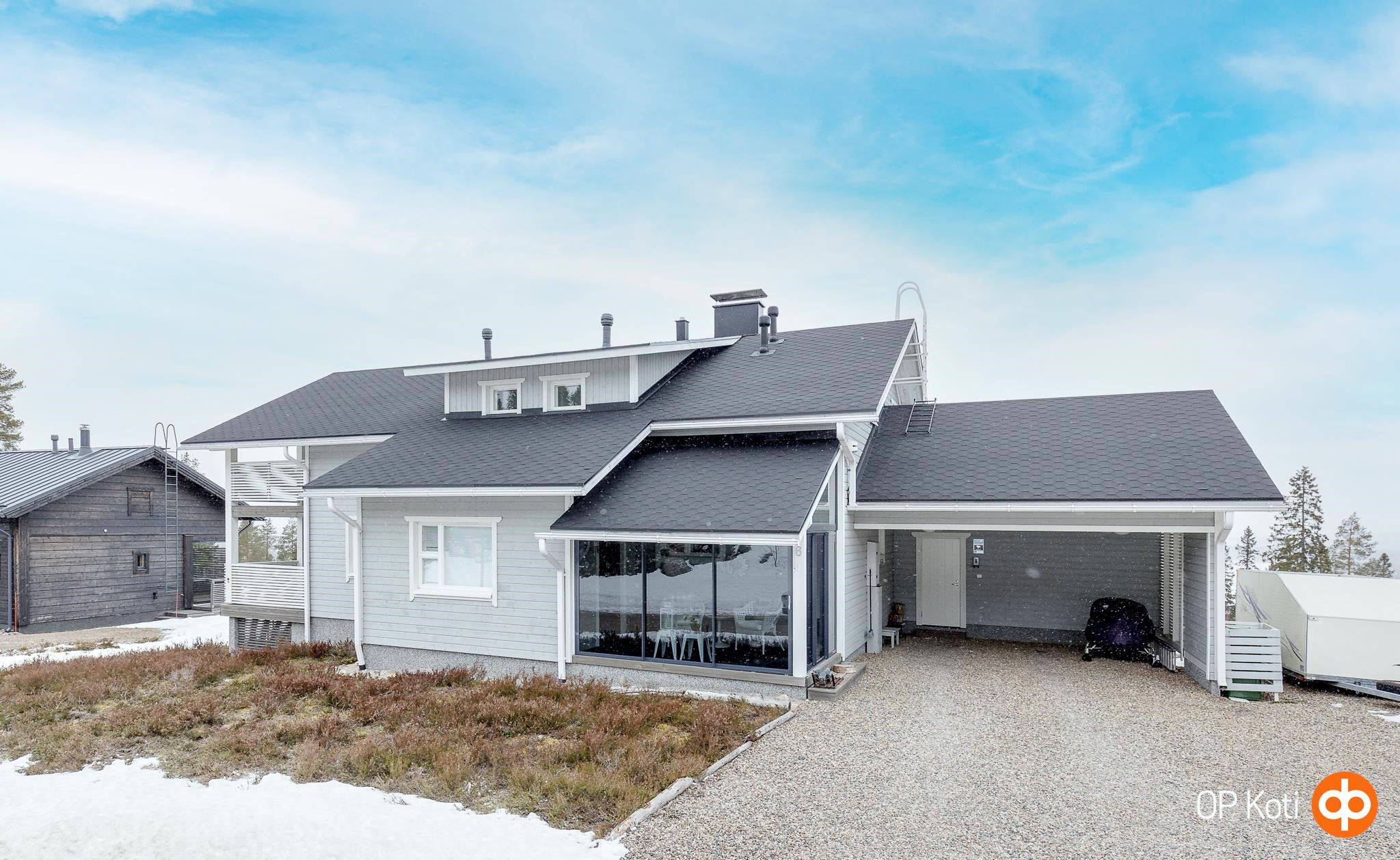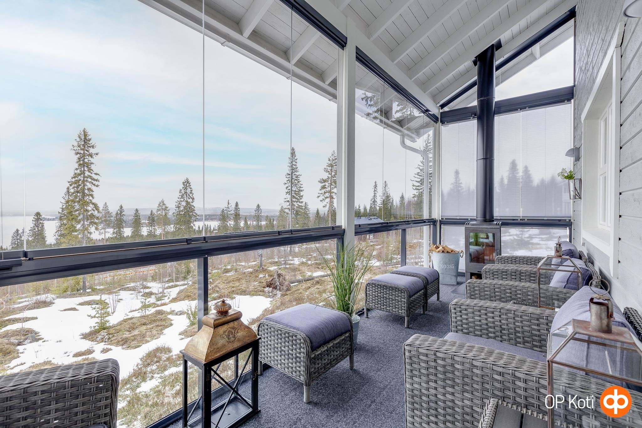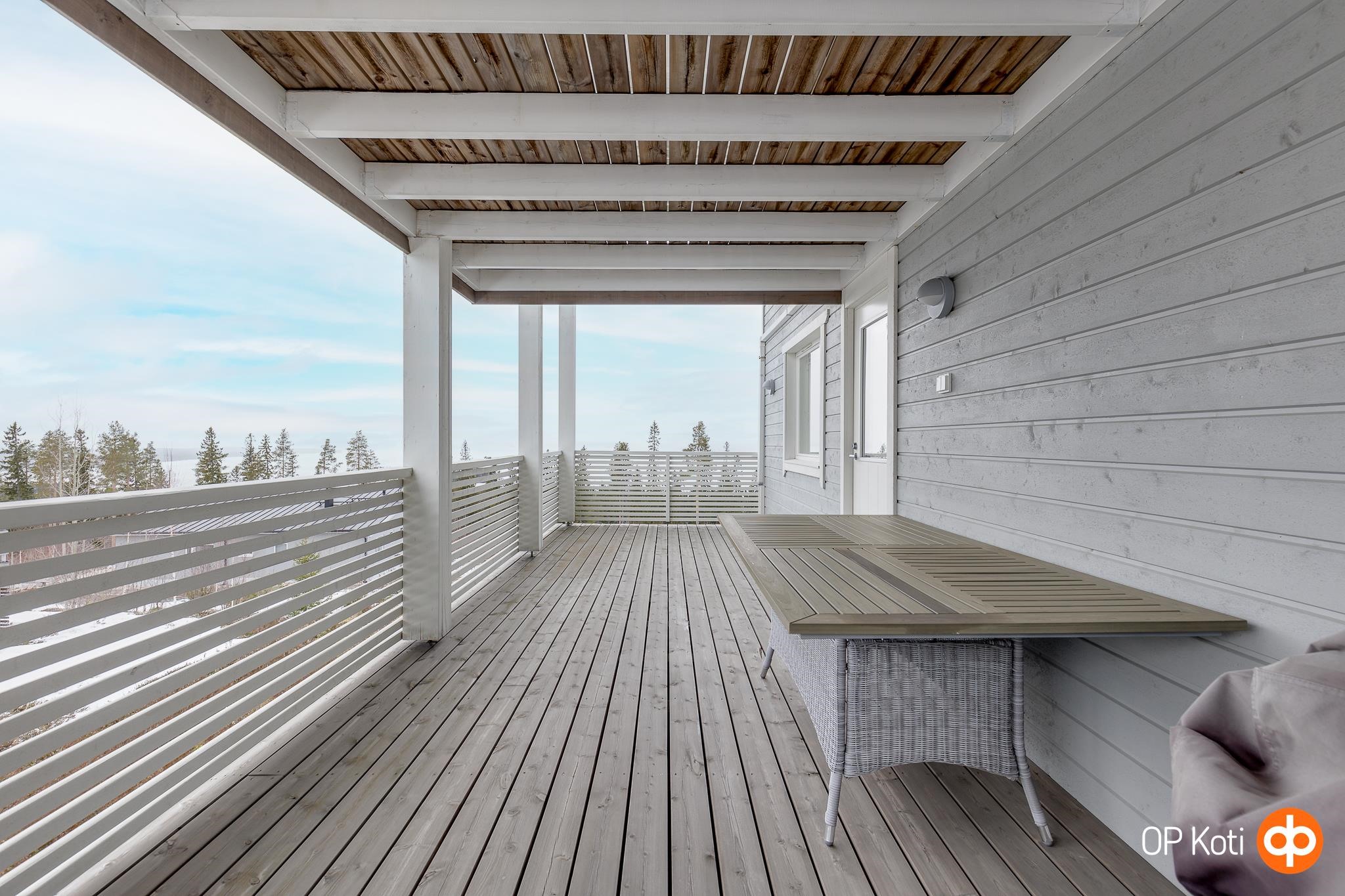 Autokatoksessa on suojaa kahdelle autolle ja tilavassa varastossa säilyvät niin sukset, pyörät kuin muutkin harrastusvälineet. Huvilassa on kaksi terassia, joista toinen on lasitettu ja katettu. Se on täydellinen paikka nauttia aamukahvi tai ilta-aurinko upealla järvinäköalalla.
