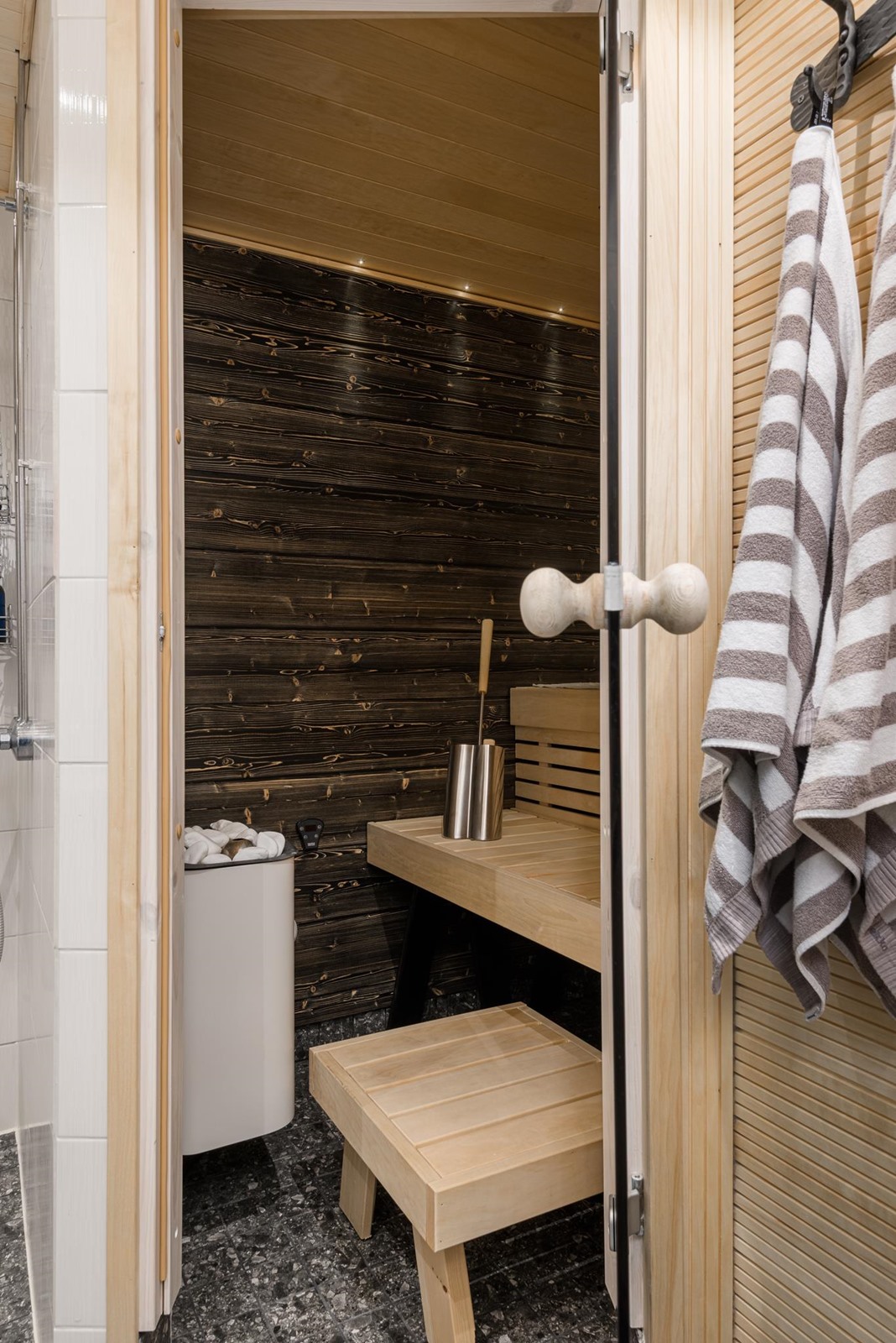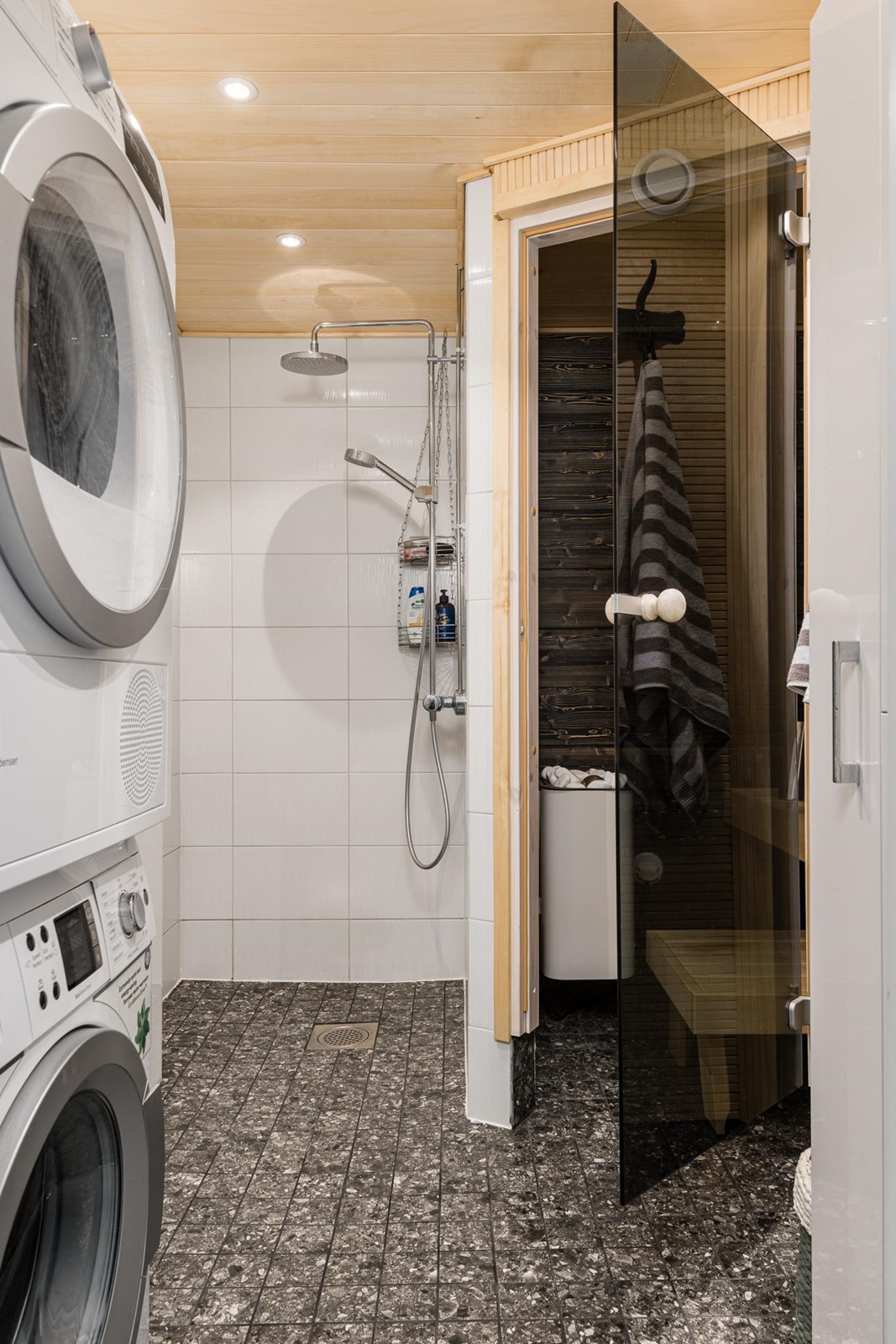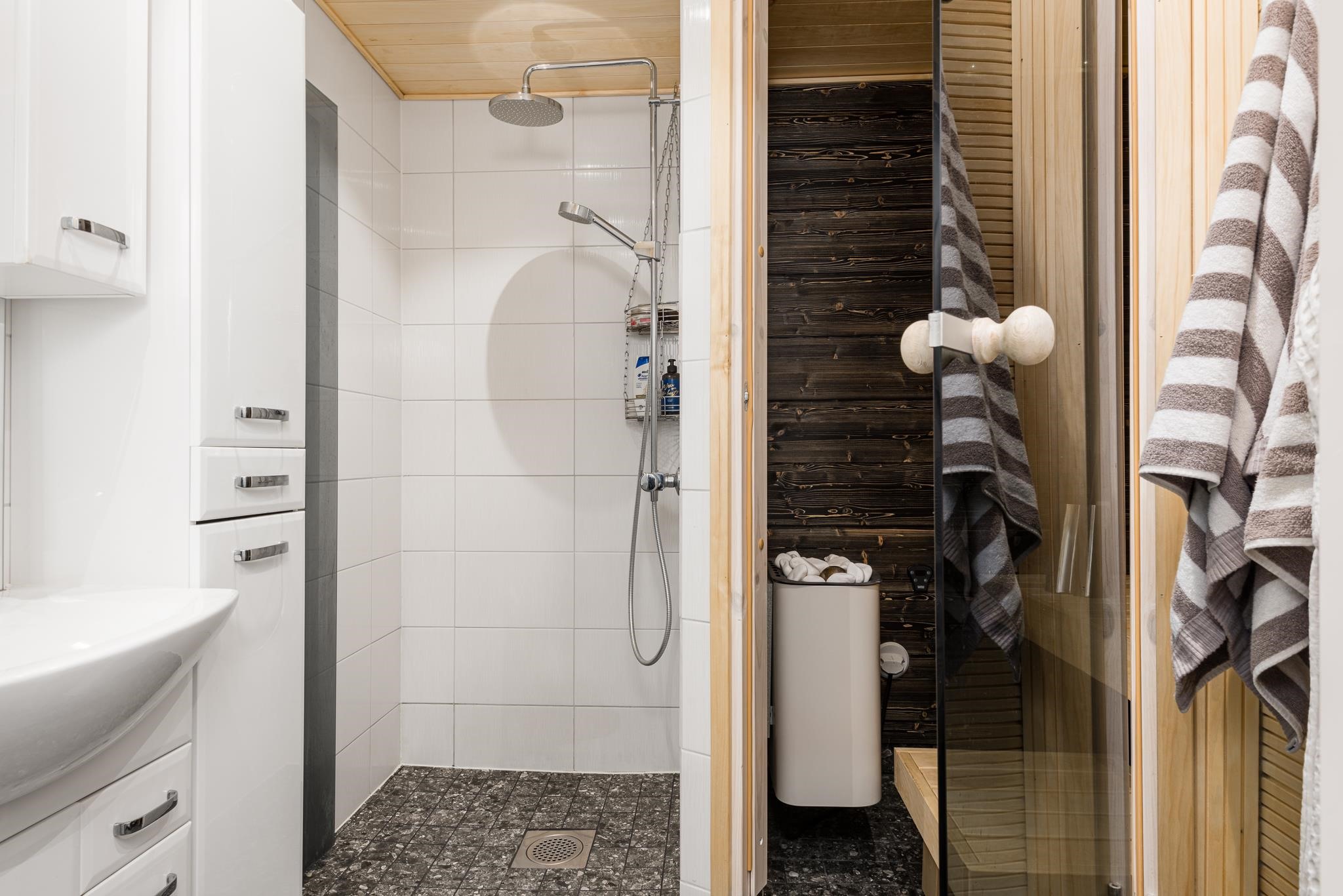 - Sauna, sähkökiuas, kylpyhuone, erillinen wc, suihku, peilit, allaskaappi, pesukoneliitäntä, lattialämmitys, kiinteät valaisimet. Uusittu kokonaisuudessaan 2020